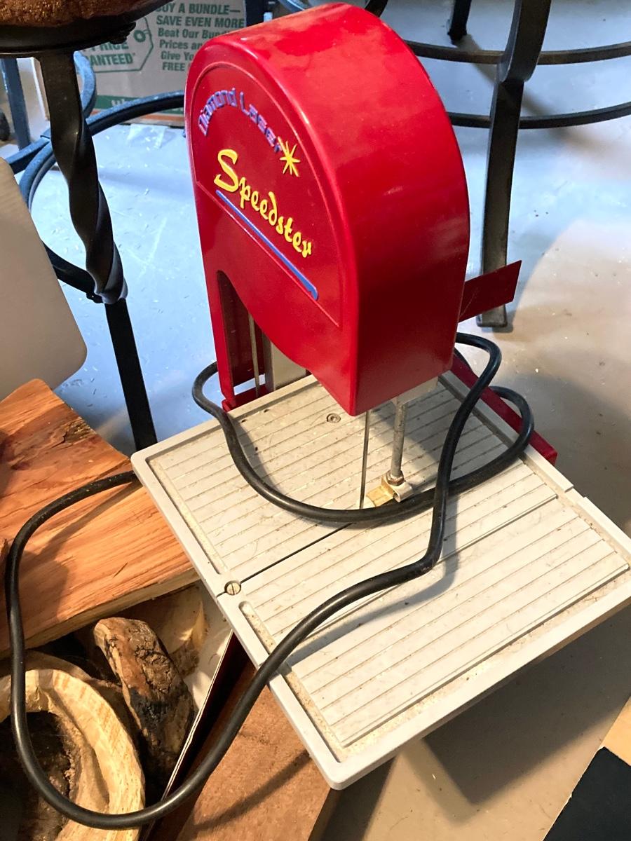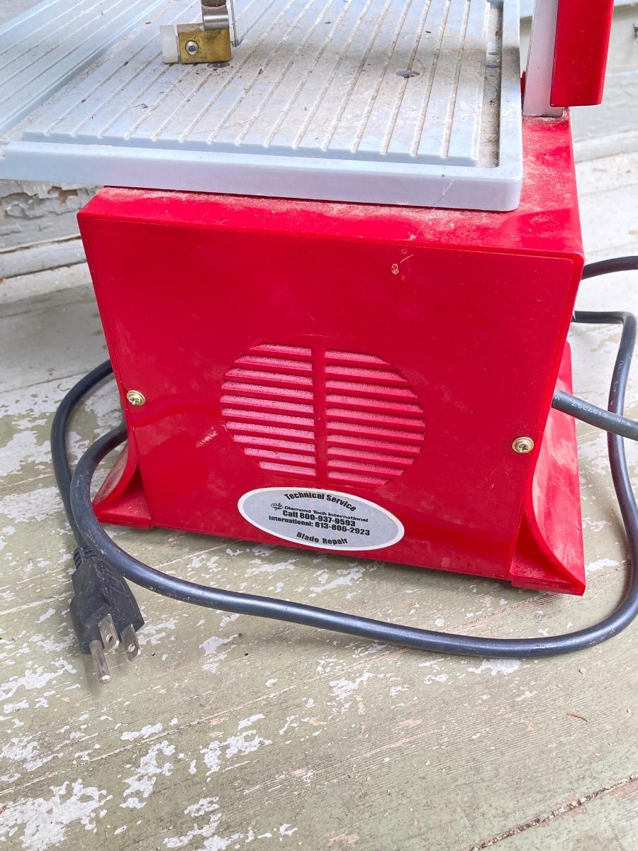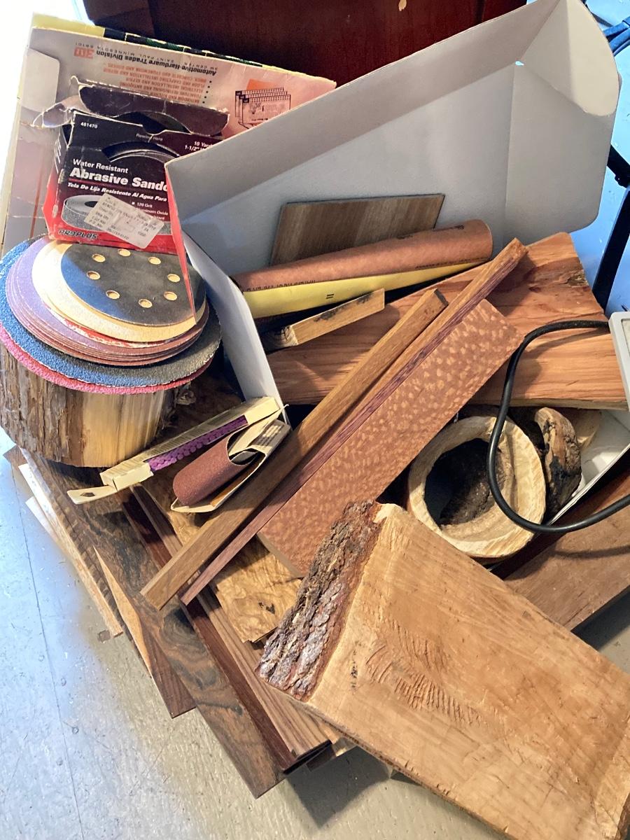 LOT 72: Speedster Diamond Glass Table Saw with Assorted Crafting / Decorative Wood Pieces