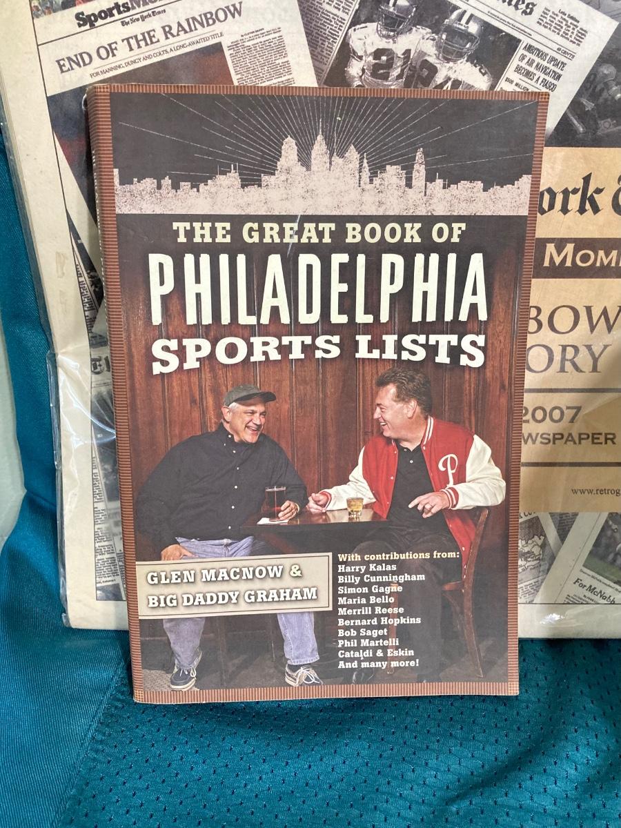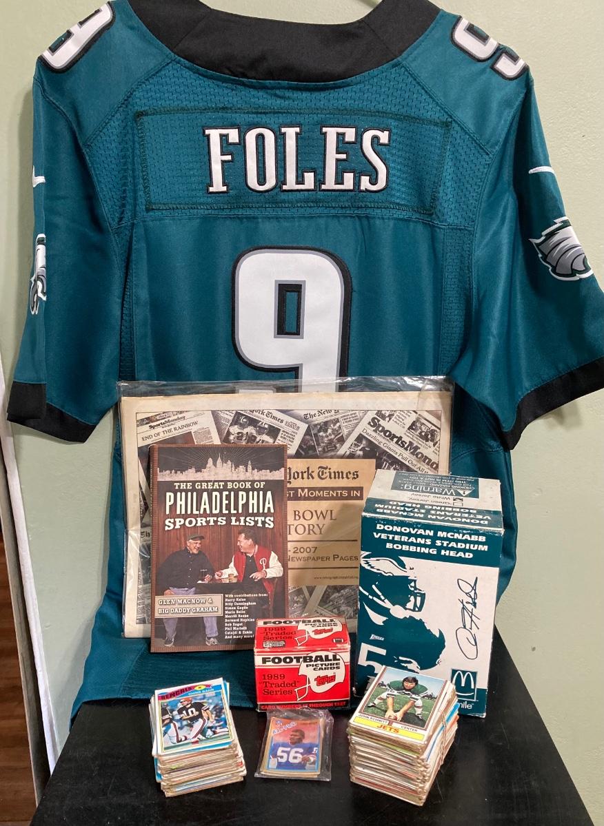 LOT 77: Nick Foles Eagles NFL Super Bowl Jersey Size 44, Football Cards, The Great Book of Philadelphia Sports Lists, Donovan McNabb Bobblehead and More