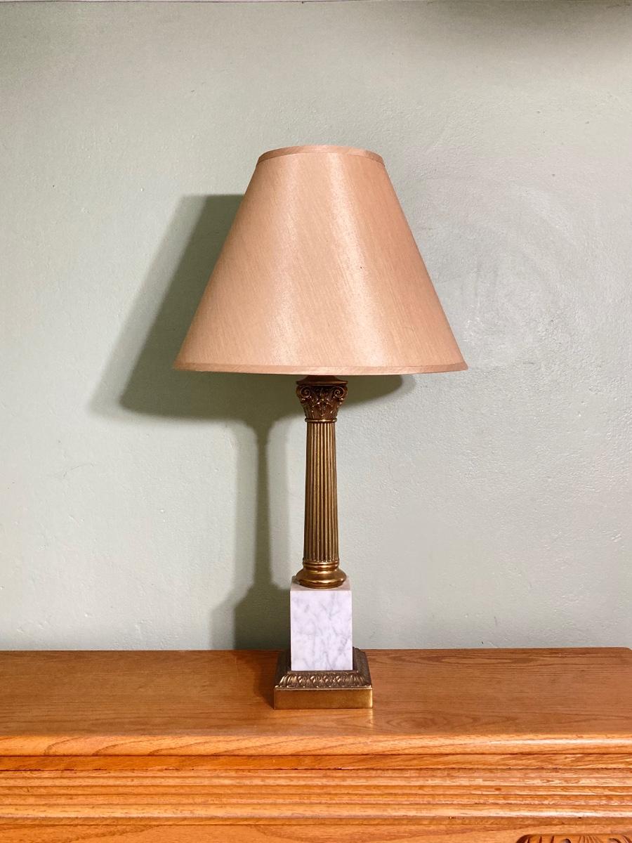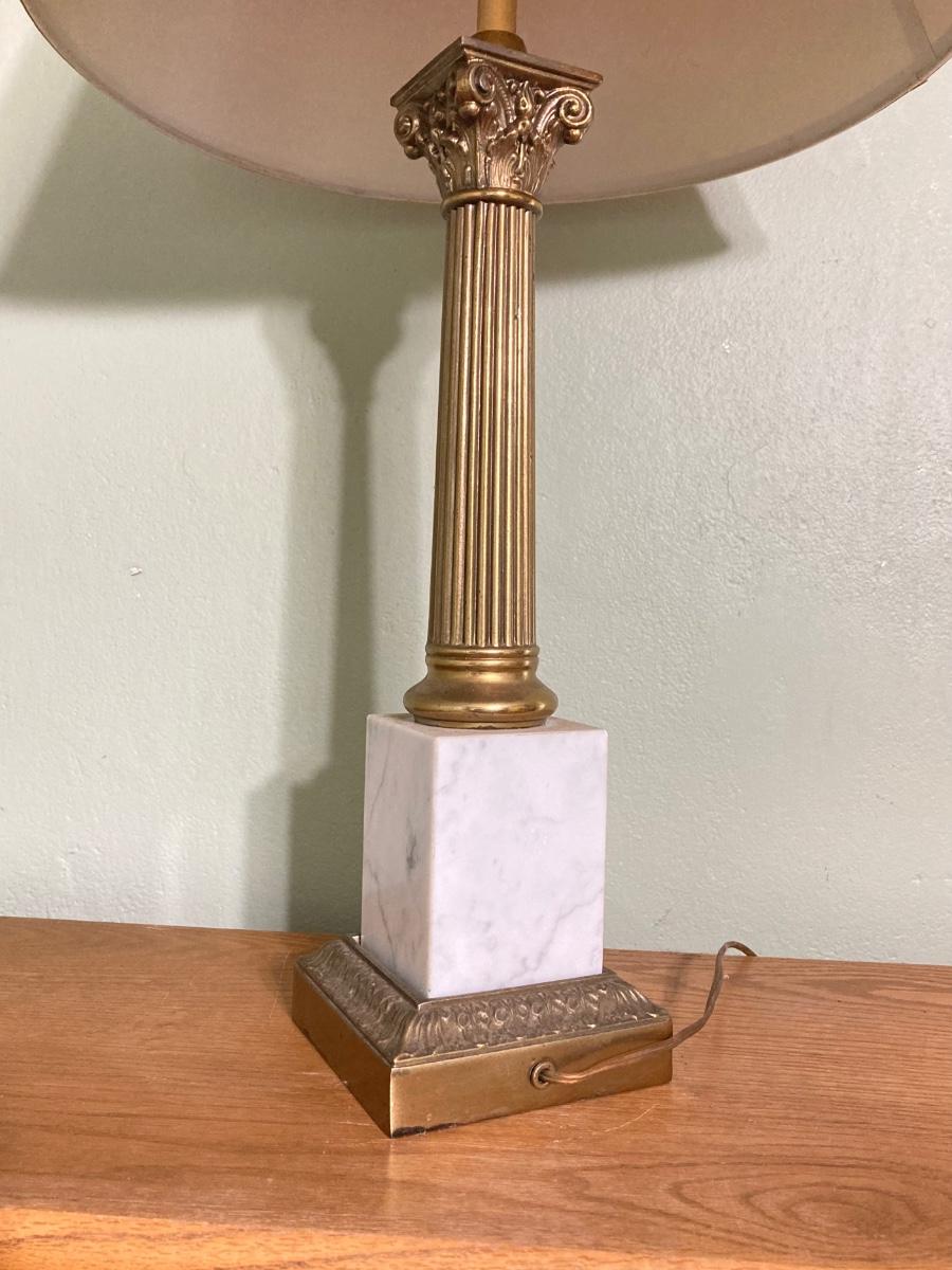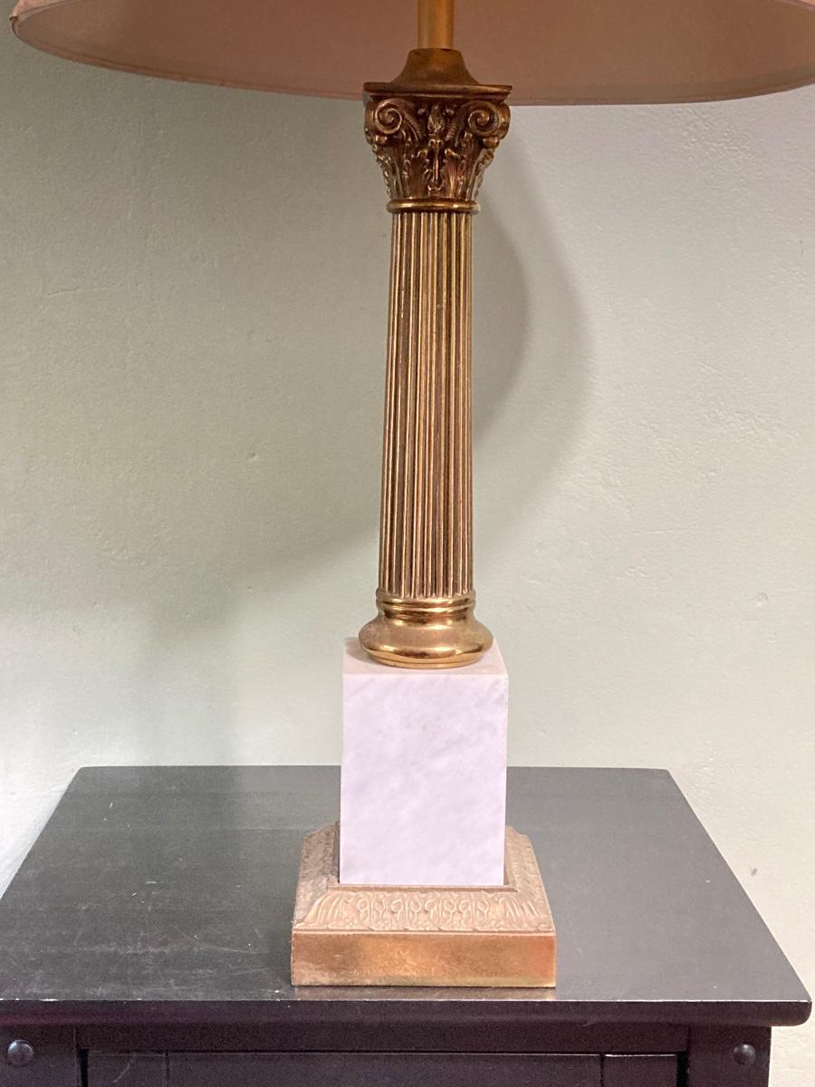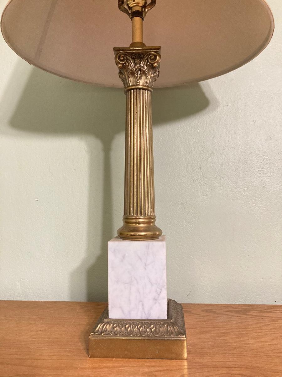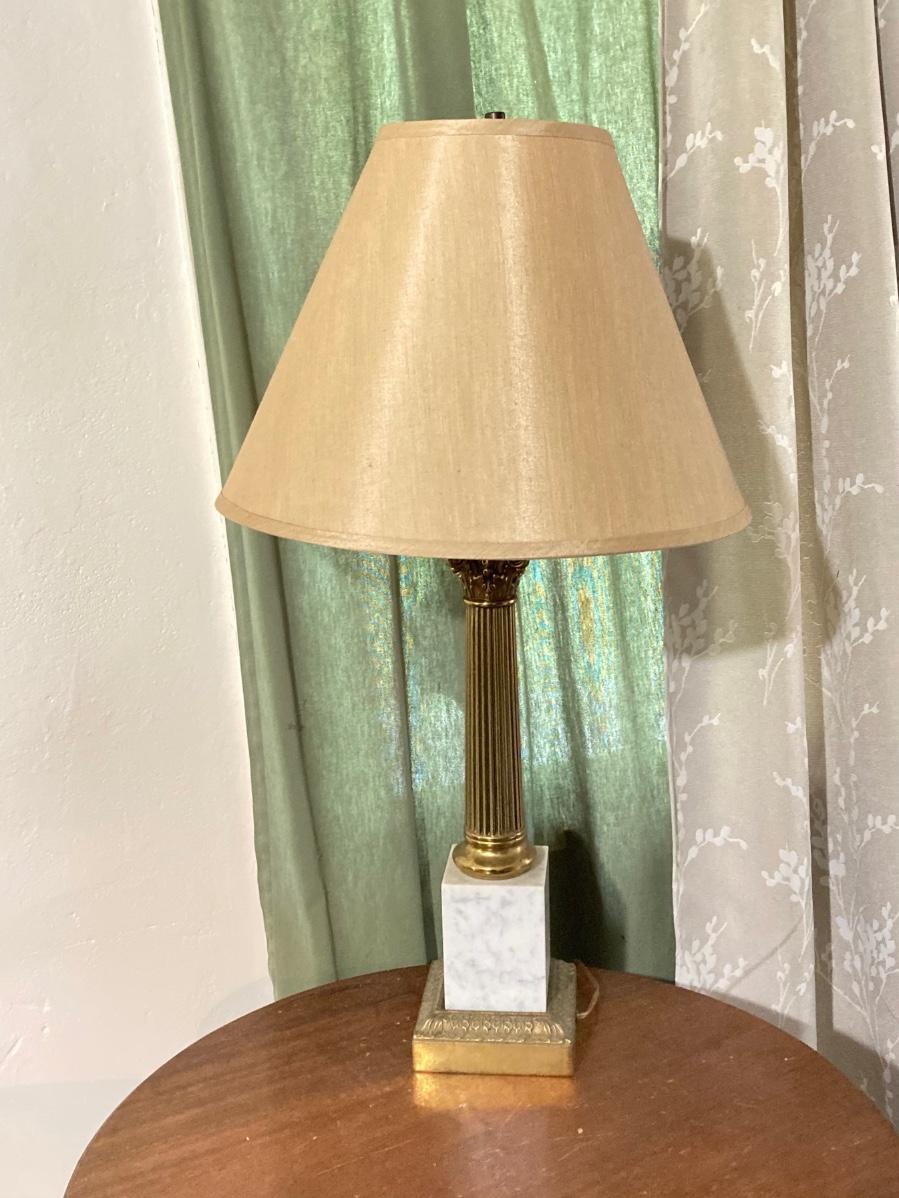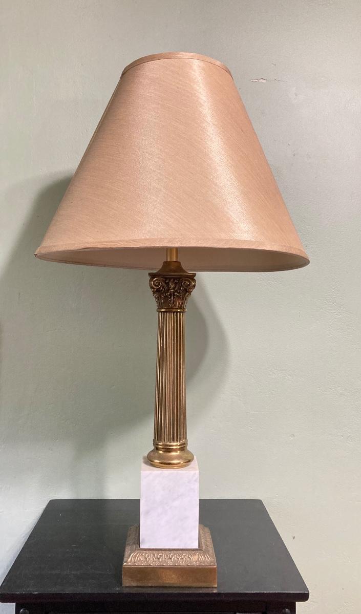 LOT 80: Pair of Brass and Marble / Onyx Table Lamps