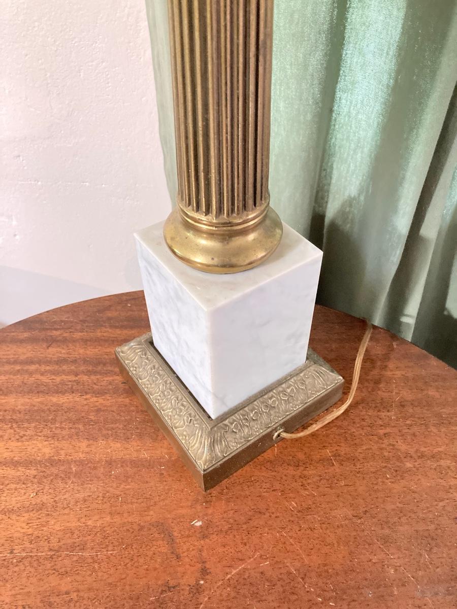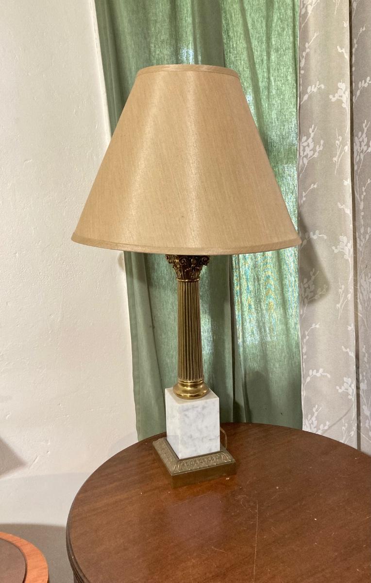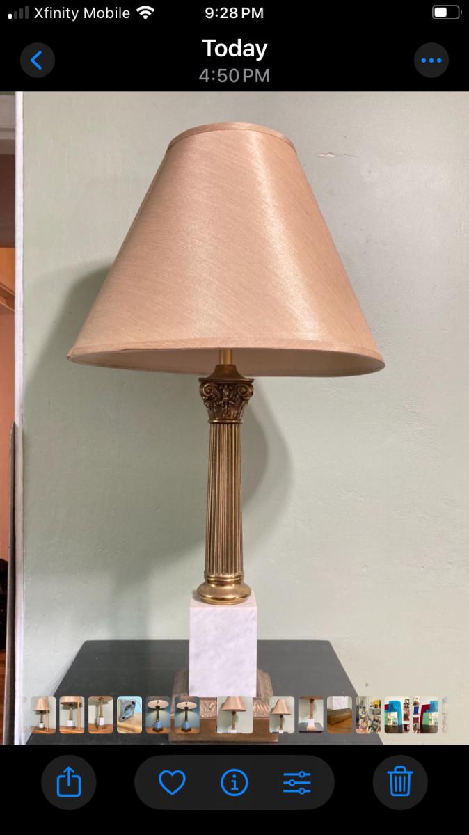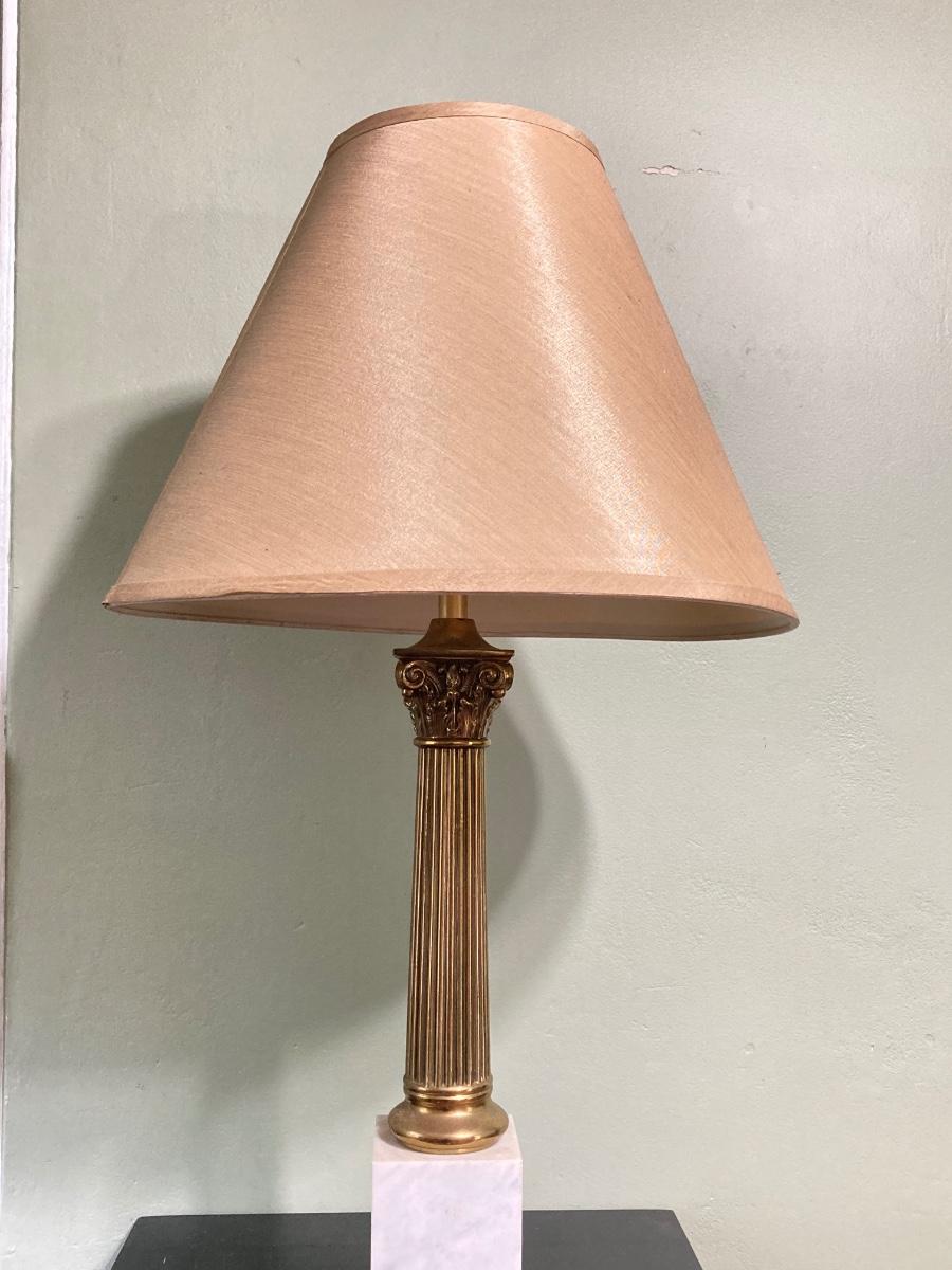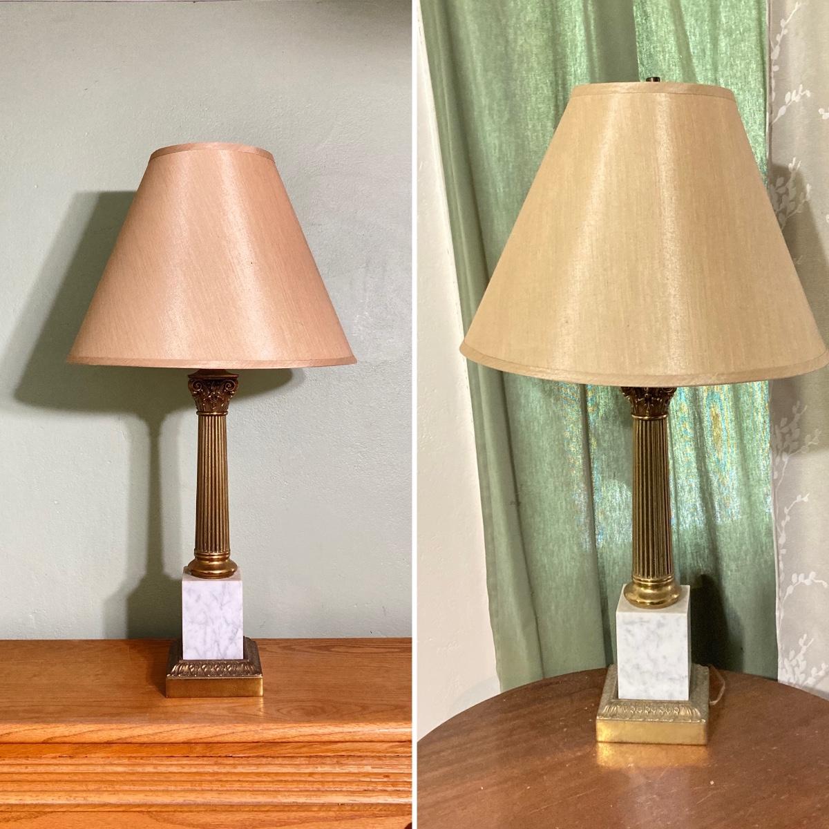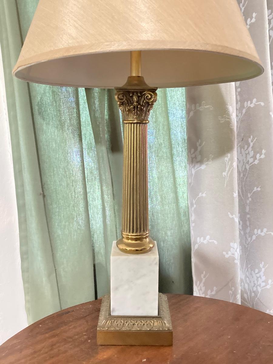 LOT 80: Pair of Brass and Marble / Onyx Table Lamps