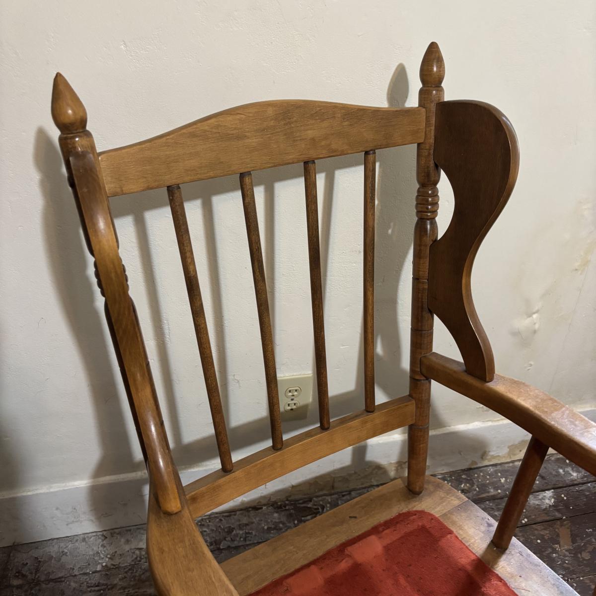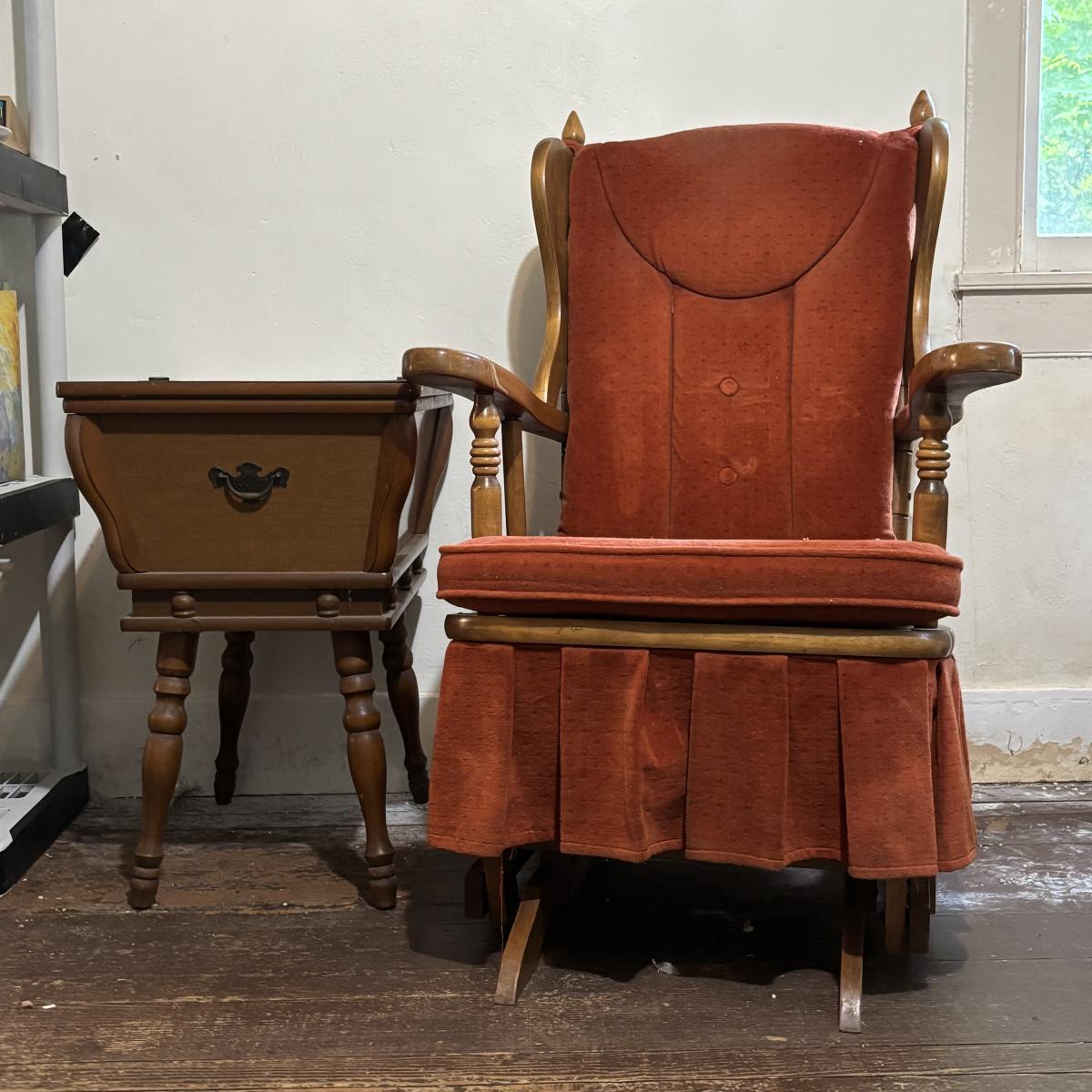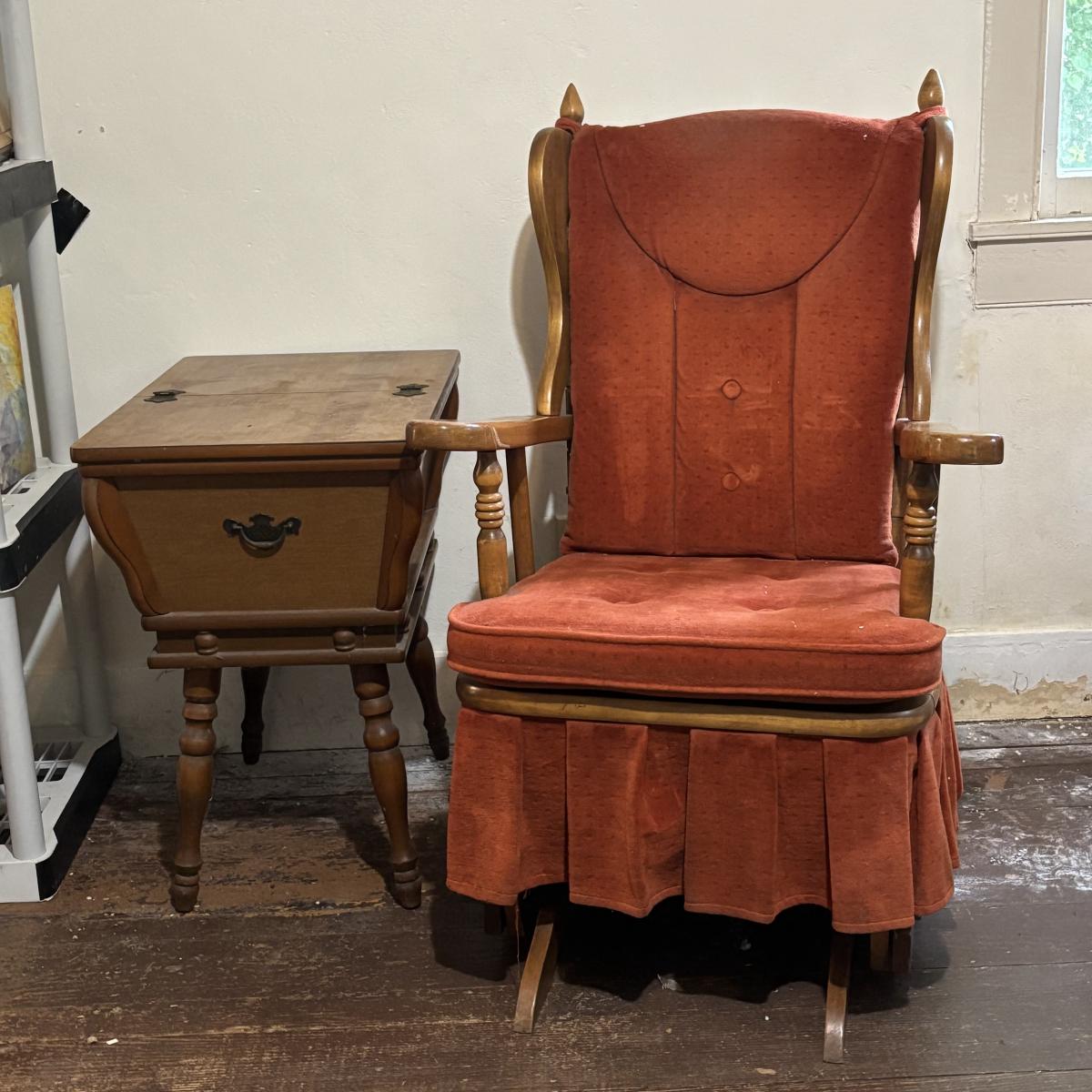 LOT 83: Vintage Wooden Vermont Made Miracle Rocker & Colonial Dough Box Style End Table