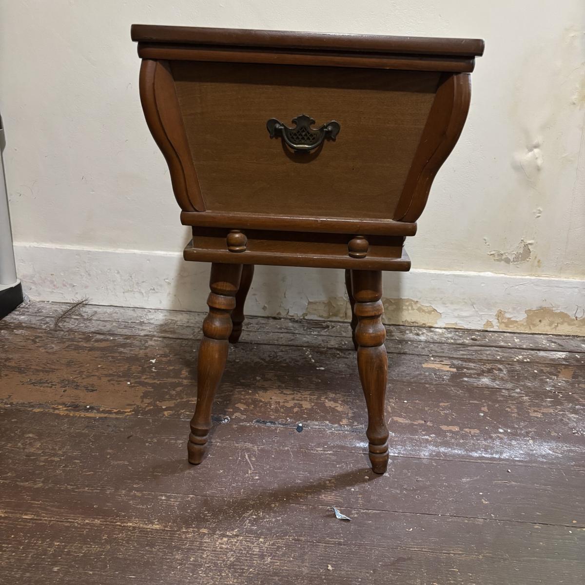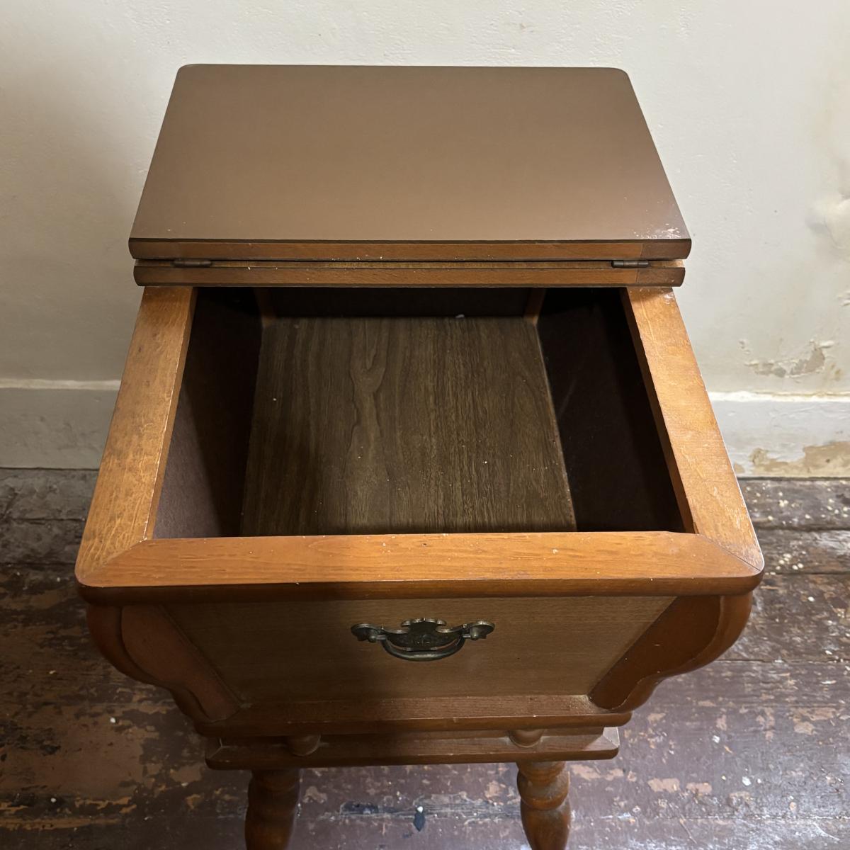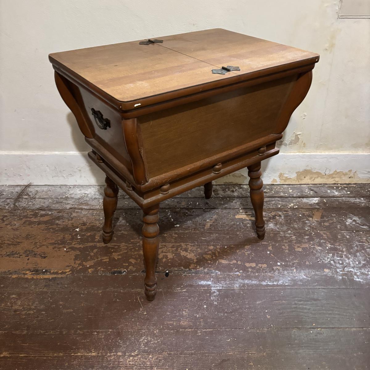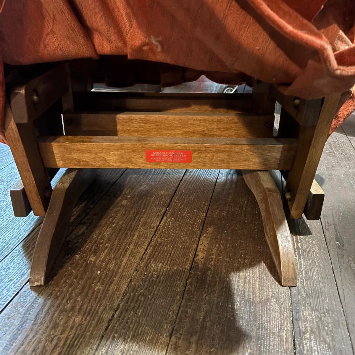 LOT 83: Vintage Wooden Vermont Made Miracle Rocker & Colonial Dough Box Style End Table