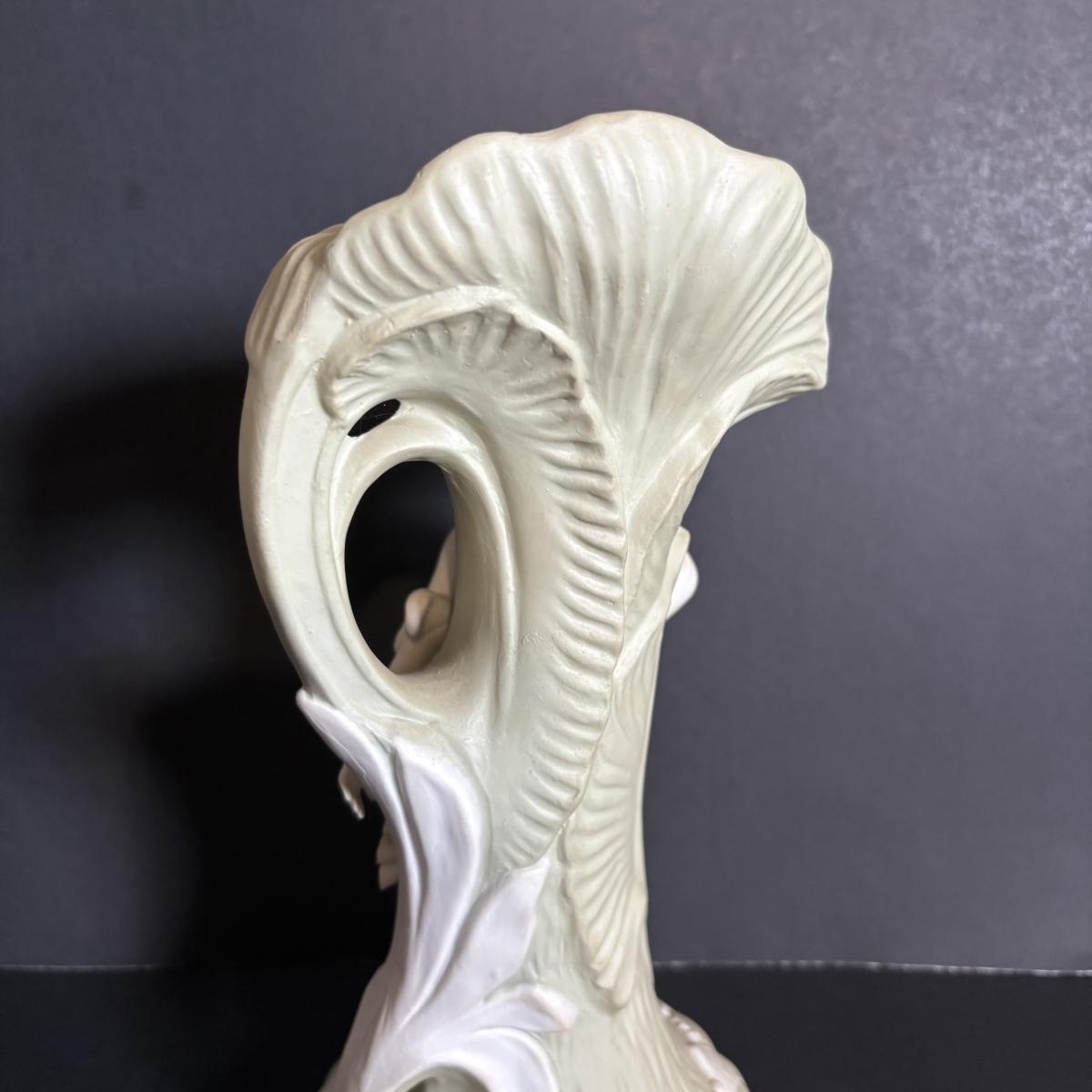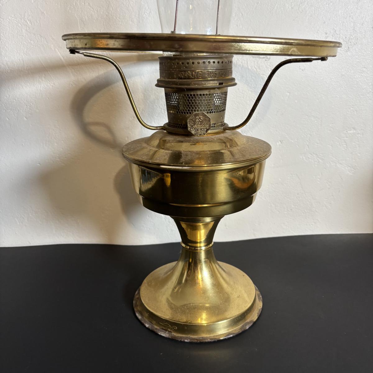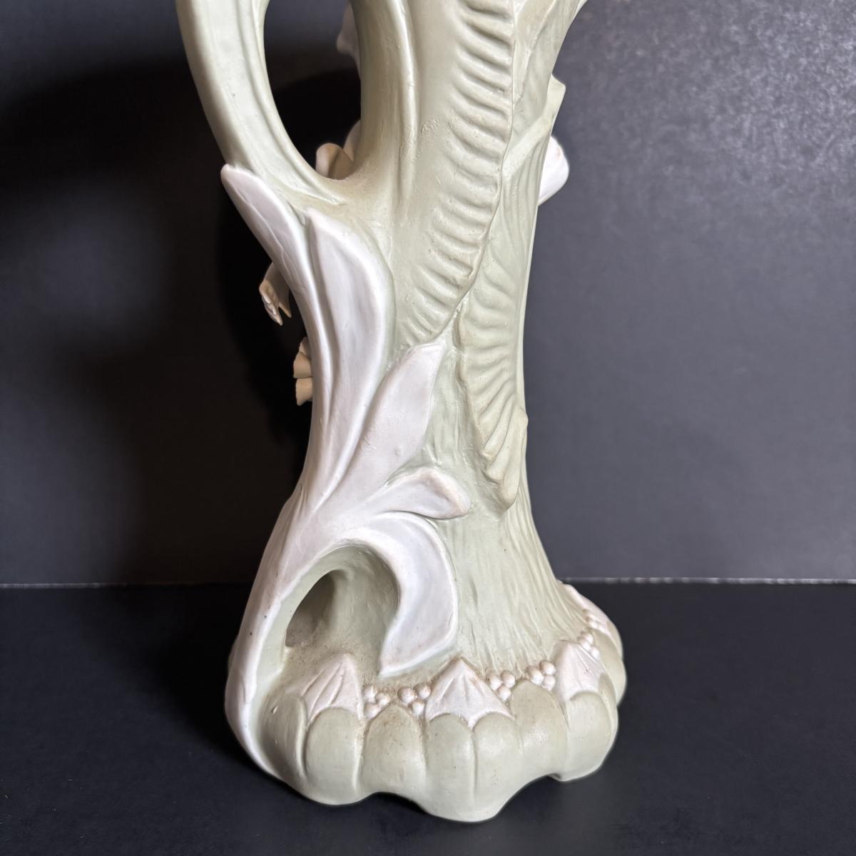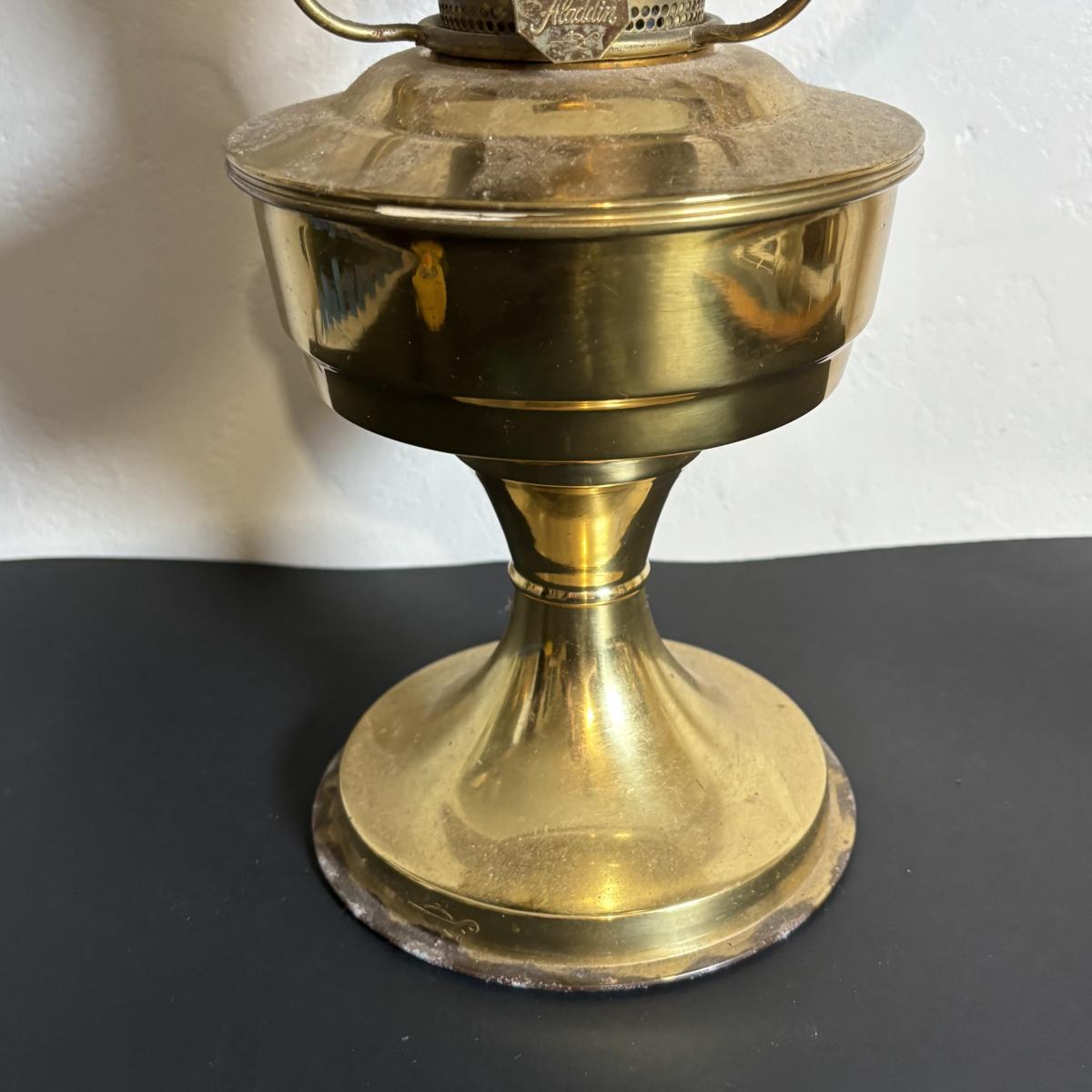 LOT 84: Porcelain Art Nouveau Style Figural Vase, Brass Candle Sticks & Aladdin Oil Brass Oil Lamp (missing shade)