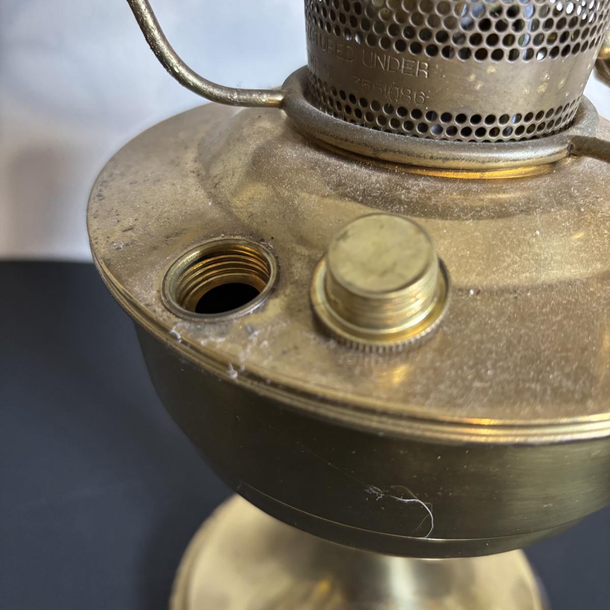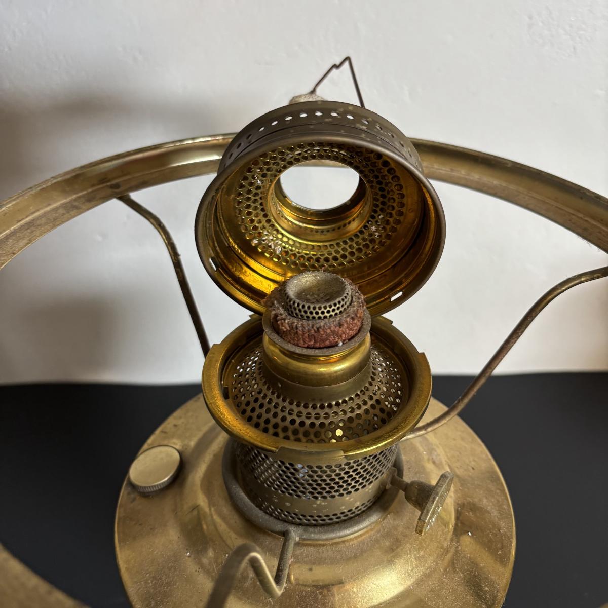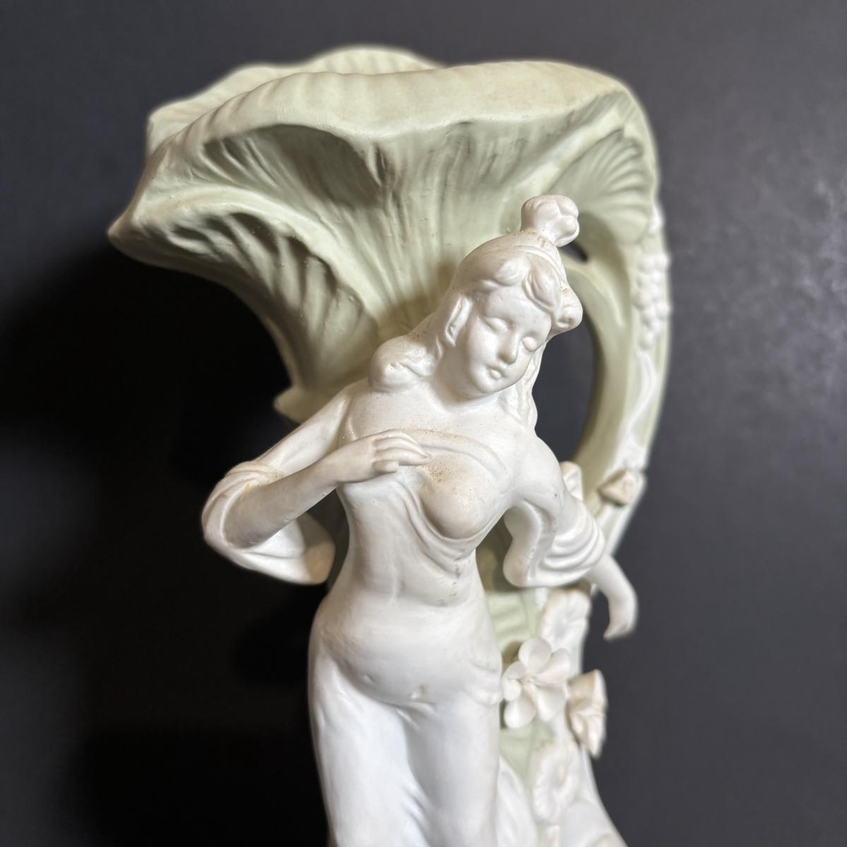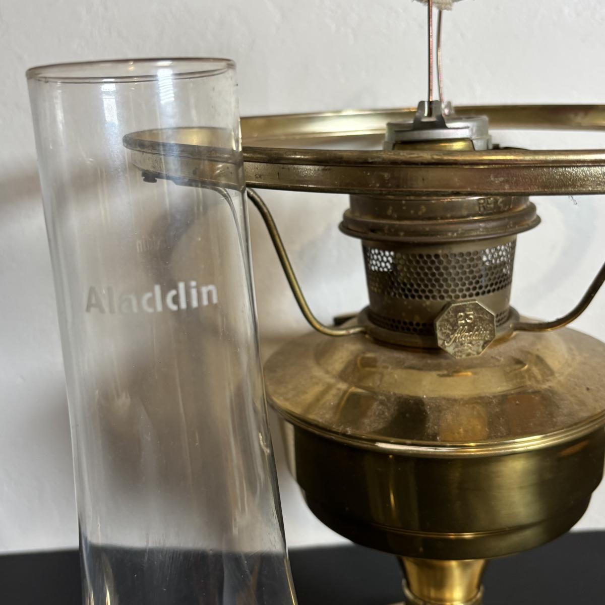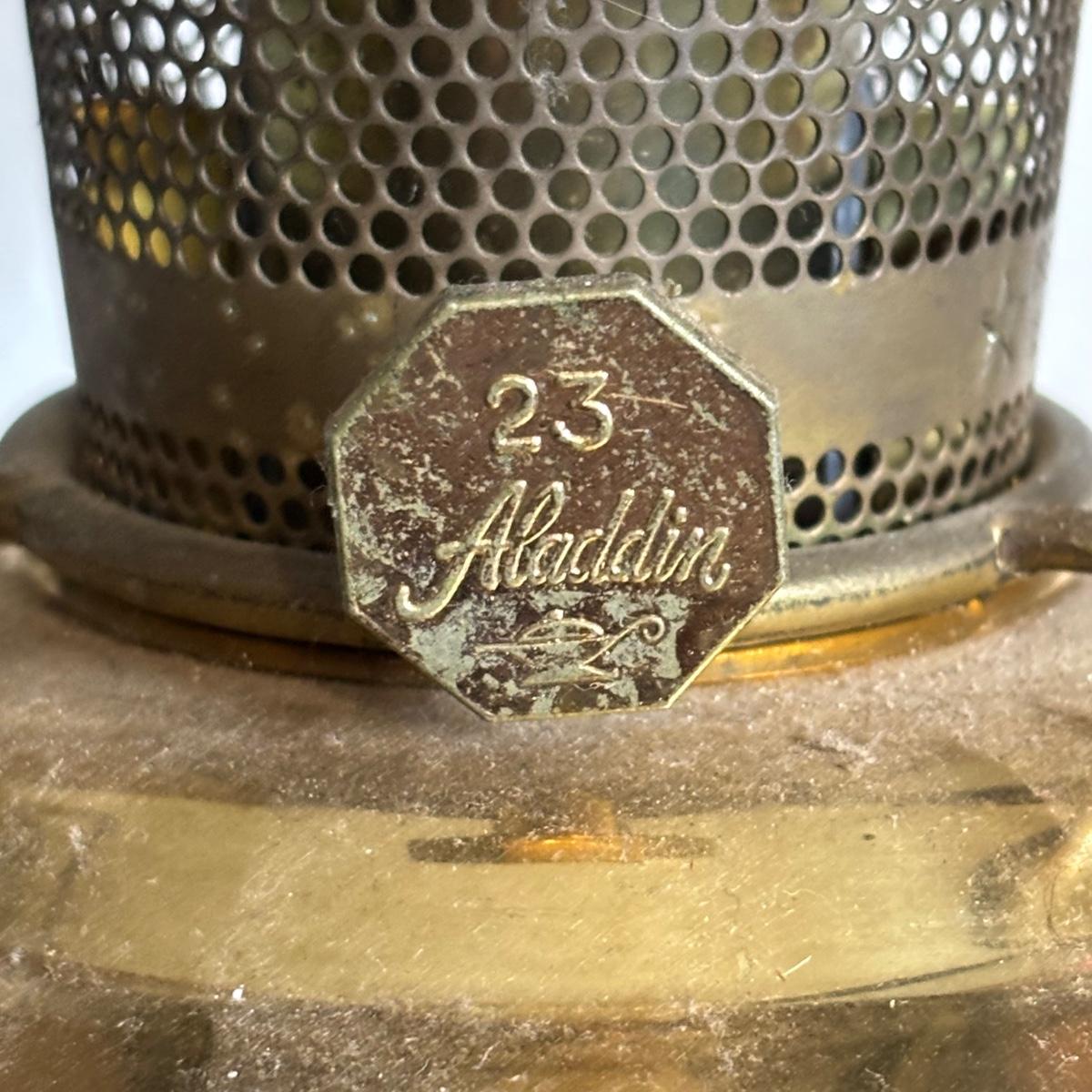 LOT 84: Porcelain Art Nouveau Style Figural Vase, Brass Candle Sticks & Aladdin Oil Brass Oil Lamp (missing shade)