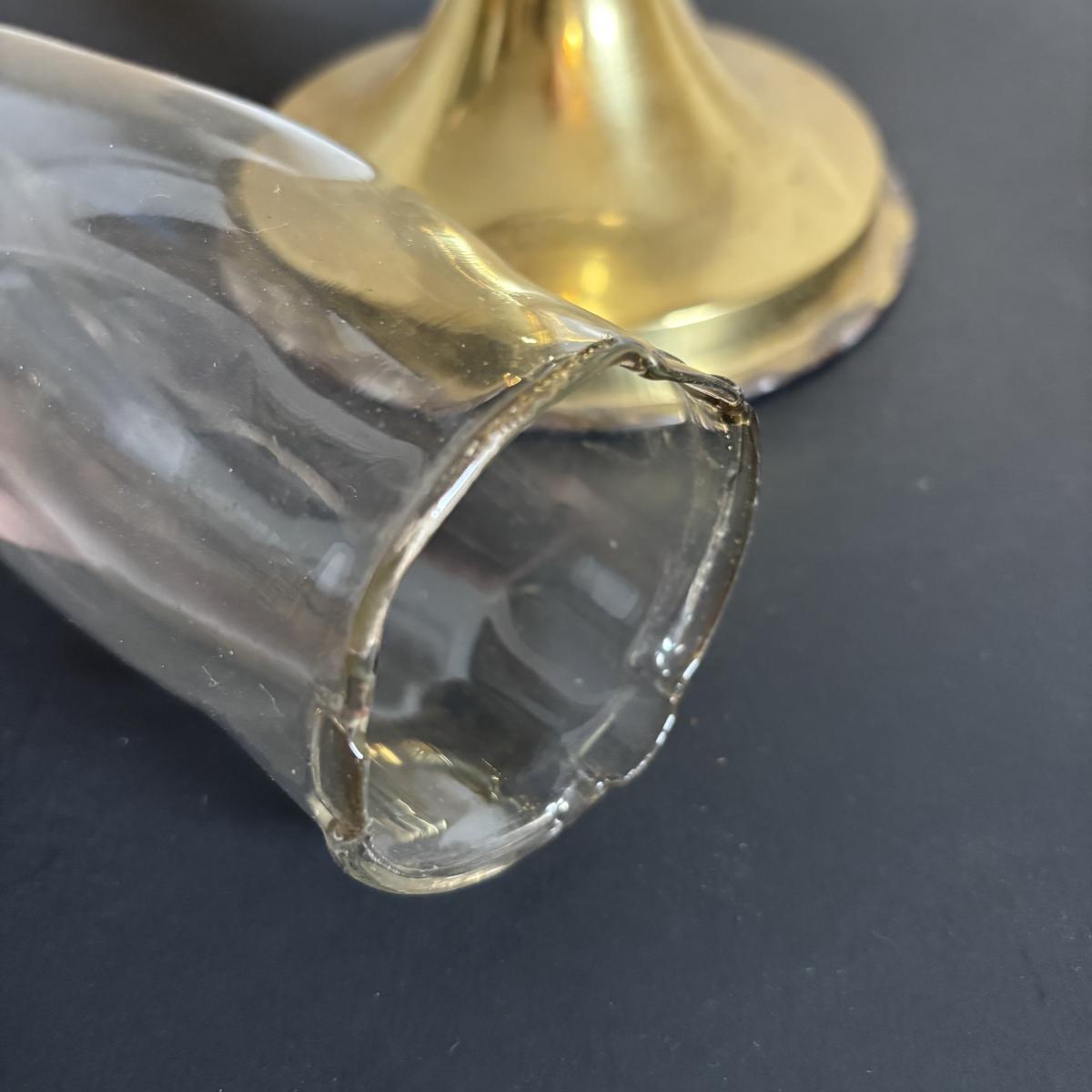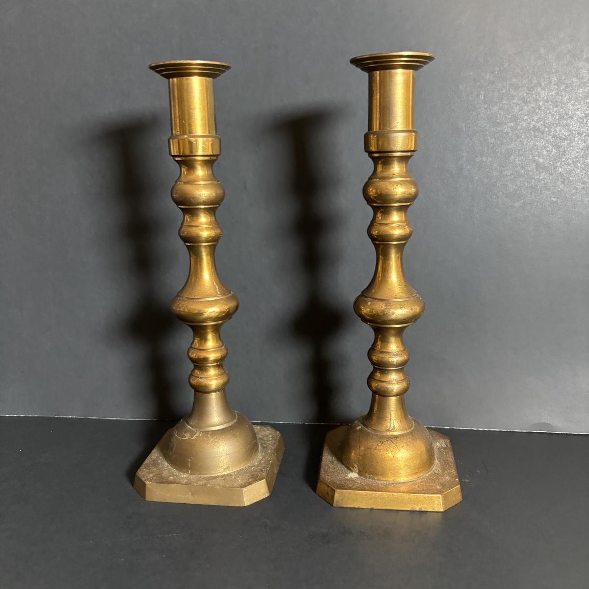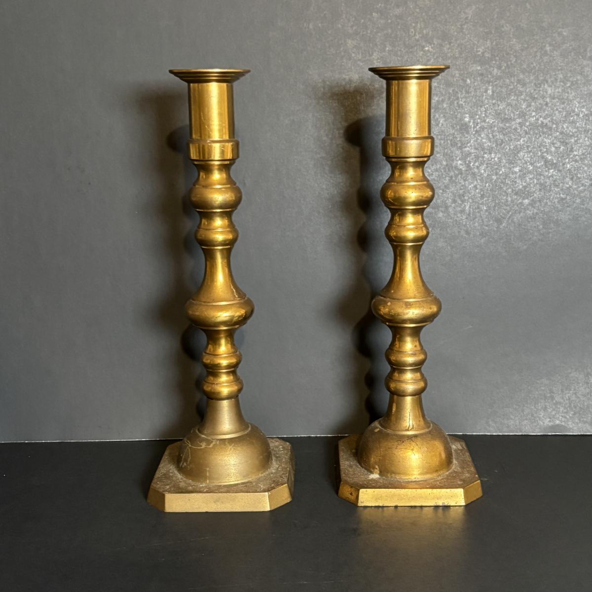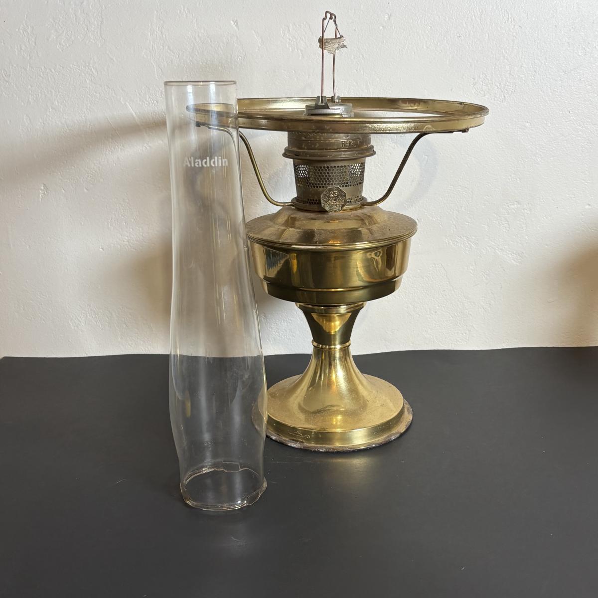 LOT 84: Porcelain Art Nouveau Style Figural Vase, Brass Candle Sticks & Aladdin Oil Brass Oil Lamp (missing shade)