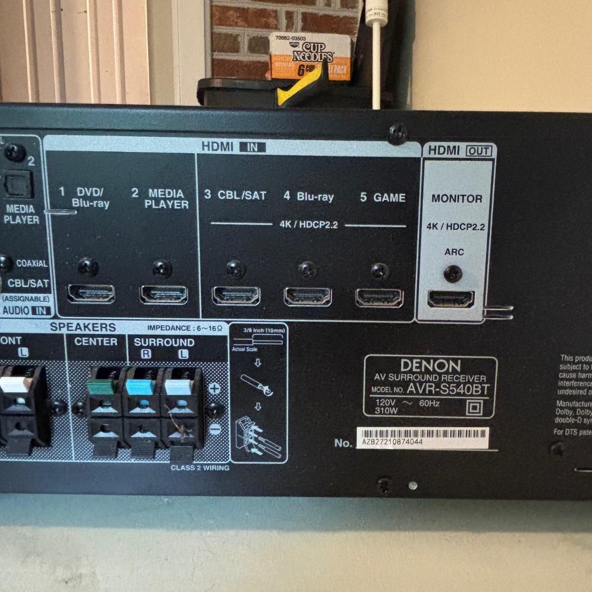 LOT 92: Denon AV Surround Sound Receiver Model AVR-S540BT