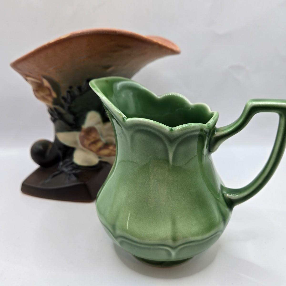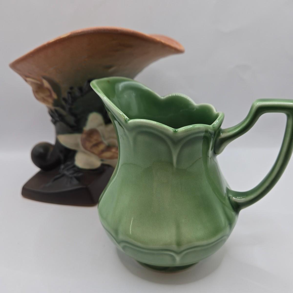LOT 109: Vintage Royal Staffordshire Creamer and Roseville Pottery Magnolia Cornucopia