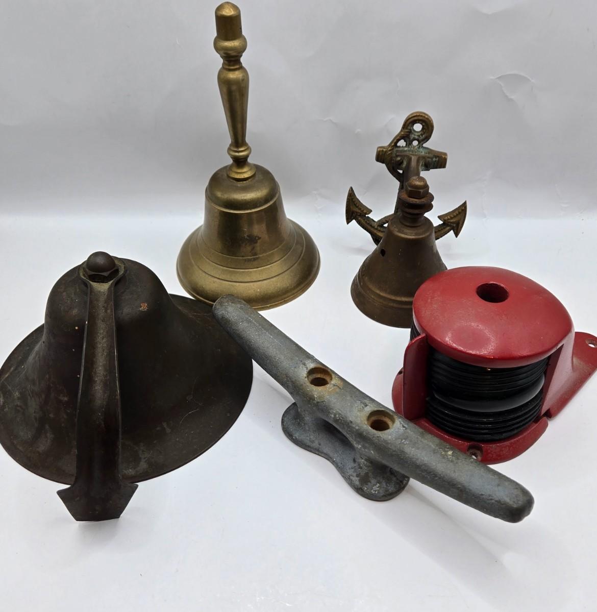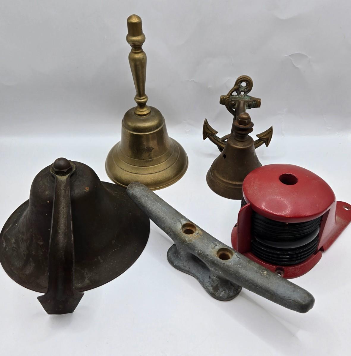LOT 118: Vintage Boat Light, Ships Bell, Dock Cleat, and More