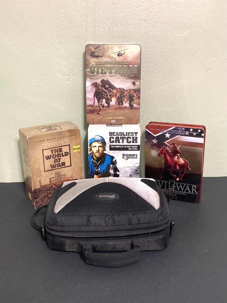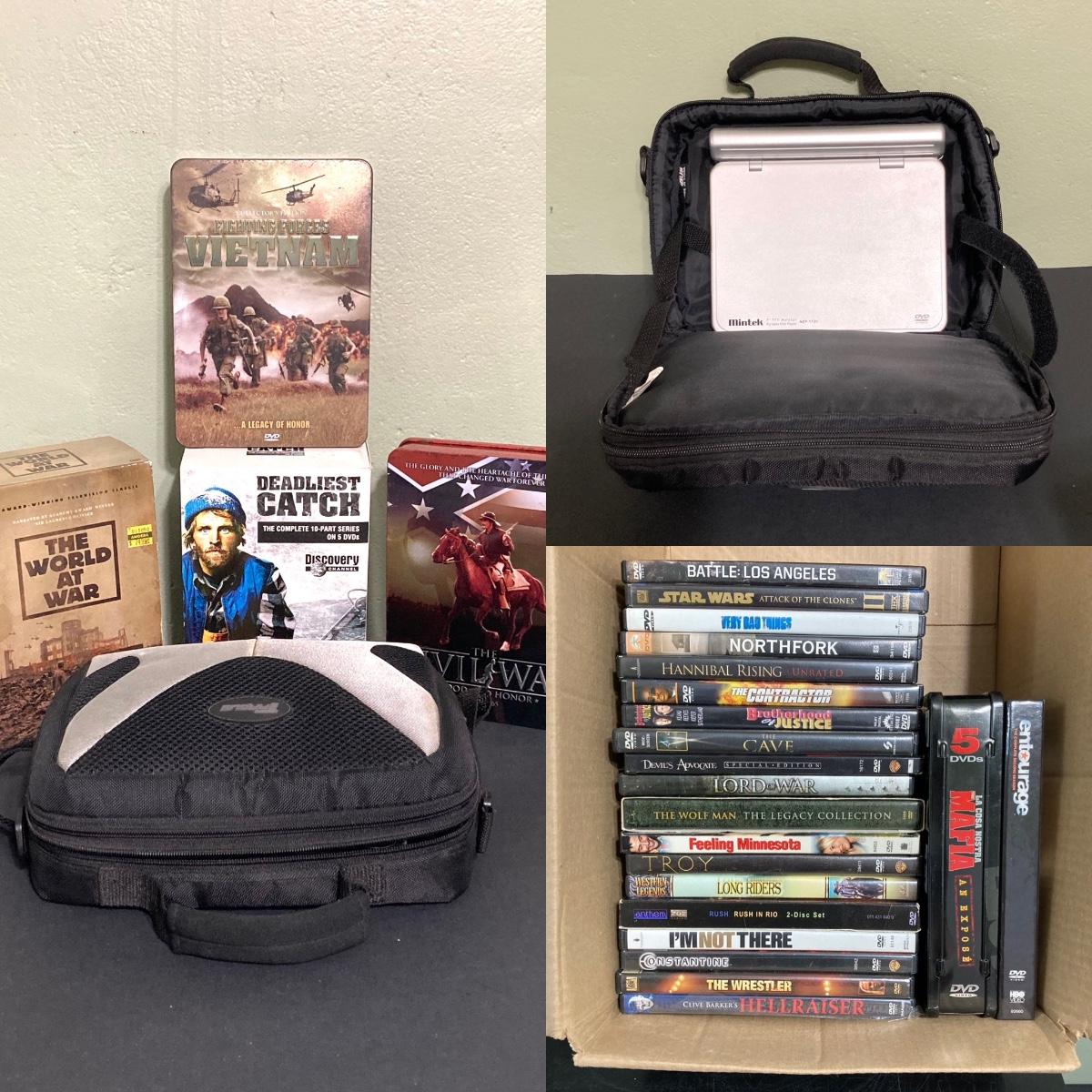 LOT 128: Mintek Portable DVD Player with Collection of DVDs