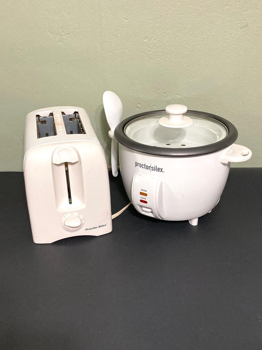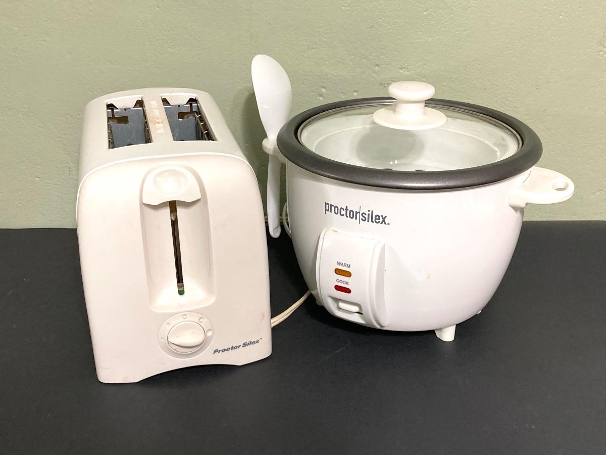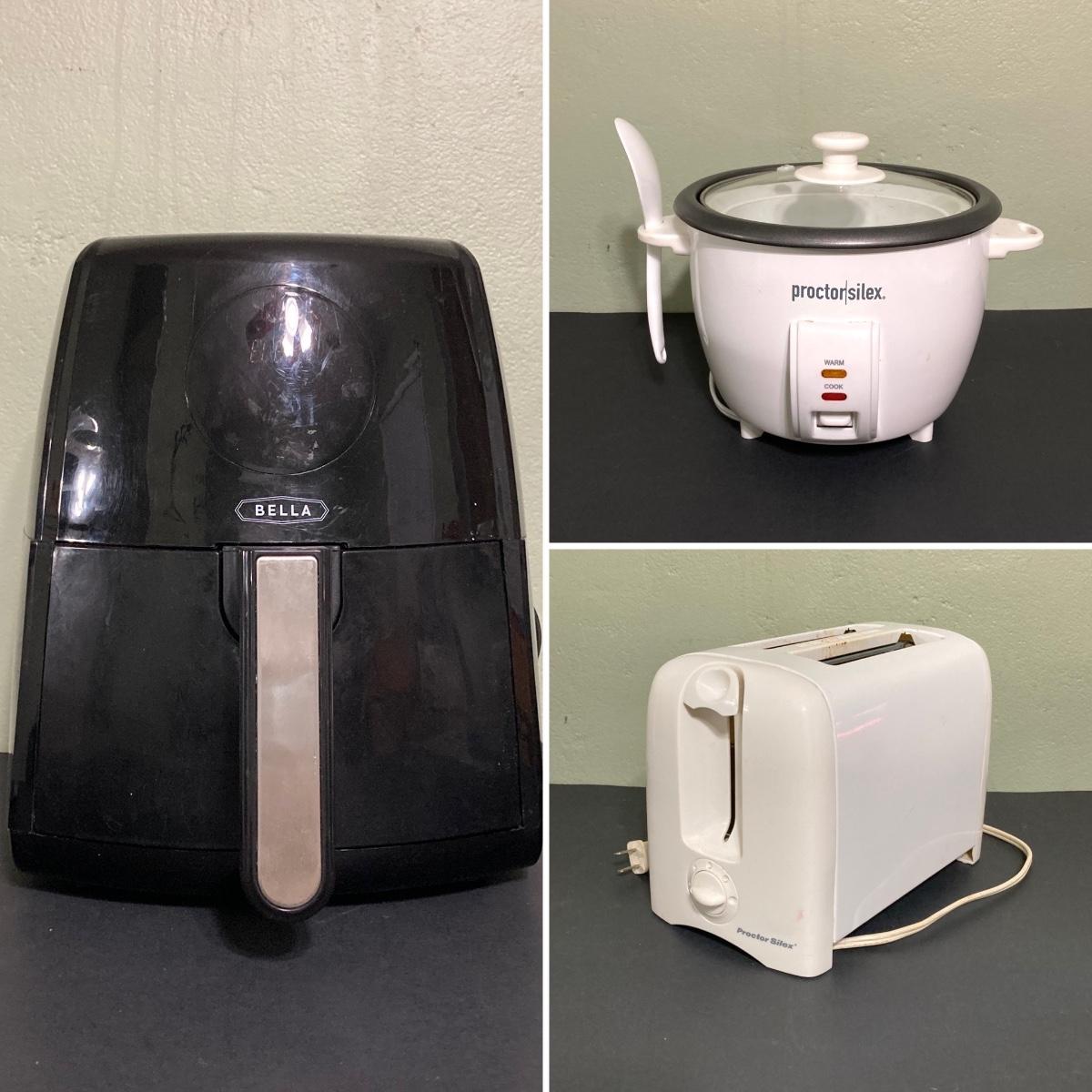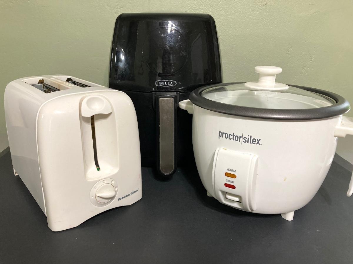 LOT 129: Bella Air Fryer, Proctor / Silex Rice Cooker and Proctor Silex Toaster