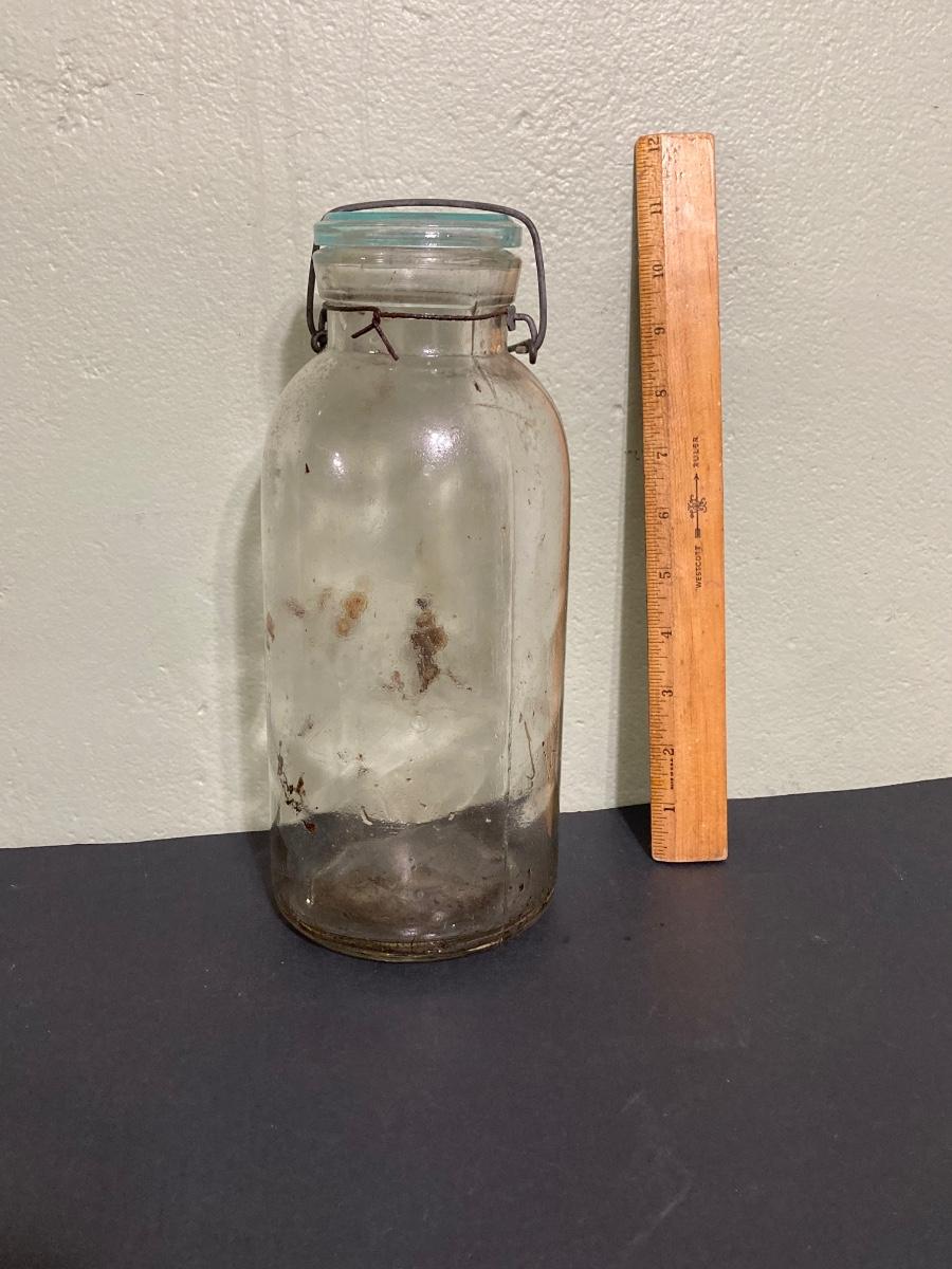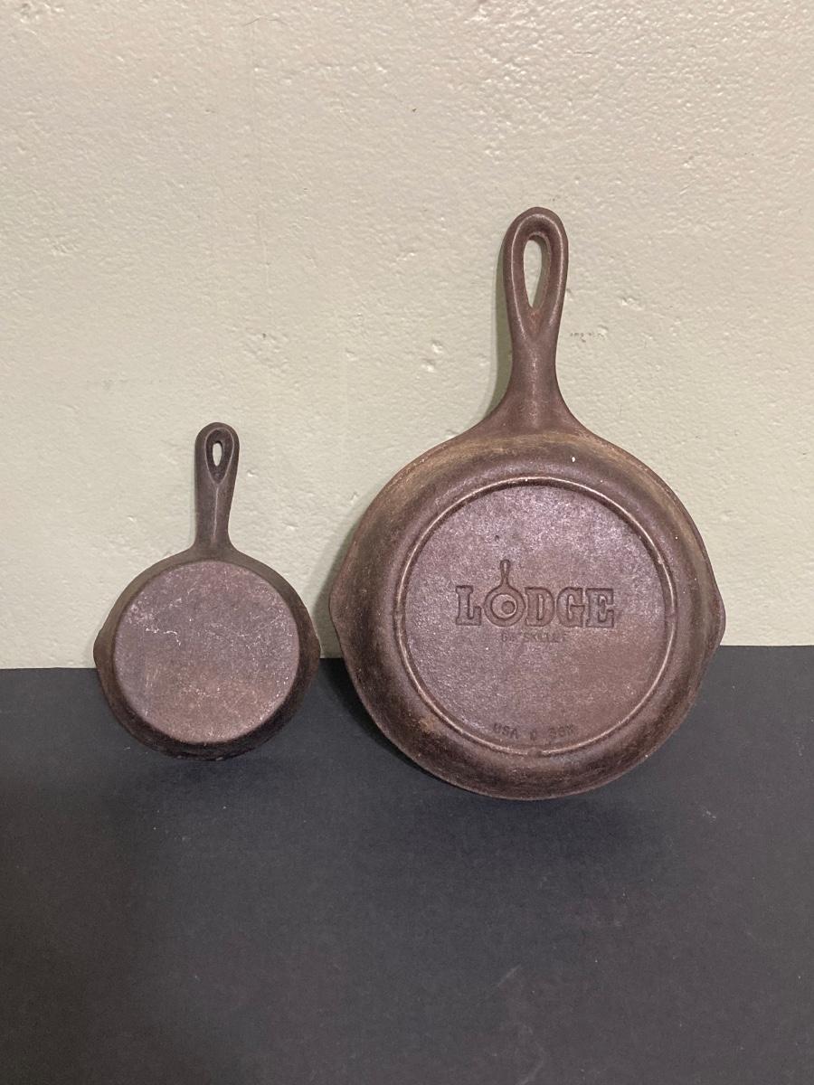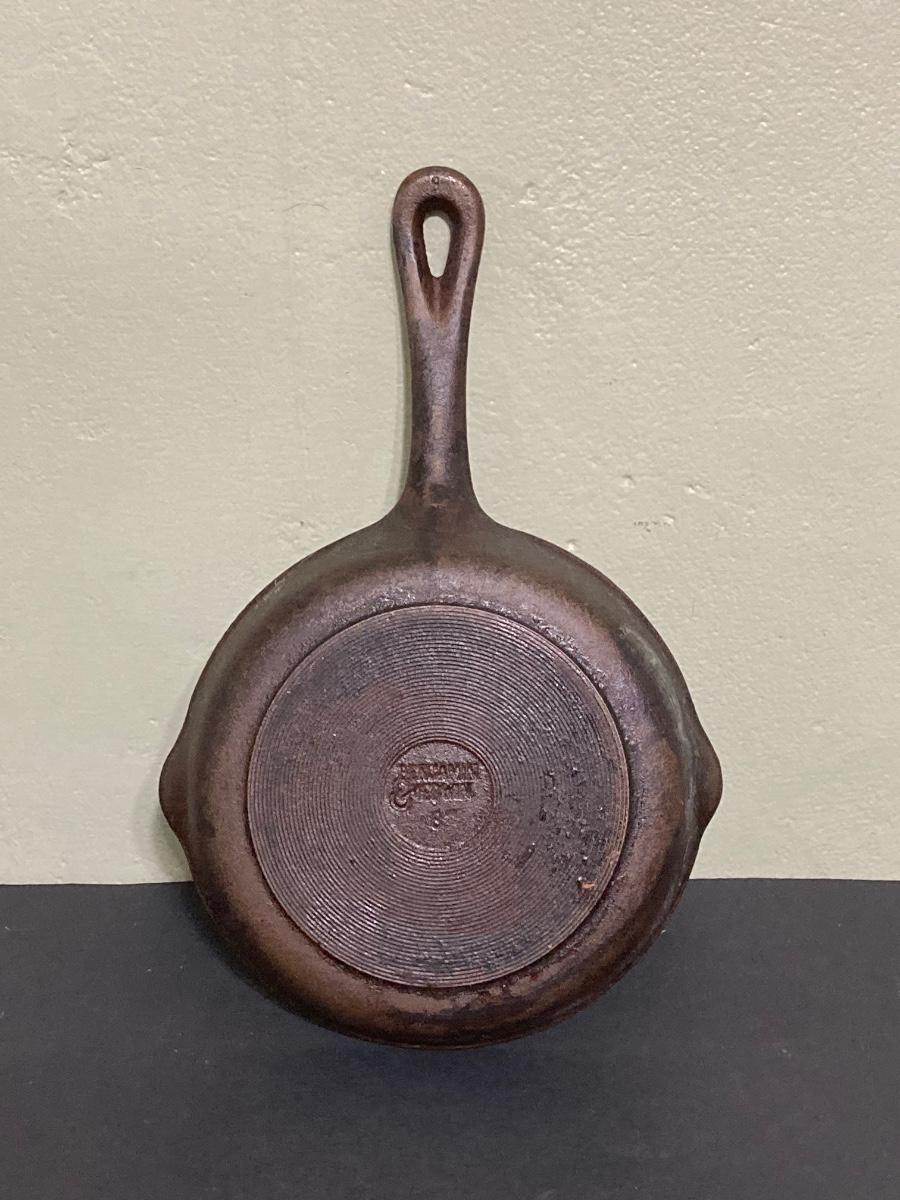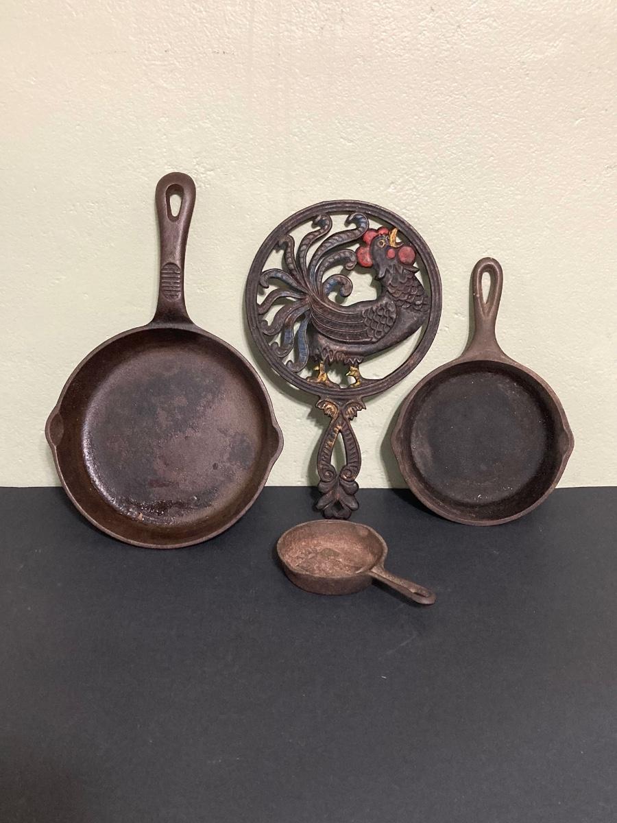 LOT 130: Vintage Cast Iron Cookware (Lodge, Benjamin Medwin and More) / Trivet and Tall Glass Mason Jar