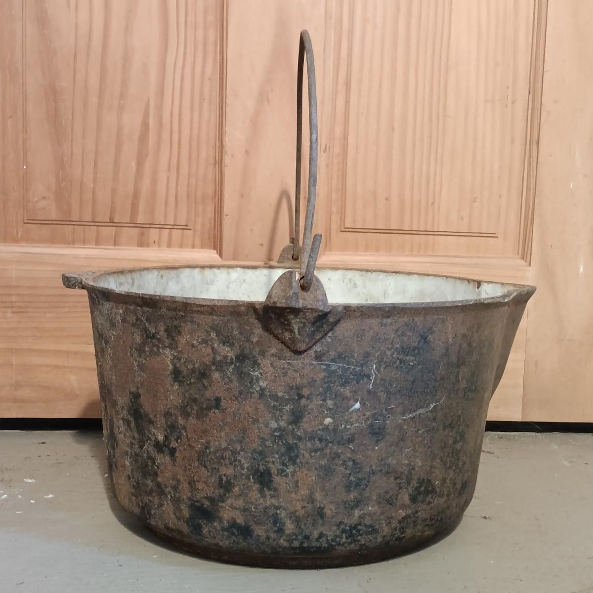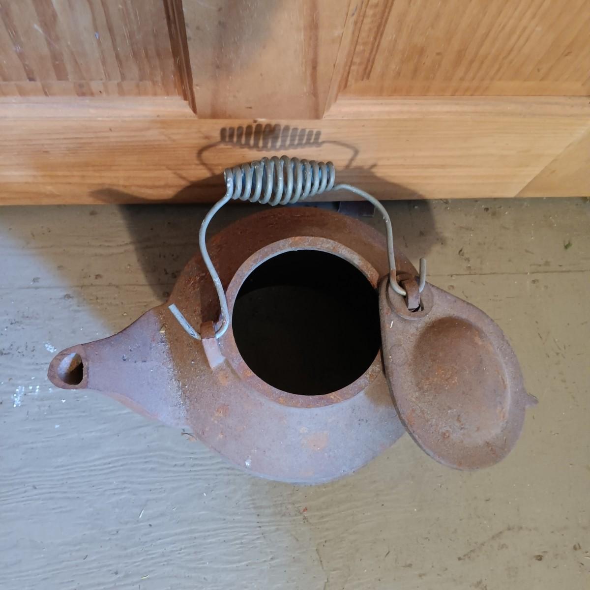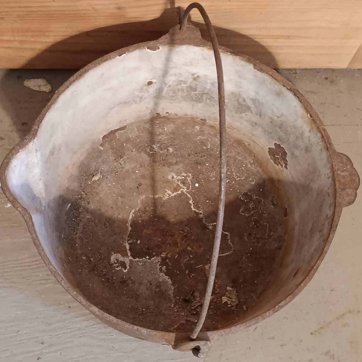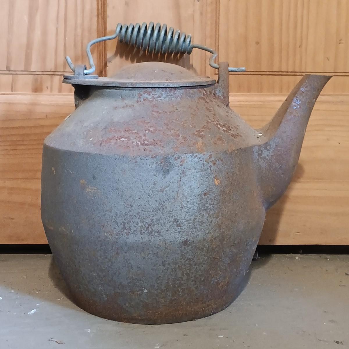LOT 144: Vintage Cast Iron John Wright Tea Kettle, Cooking Pot & Ladle