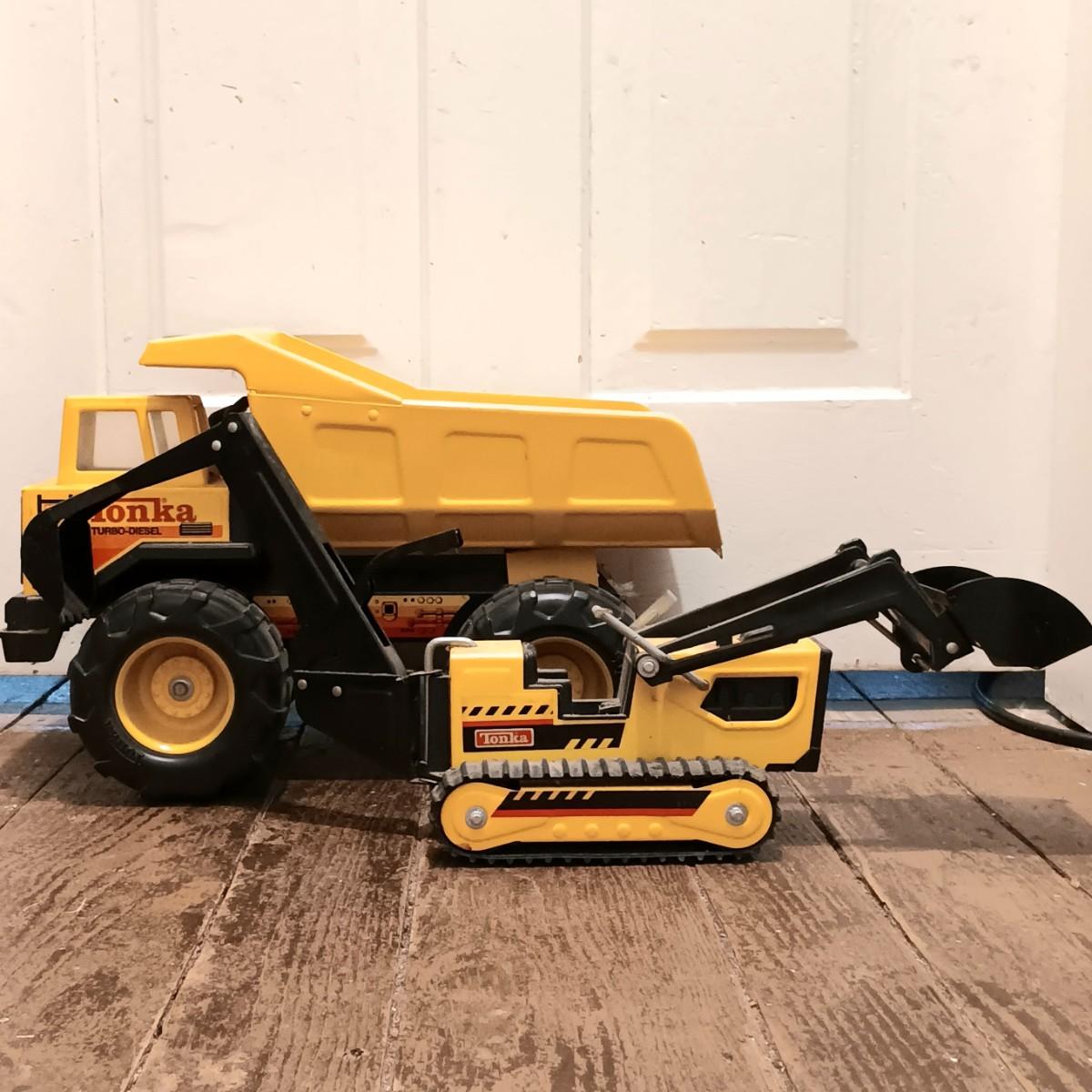 LOT 168: Vintage Metal Tonka Mighty Tonka Dump Trunk & Excavator