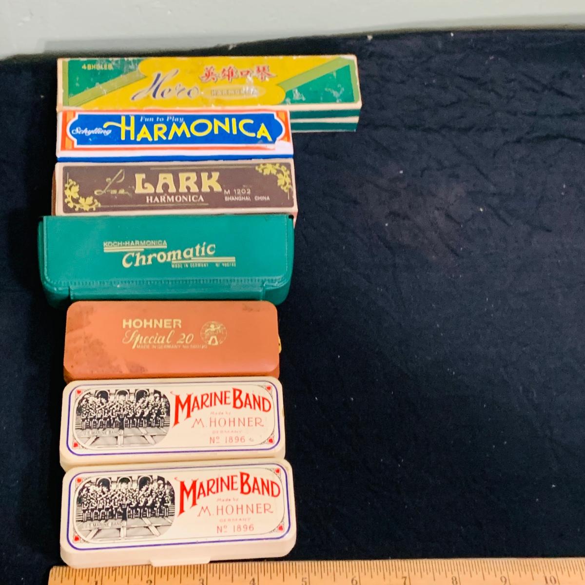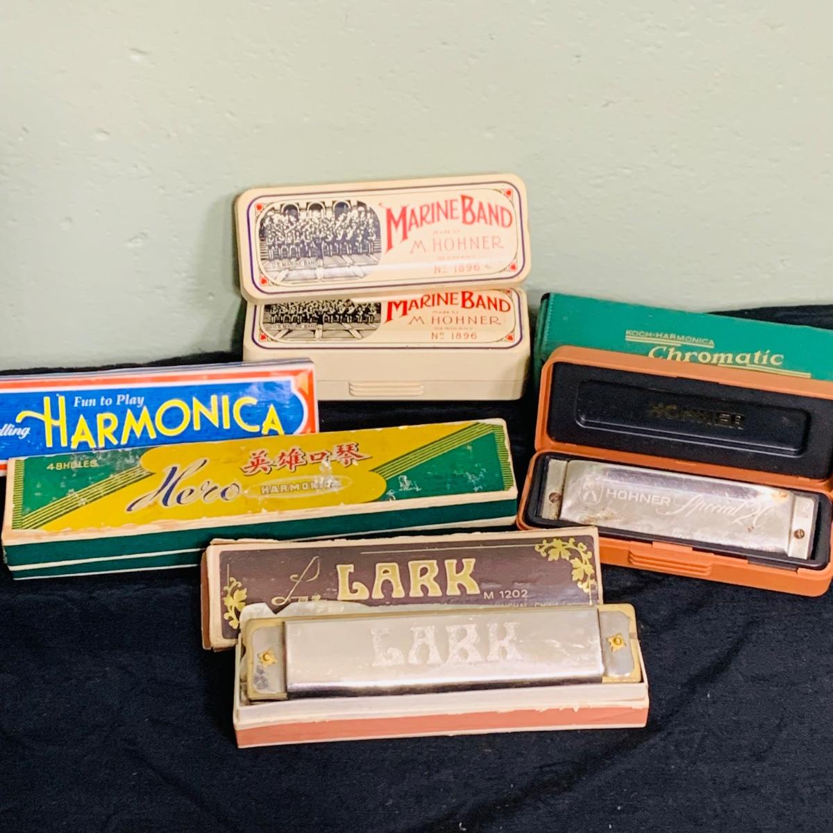 LOT 197: Collection of Vintage Harmonicas by Lark, Horner, Schylling and Hero