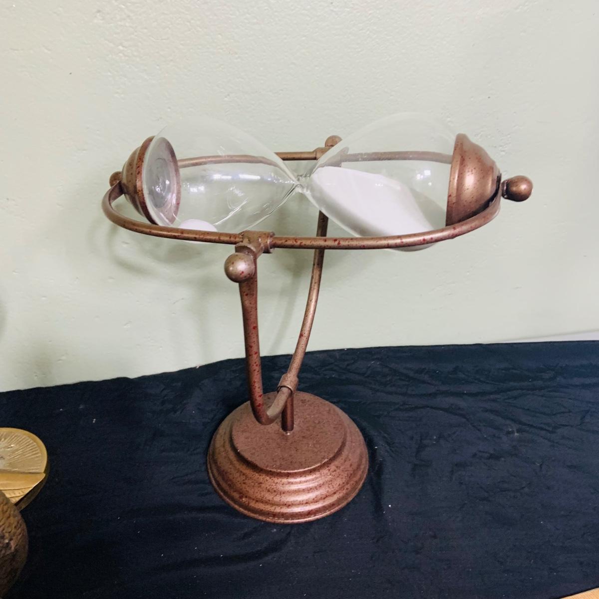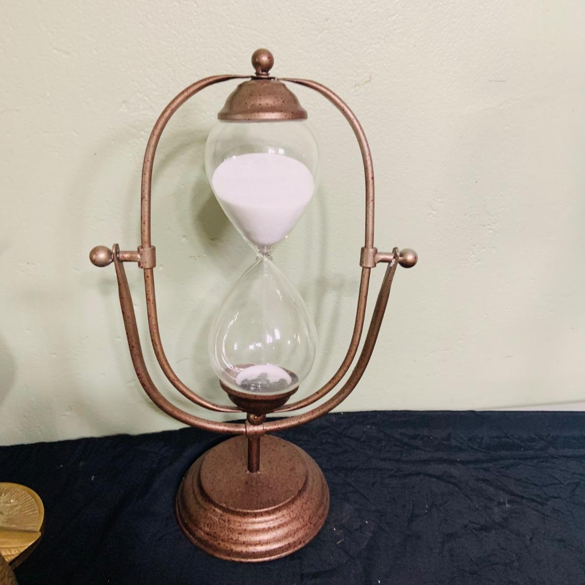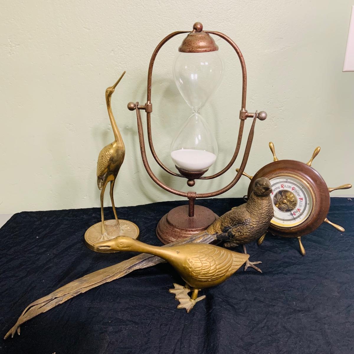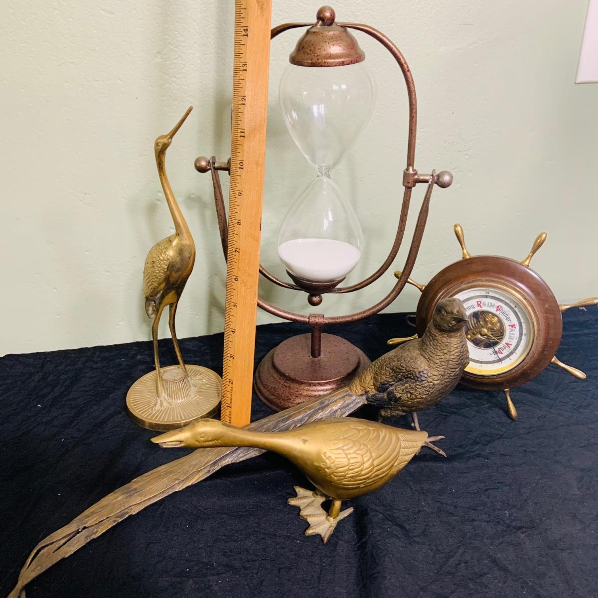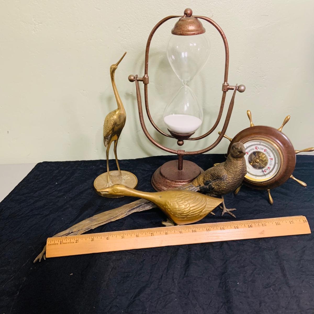 LOT 198: Collection of Brass and Metal Birds, and Hour Glass and Barometer