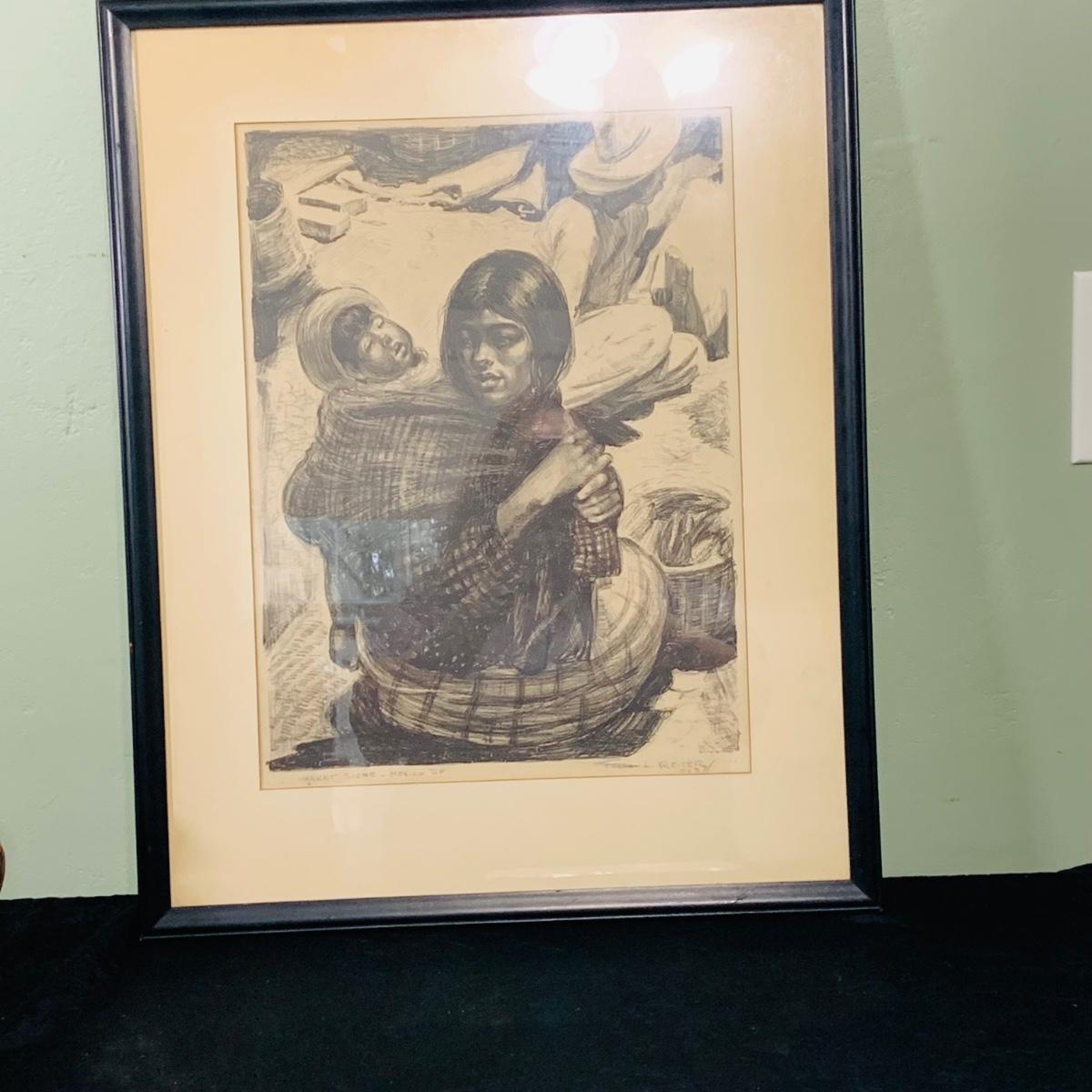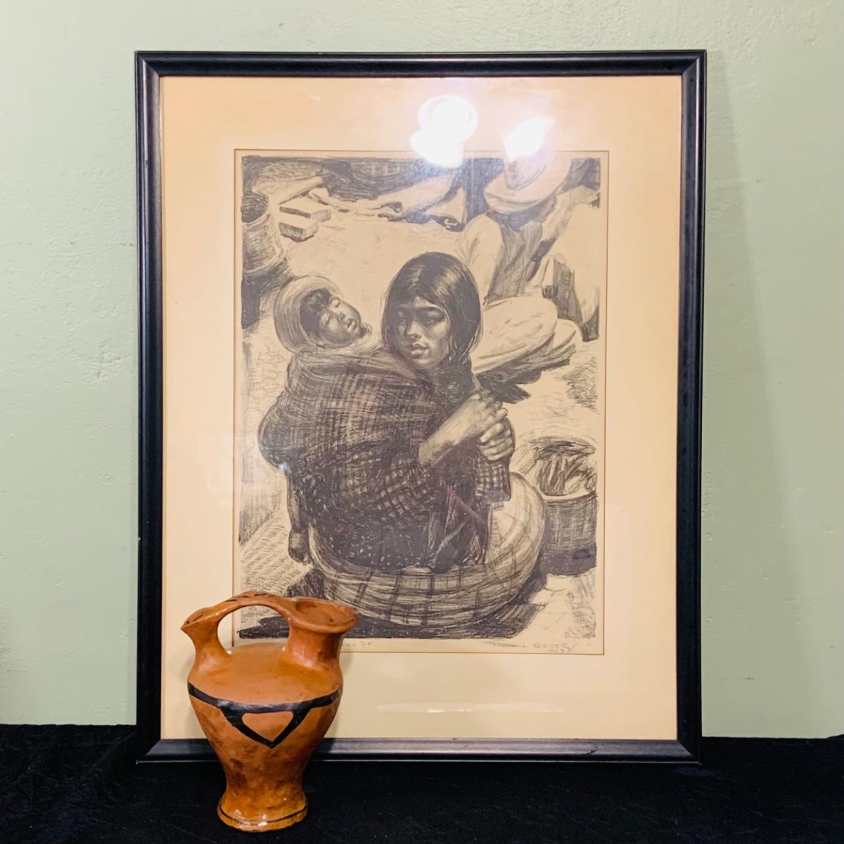 LOT 206: Market Scene- Mexico DF by Freda L Reiter Dated 1943 and South American Pottery Jug