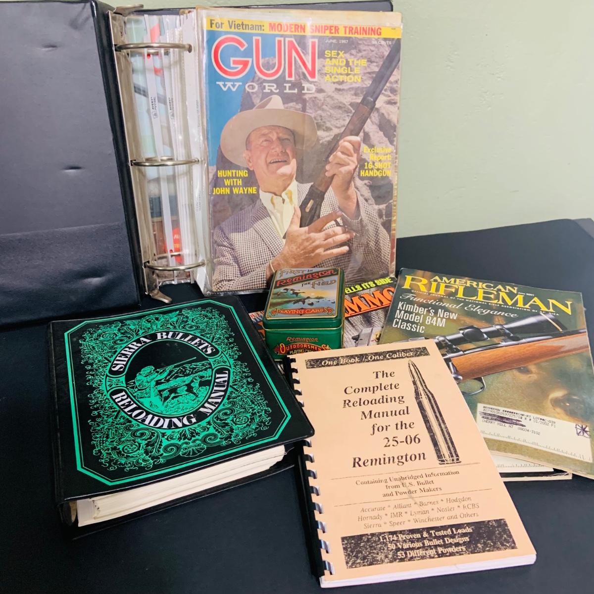 LOT 210: Collection of Firearm Literature Including Serra and Remington Bullet Reloading Manuals: Vintage Magazines- “Guns”, “Gun Sport” “Remington Peters” and More:
