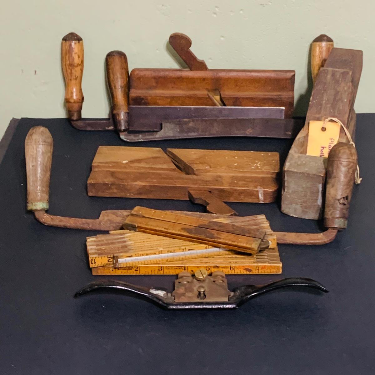 LOT 211: Collection of Vintage/Antique Tools Including Three (3) Draw Knives, Planes