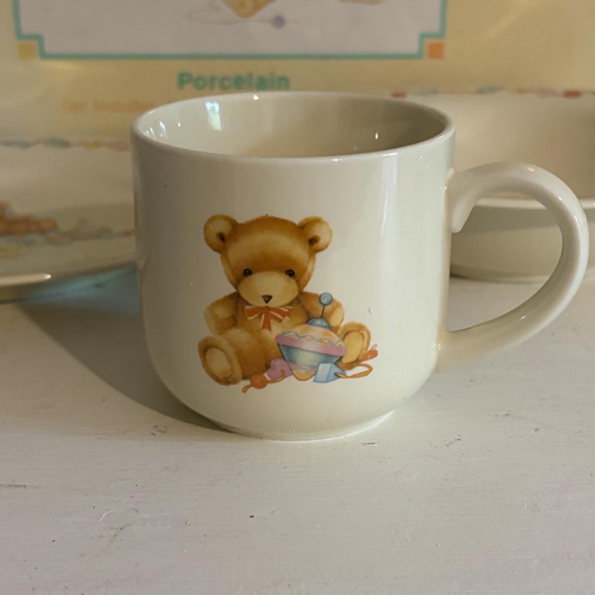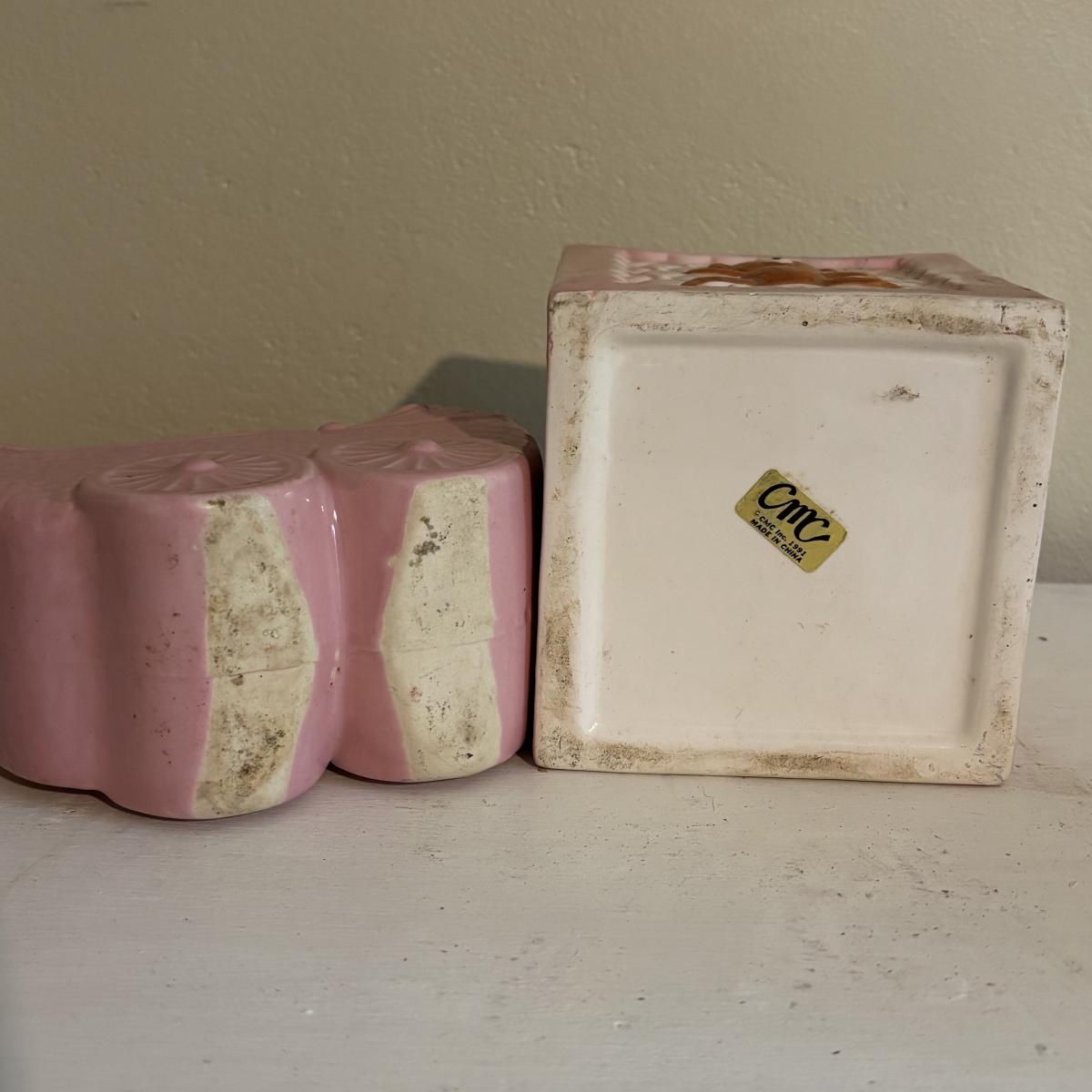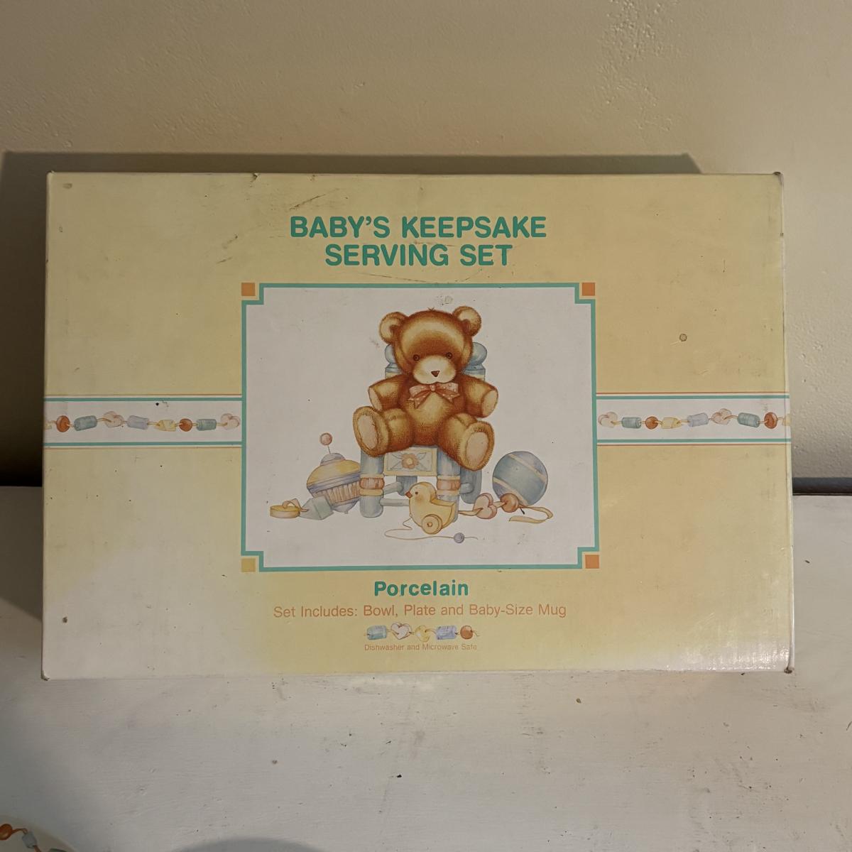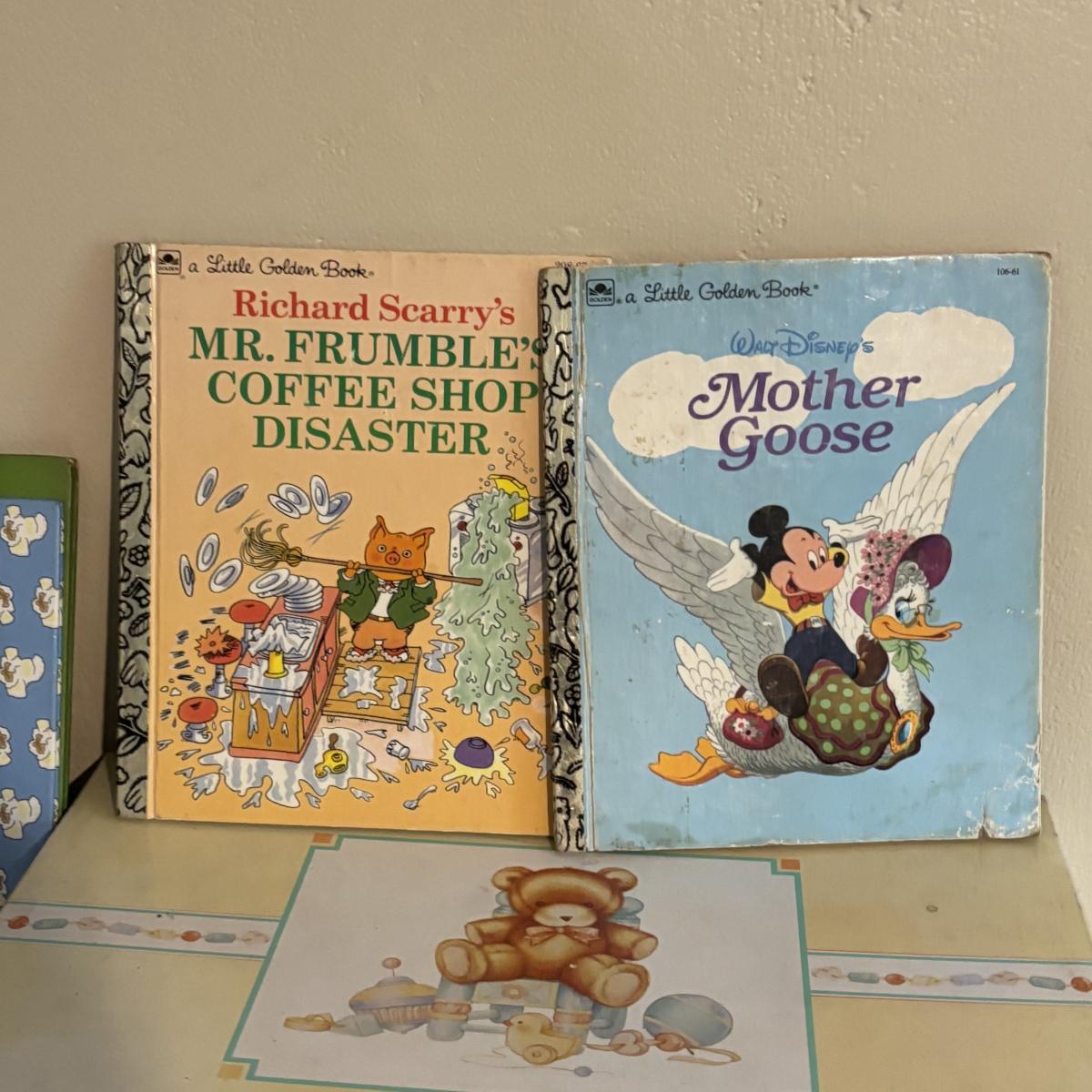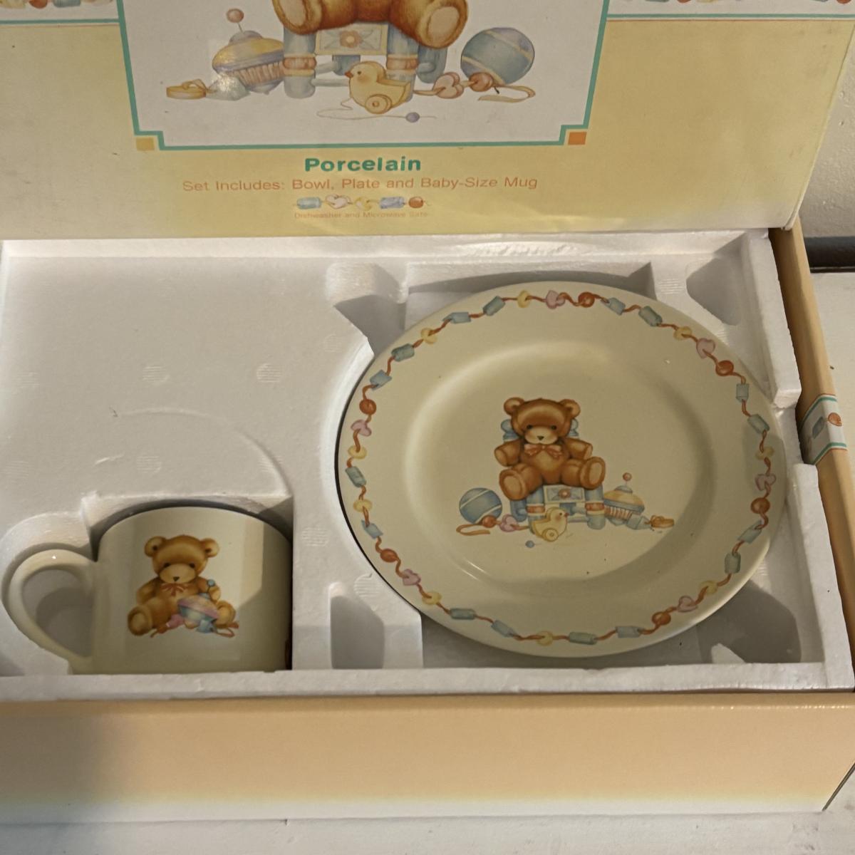 LOT 218: Hallmark Baby's Keepsake Serving Set, Vintage Books including Dr. Suess, Berstein Bears, Little Golden Books & Pink Planters