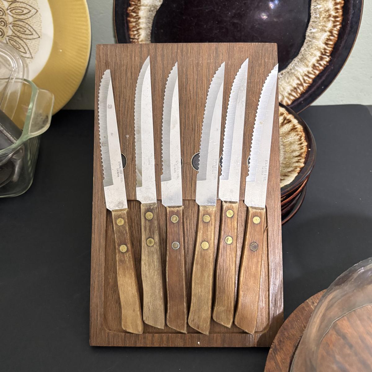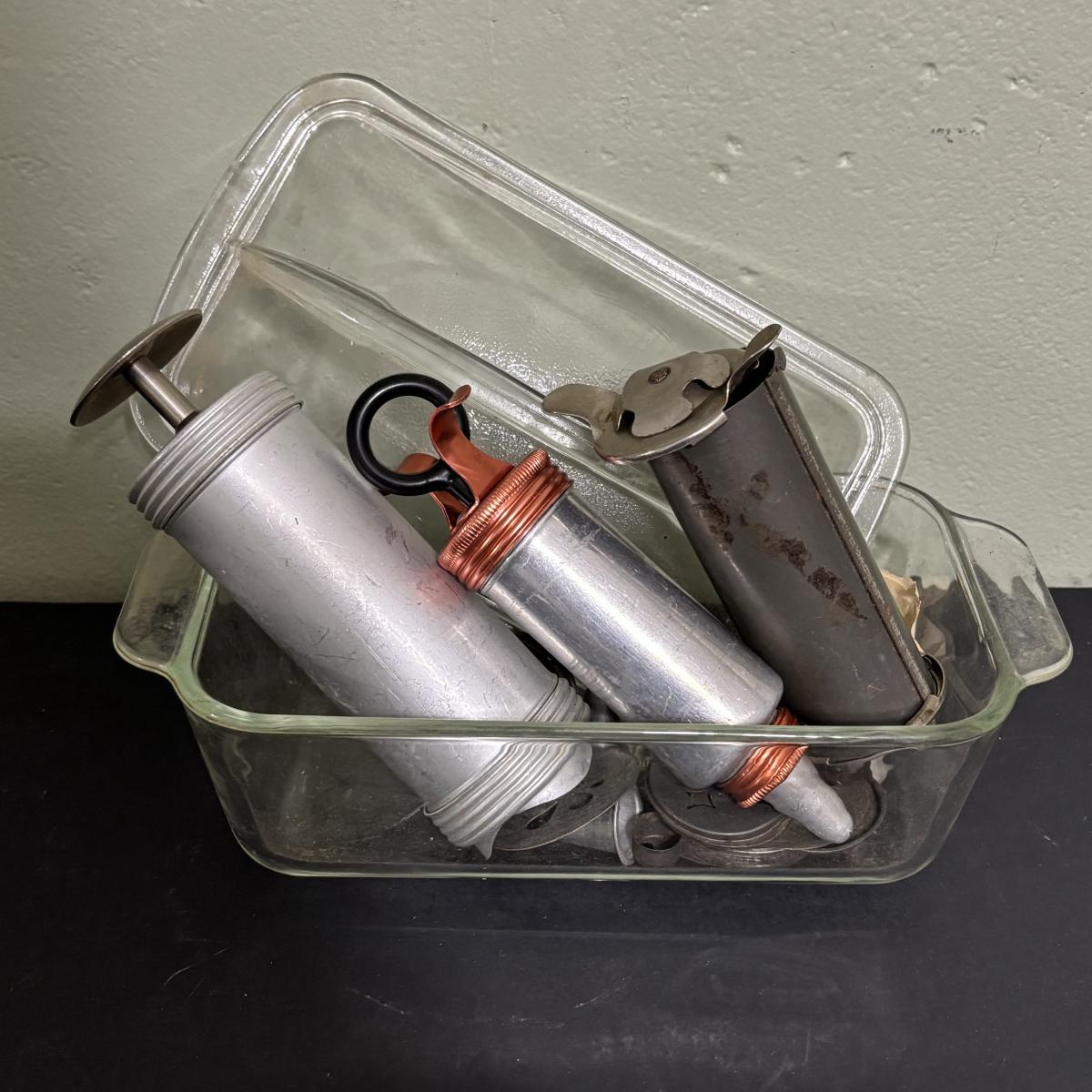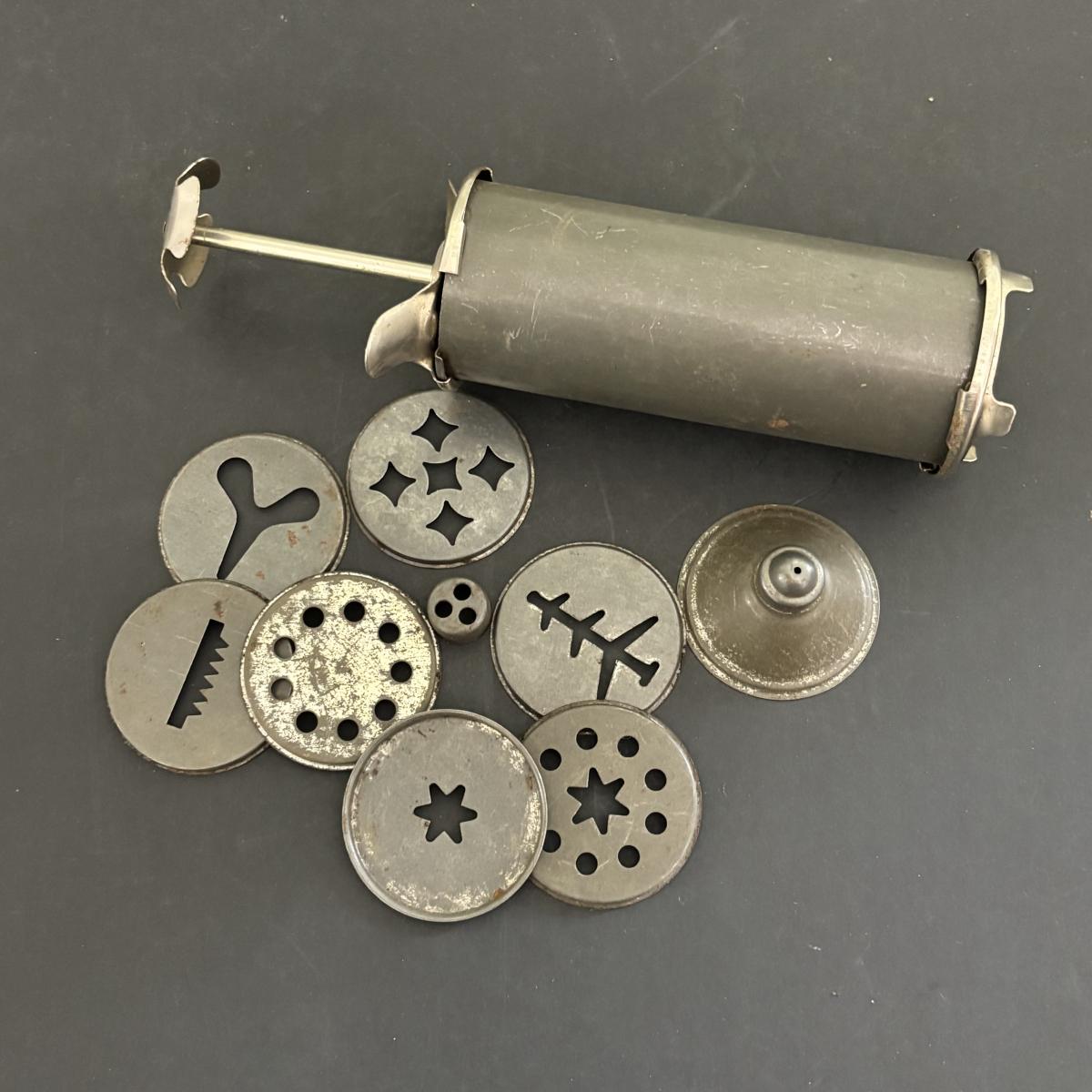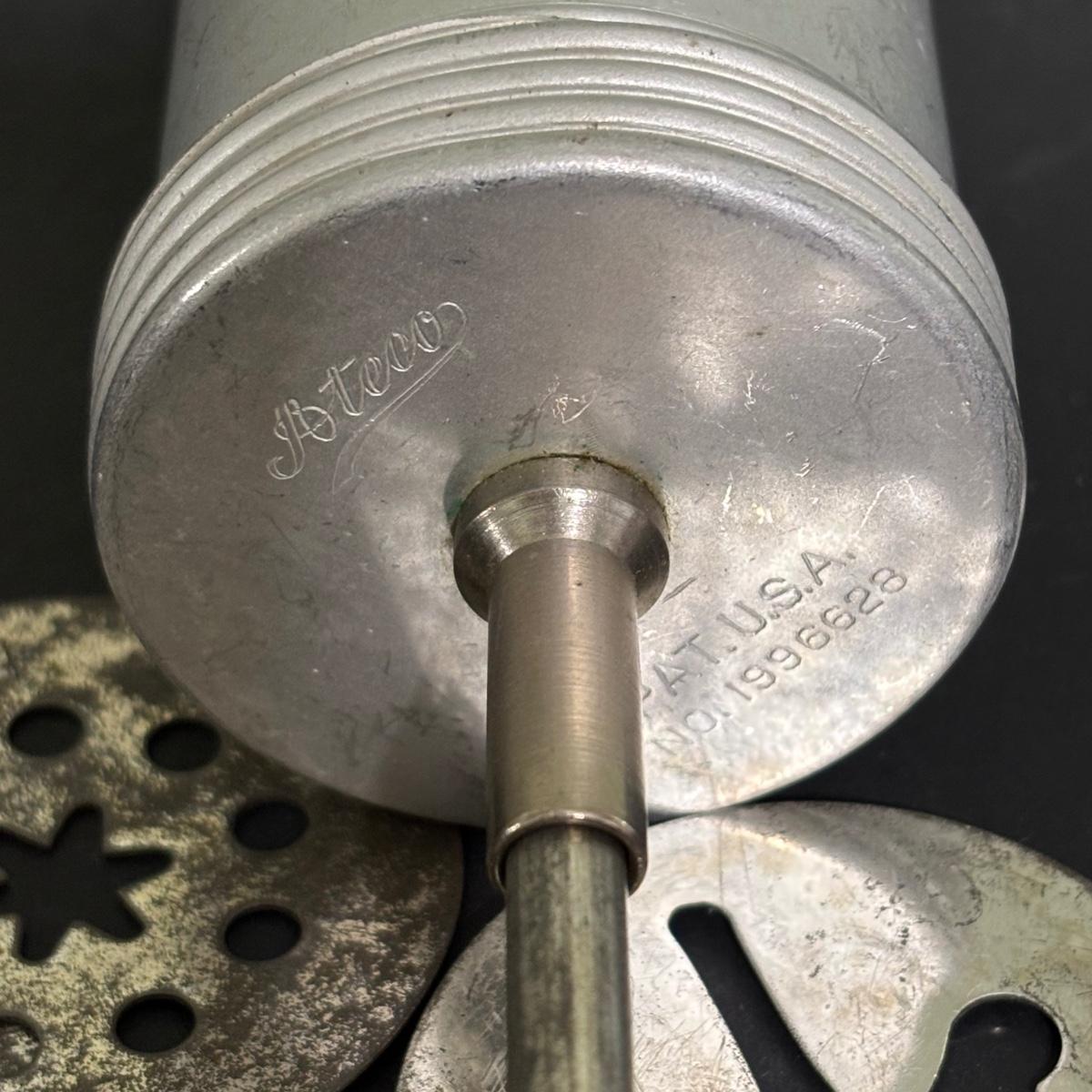 LOT 221: Kitchen Collection: New Coca-Cola Juice Glasses, Vintage Cookie Press/Cake Decorator, Pottery Condiment Set, Steak Knives w/Magnetic Steak, Barvaria Germany Teapot & More
