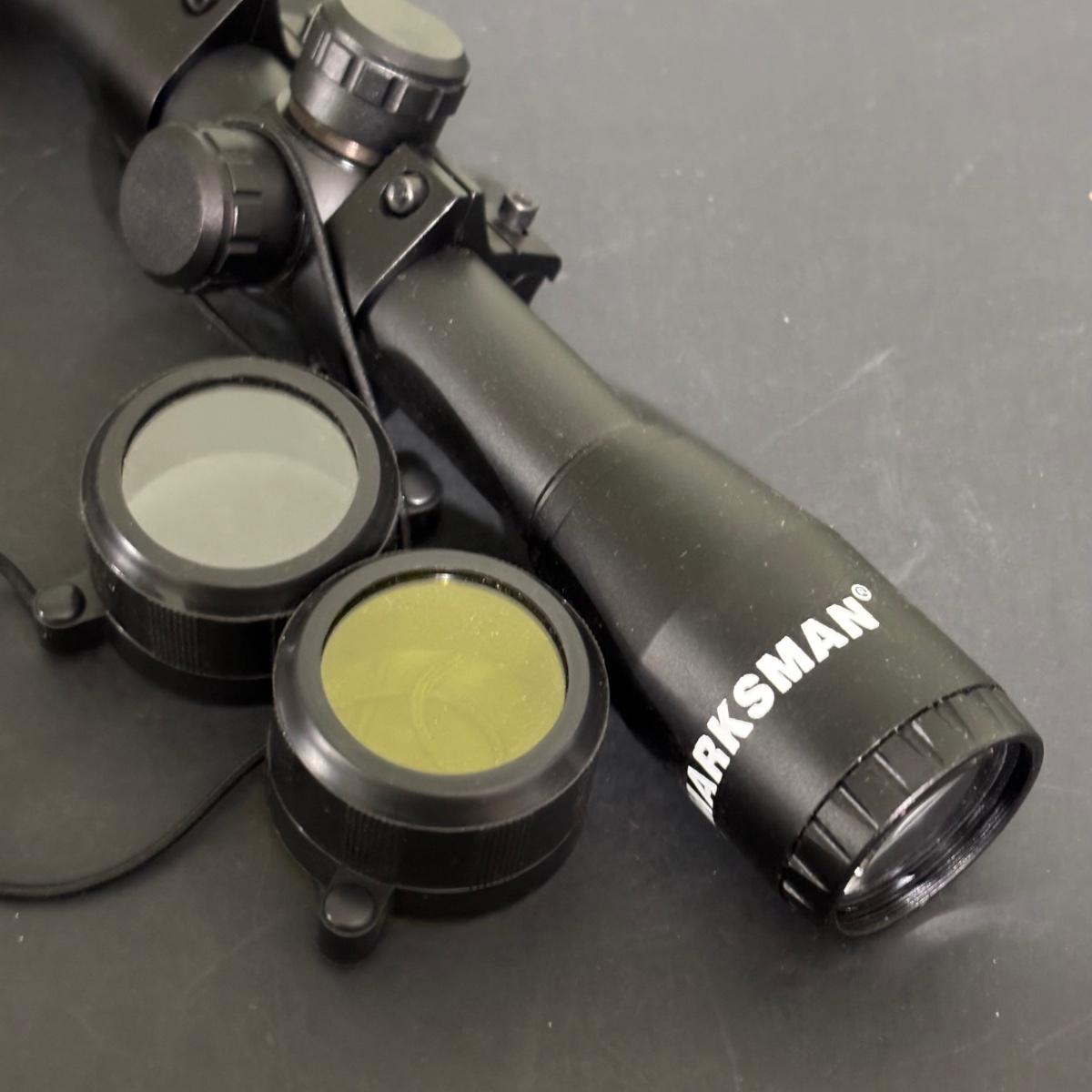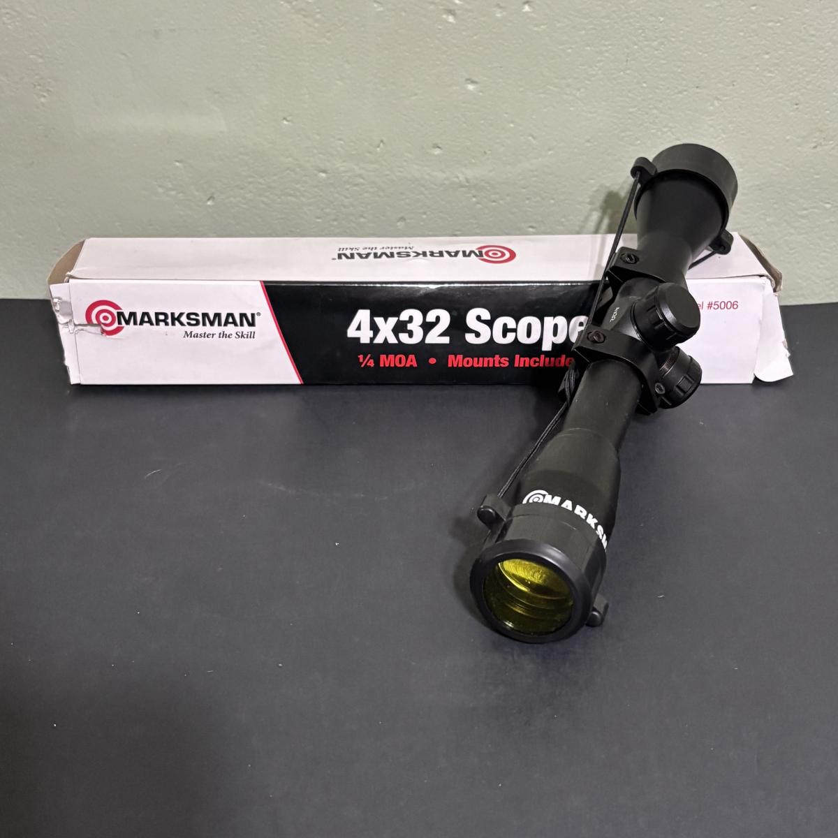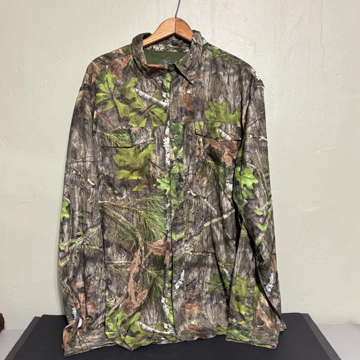 LOT 222: Mossy Oak (XL) Camo Shirt, Outers Shotgun Cleaning Kit, Marksman 4x32 Scope & Primos Trigger Stick Gen2 Jim Shockey Edition