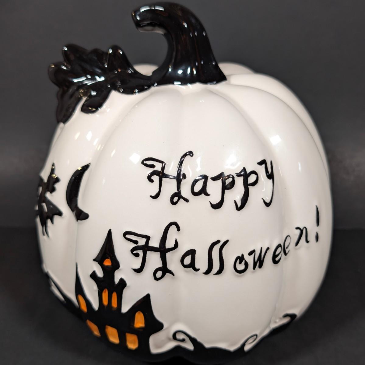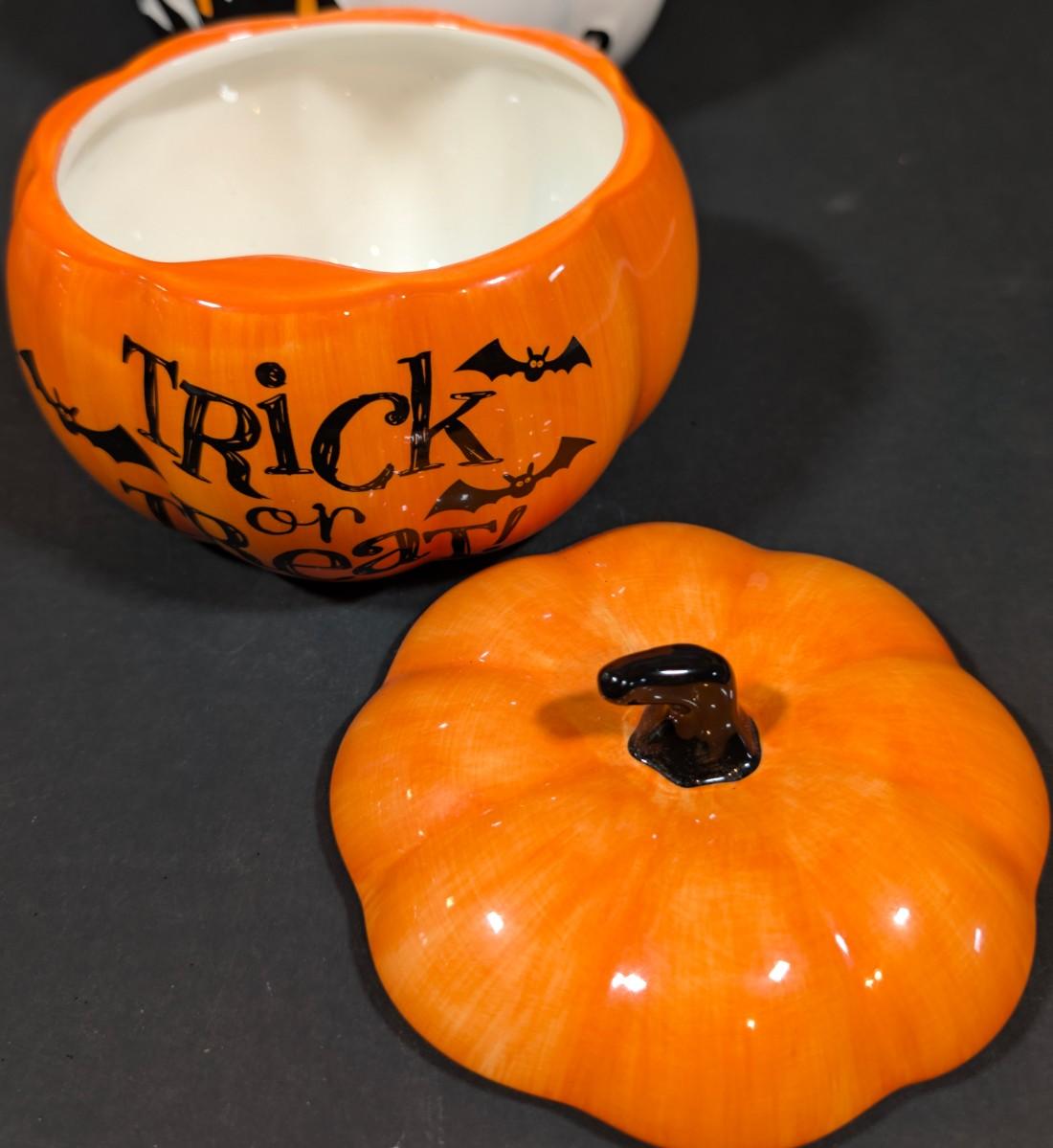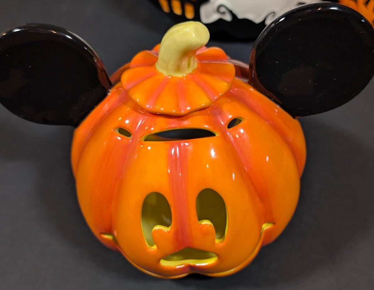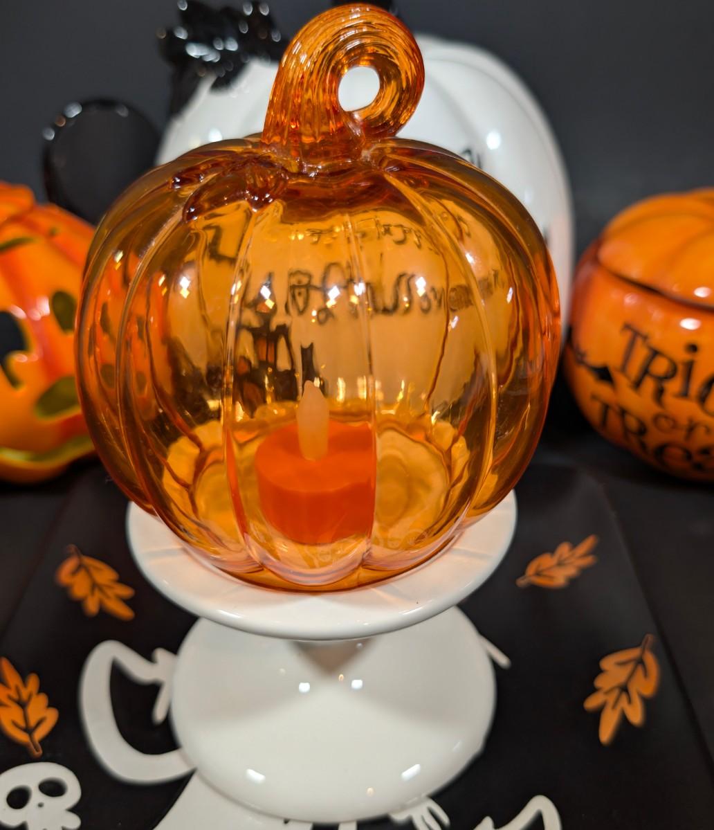 LOT 8B: Large Assortment Of Halloween Home Decor, Beautifully Made Witch Over 3 Ft. Tall, Ceramic Pumpkins, Mickey Mouse & Glass Pumpkin With Pillar Tea Light Holders, Hand Towels & More