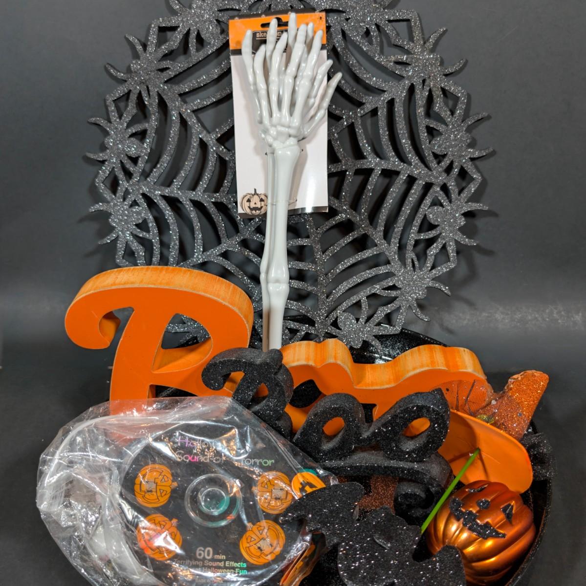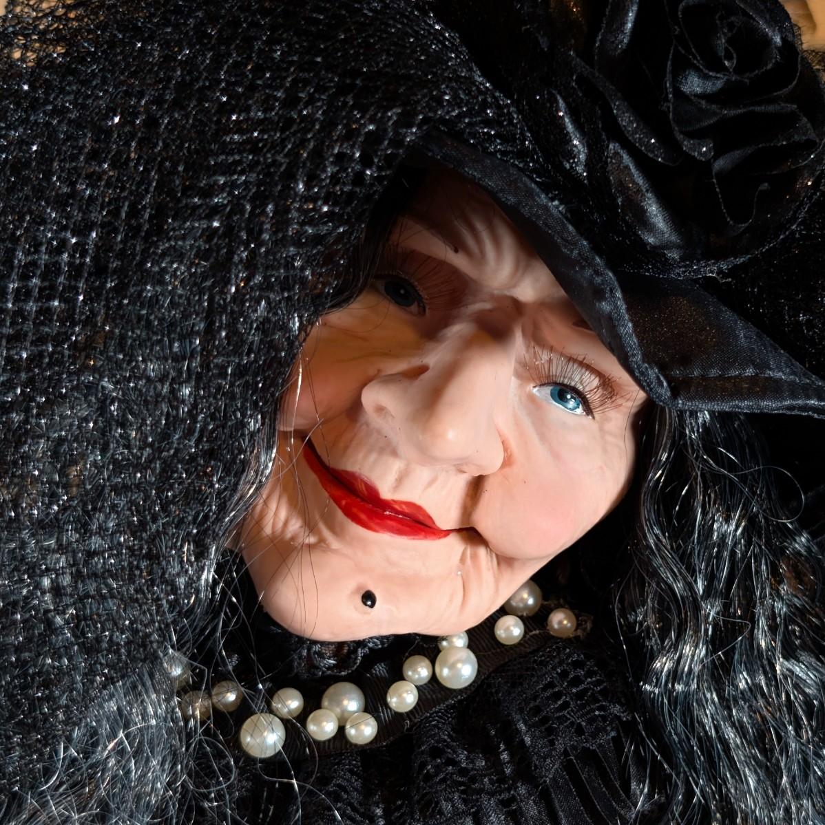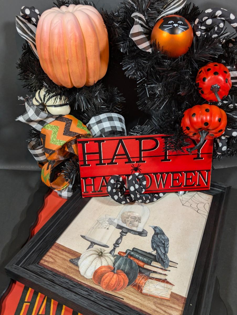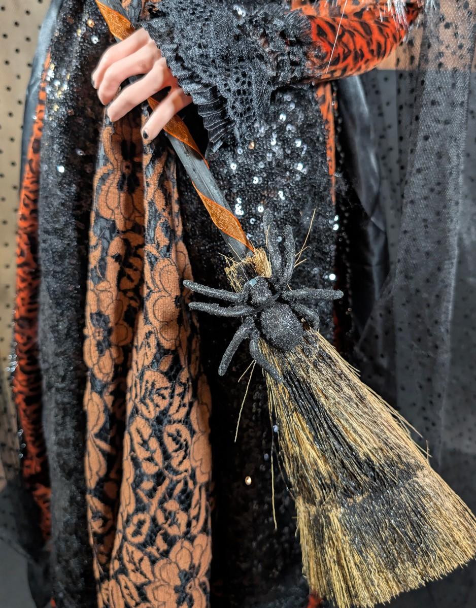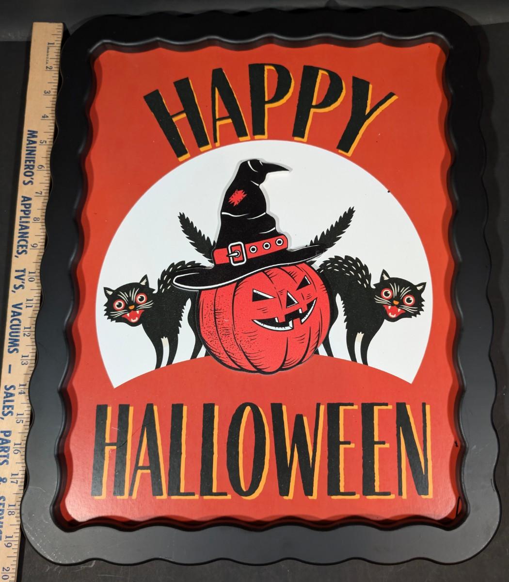 LOT 8B: Large Assortment Of Halloween Home Decor, Beautifully Made Witch Over 3 Ft. Tall, Ceramic Pumpkins, Mickey Mouse & Glass Pumpkin With Pillar Tea Light Holders, Hand Towels & More
