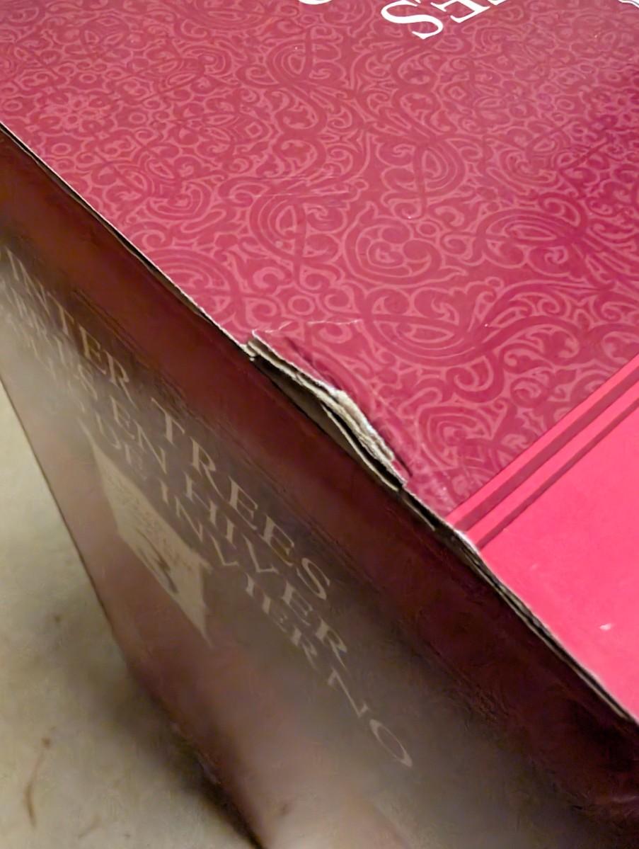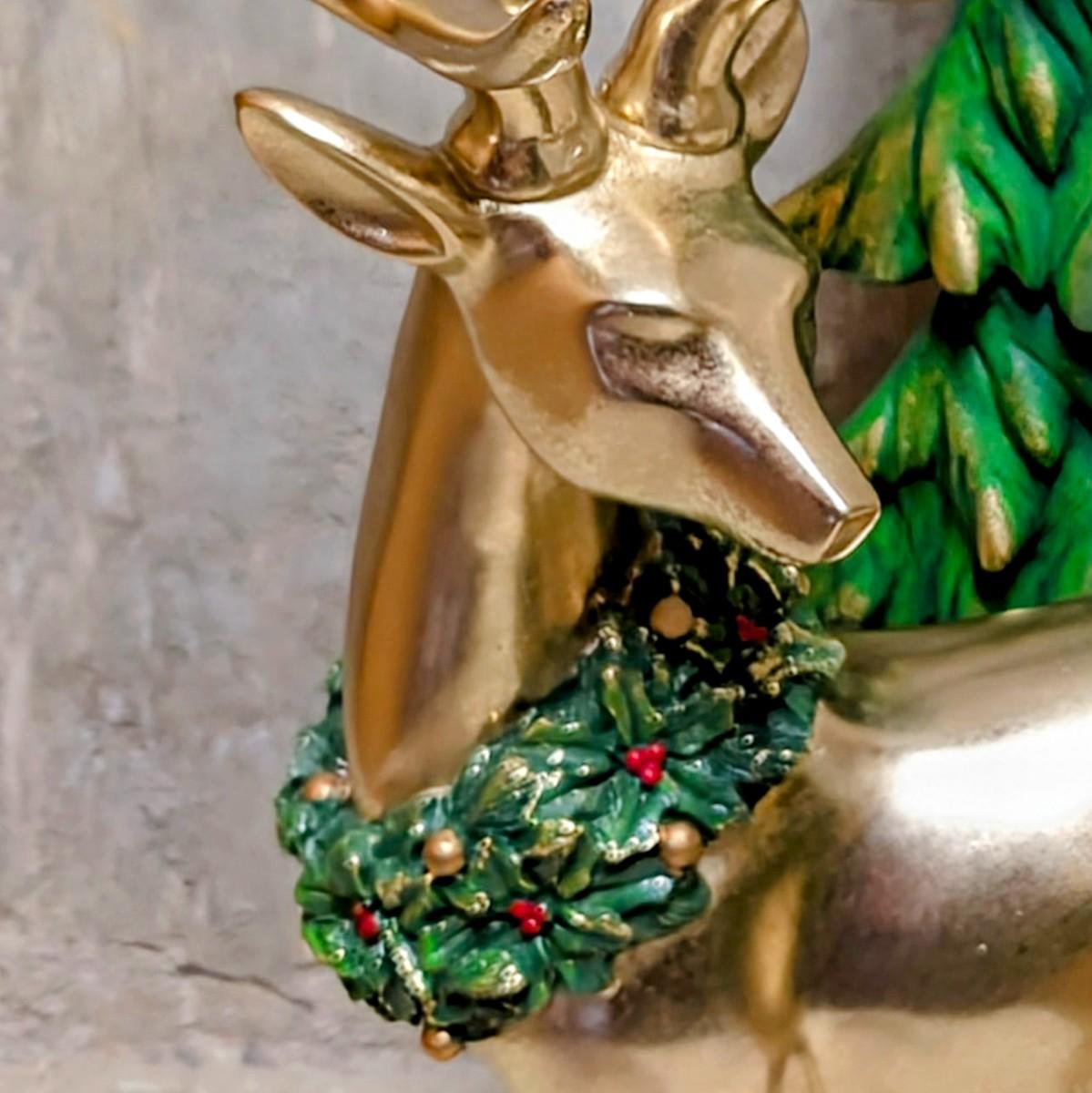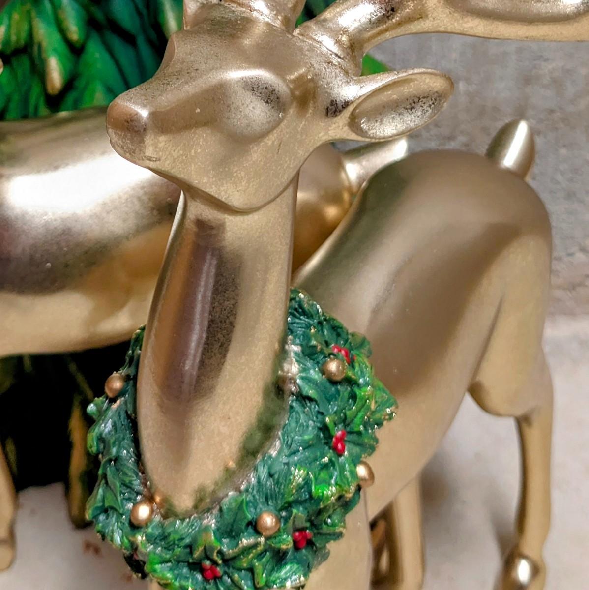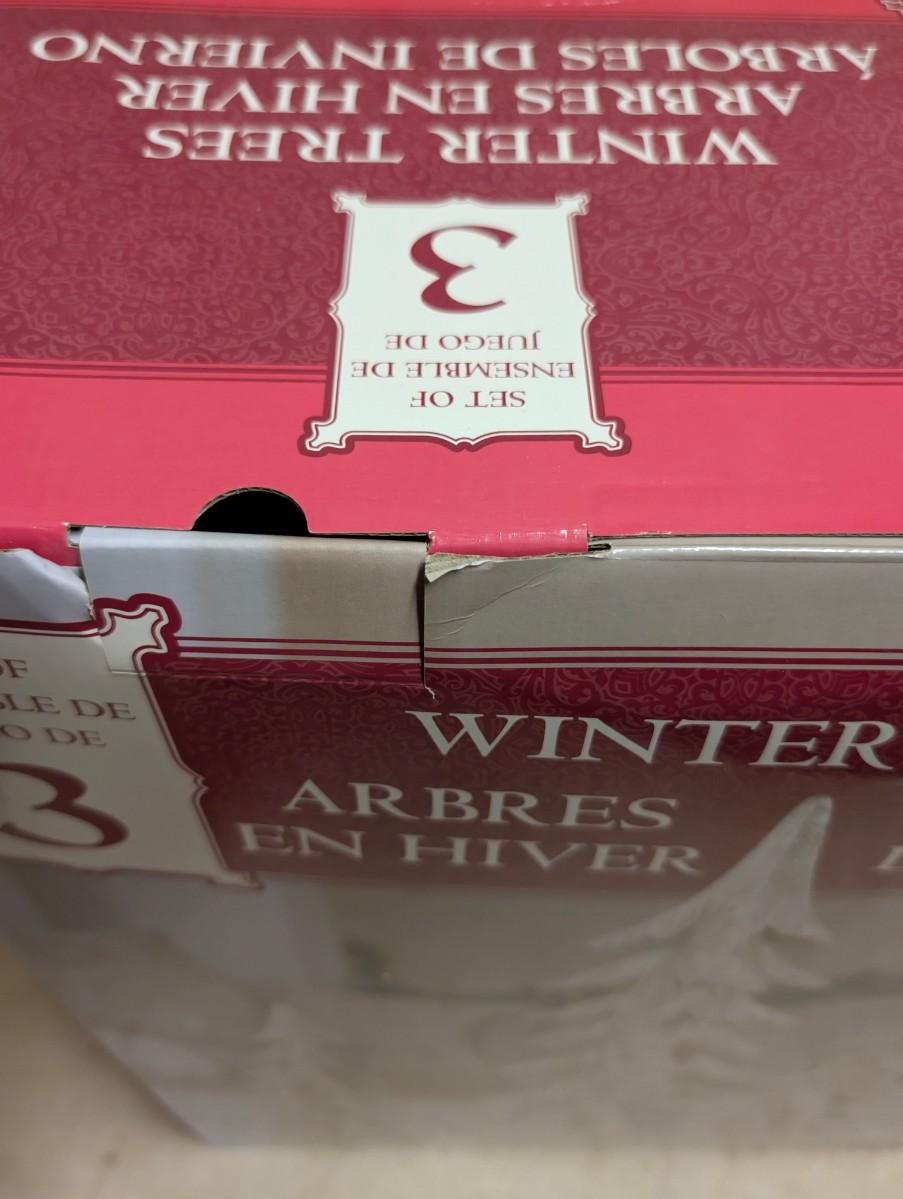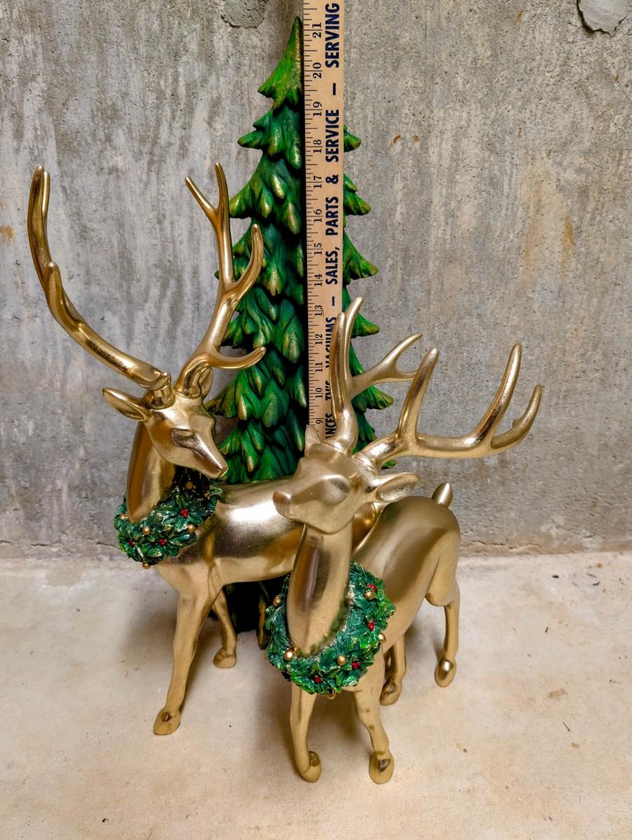 LOT 10B: Elegant Christmas Home Decor, 3 Farmhouse/Rustic Resin Winter Trees NIB & 2 Resin Gold Bucks With Tree, Comes With Original Styrofoam Box For Storing