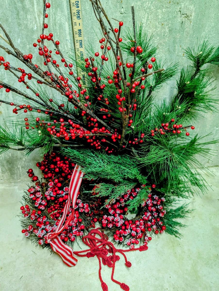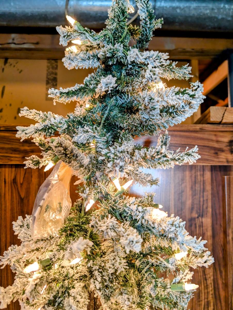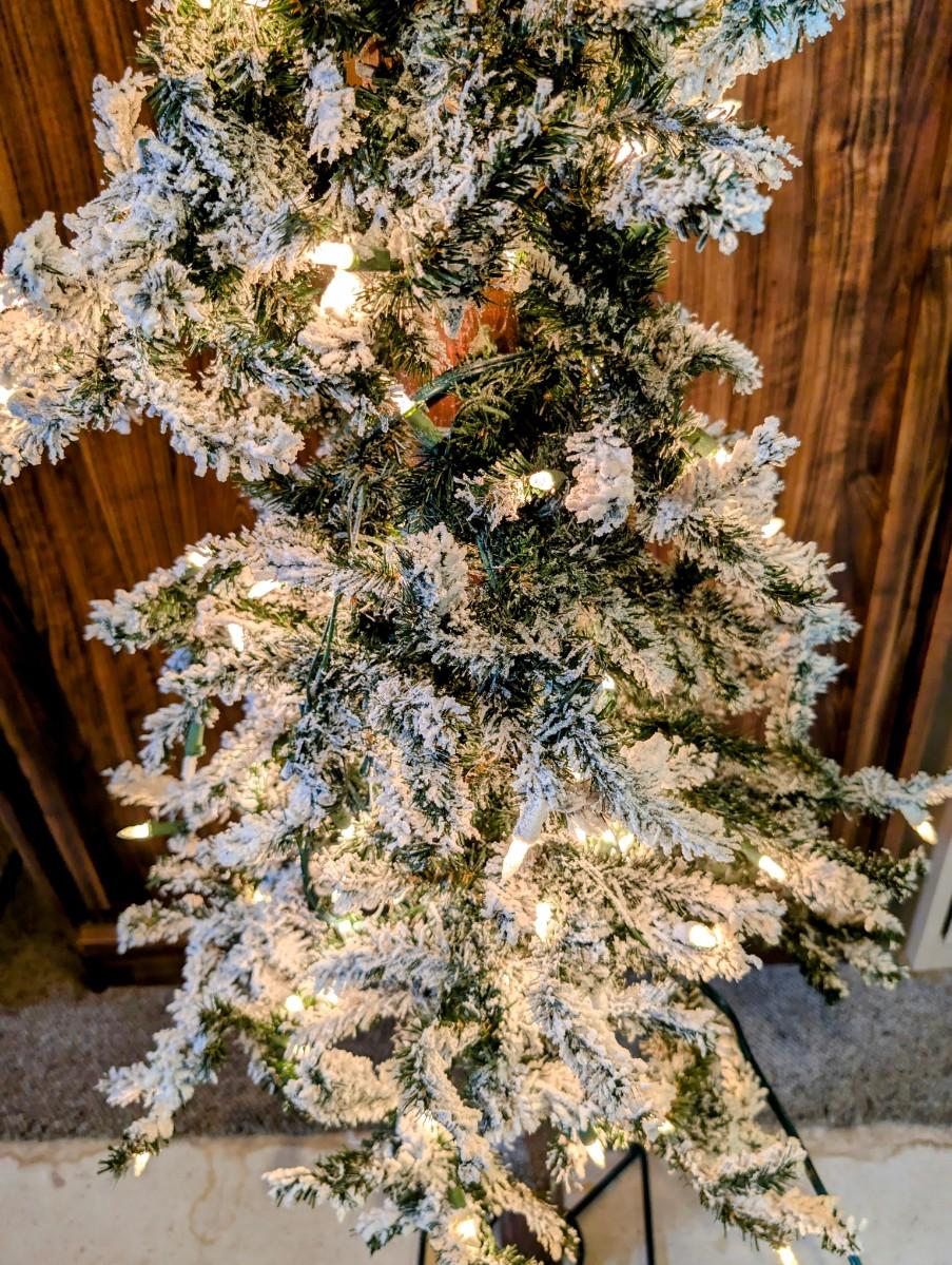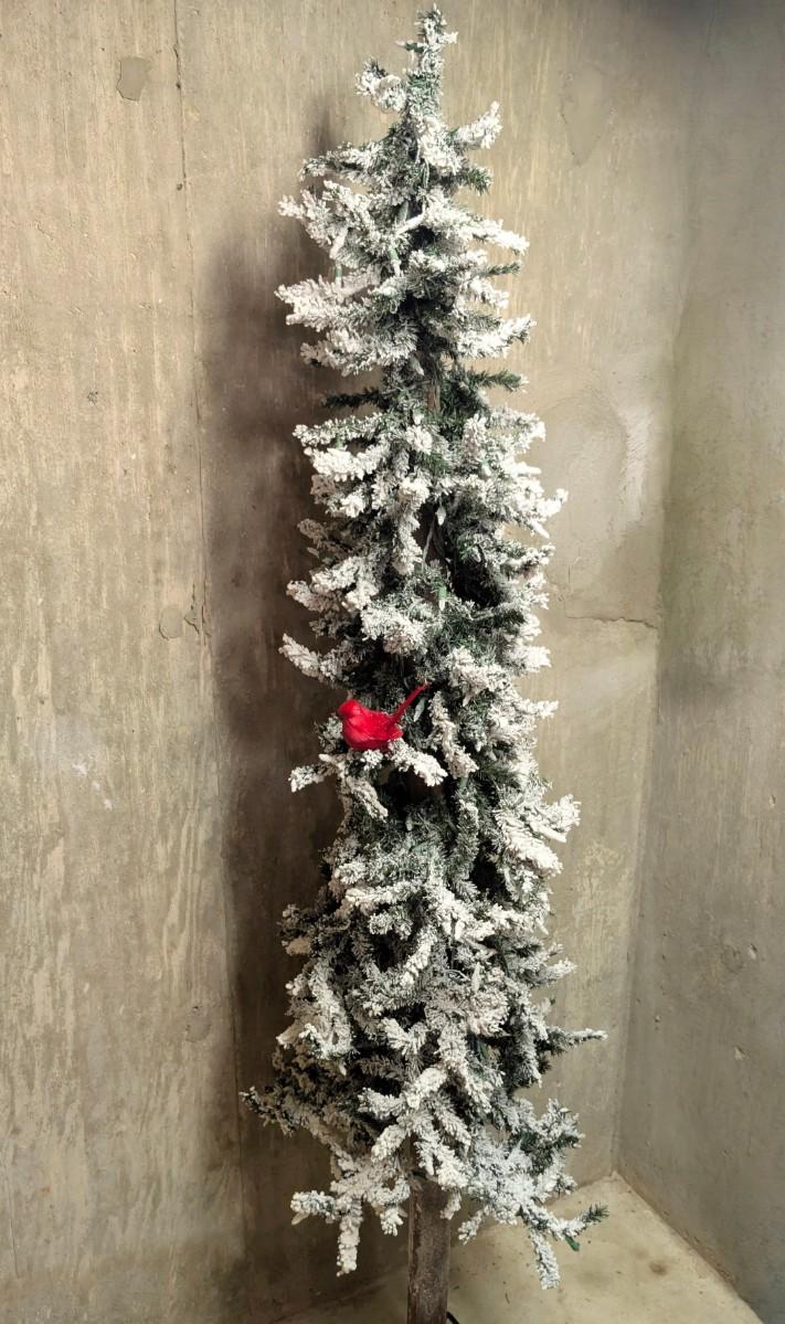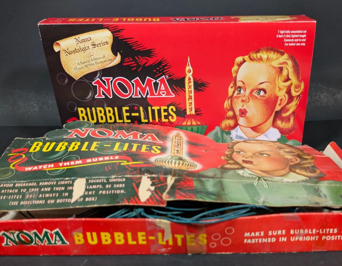 LOT 15B: Christmas Home Decor, Lighted Faux Flocked Tree, Lights Worked When Tested At Time Of Photo, 2 Sets of Nostalgic Inspired Bubble Lights, Not Tested, Crate & Barrel Tall Red Vase & More