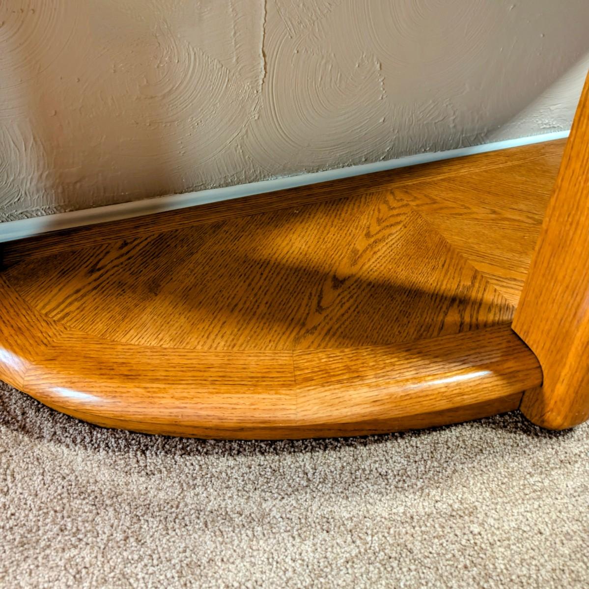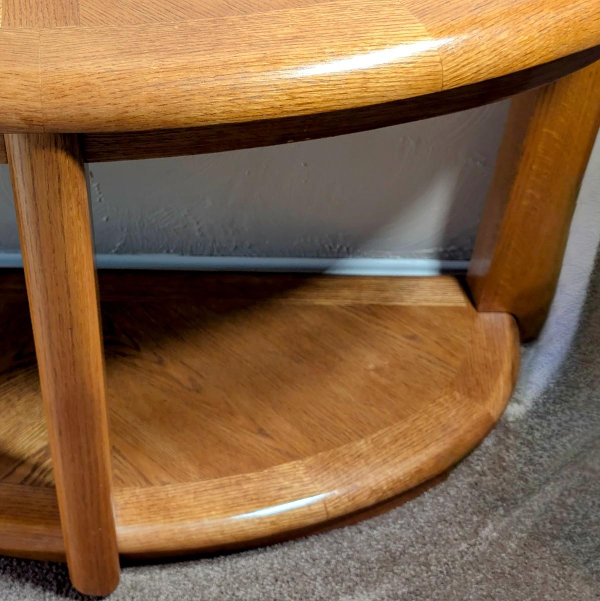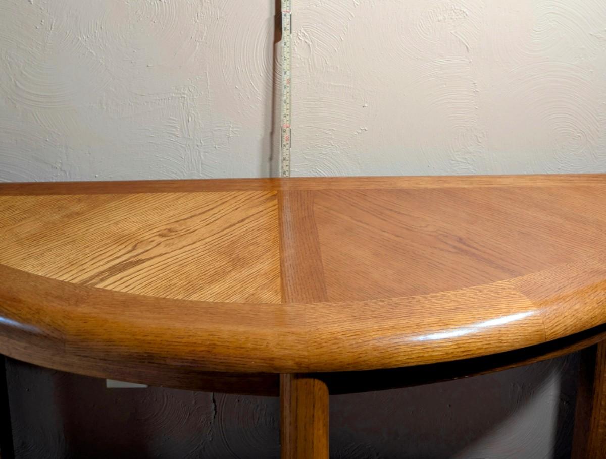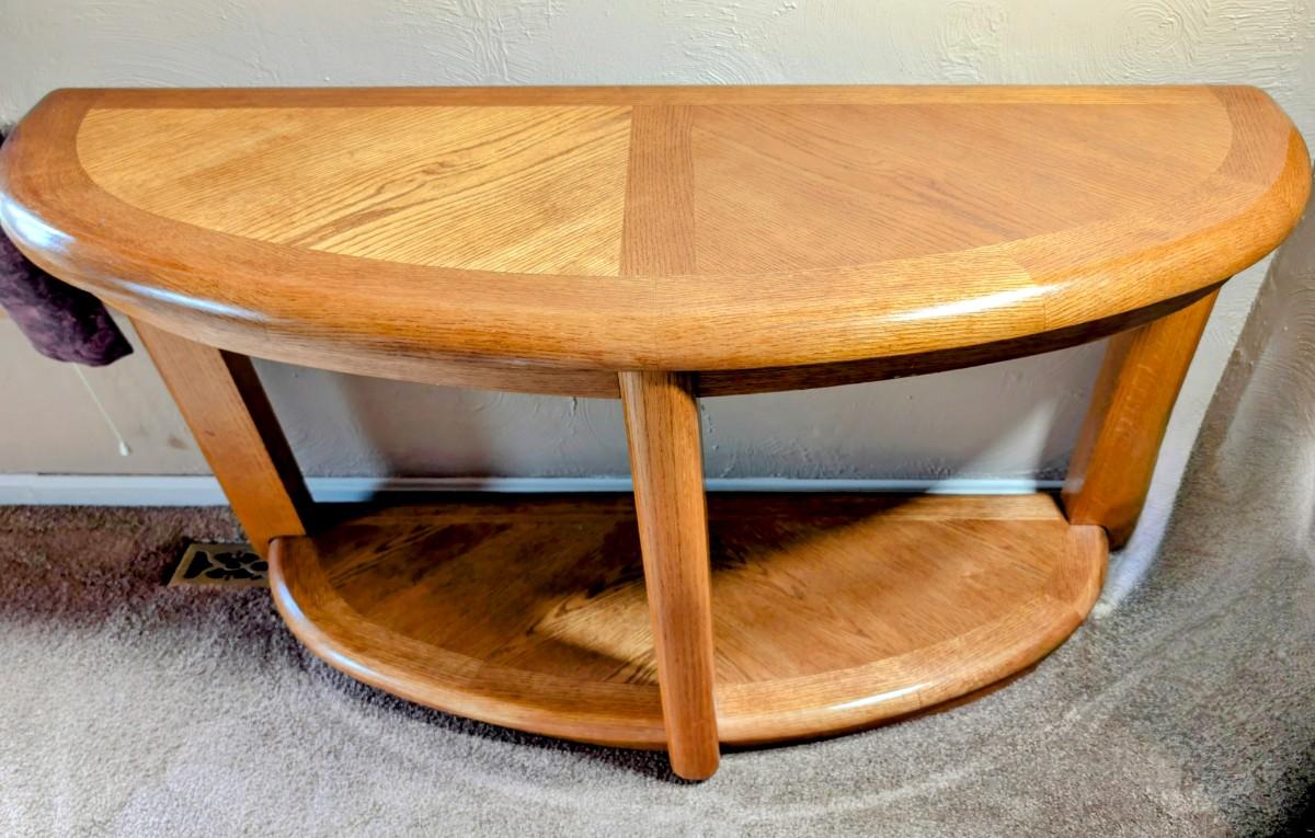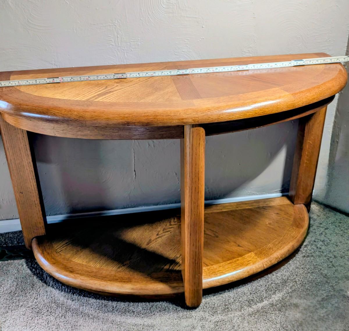 LOT 18L: Vintage Half Moon Oak Sofa Table With Shelf Base 45 1/2" L X 15 3/4" W X 28 3/4 H