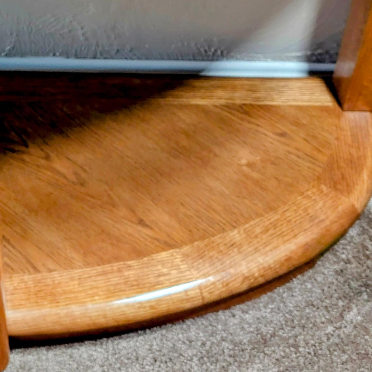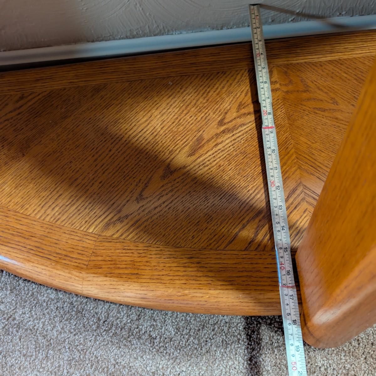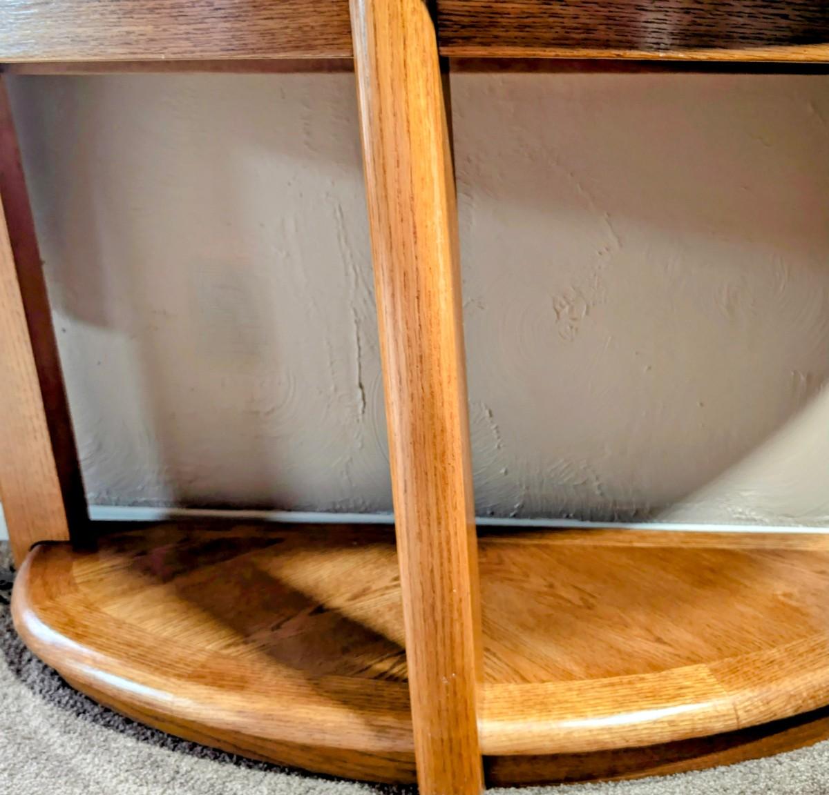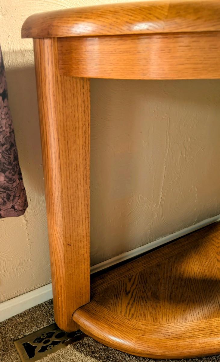 LOT 18L: Vintage Half Moon Oak Sofa Table With Shelf Base 45 1/2" L X 15 3/4" W X 28 3/4 H
