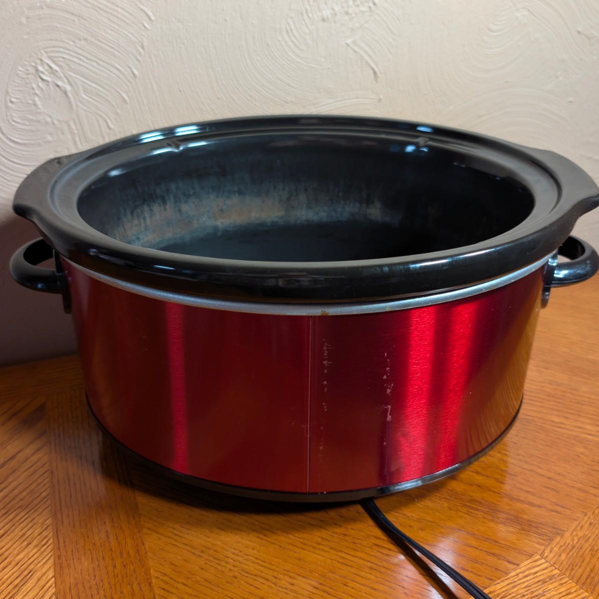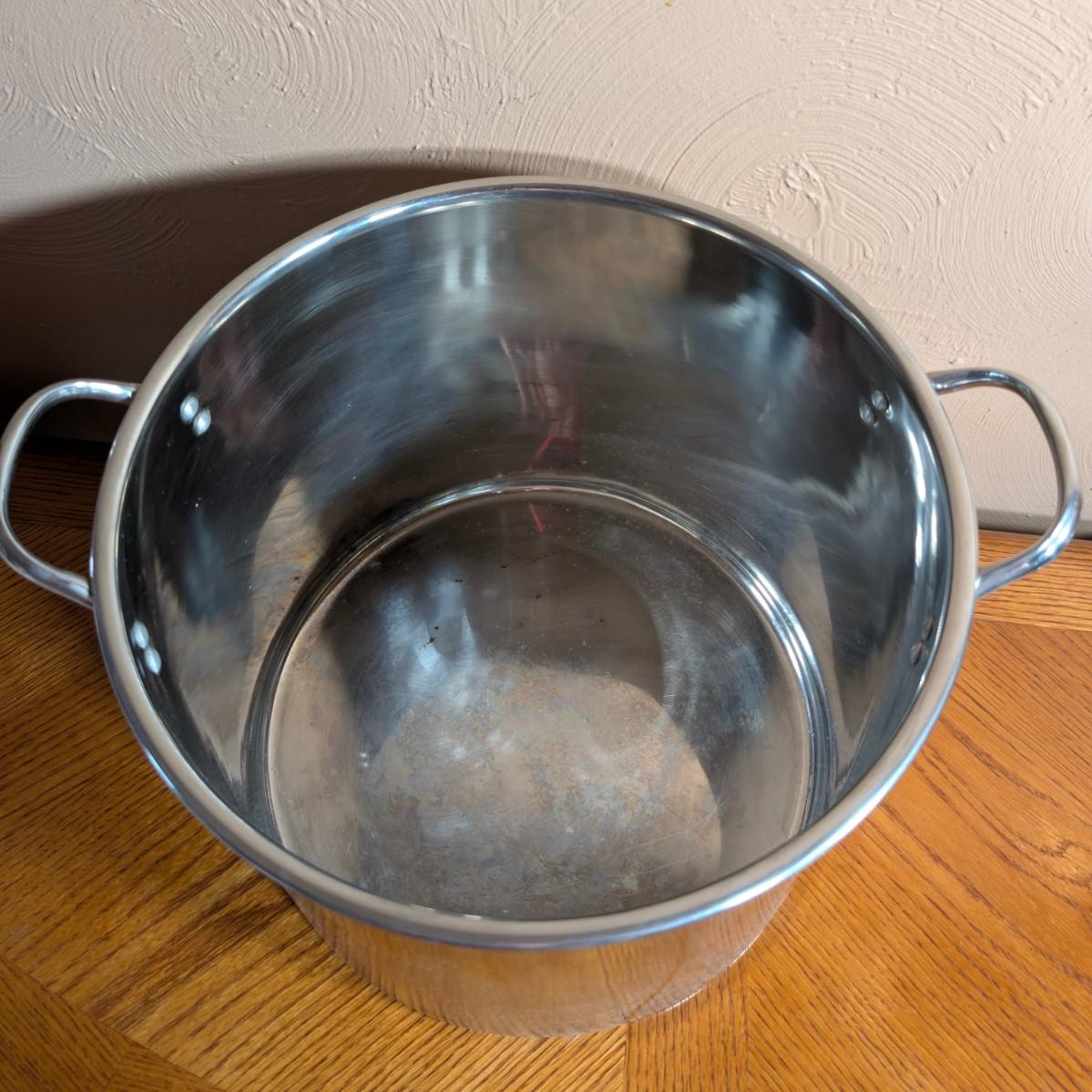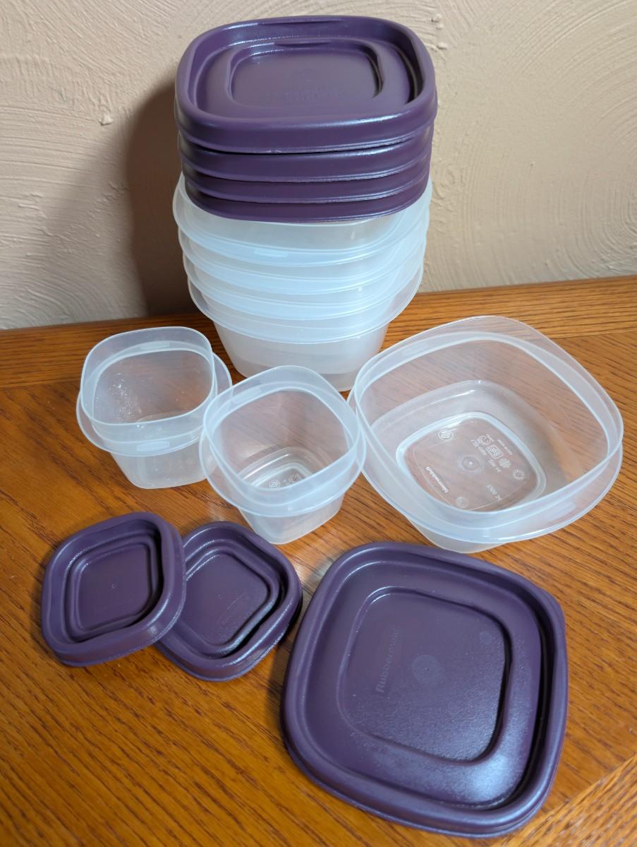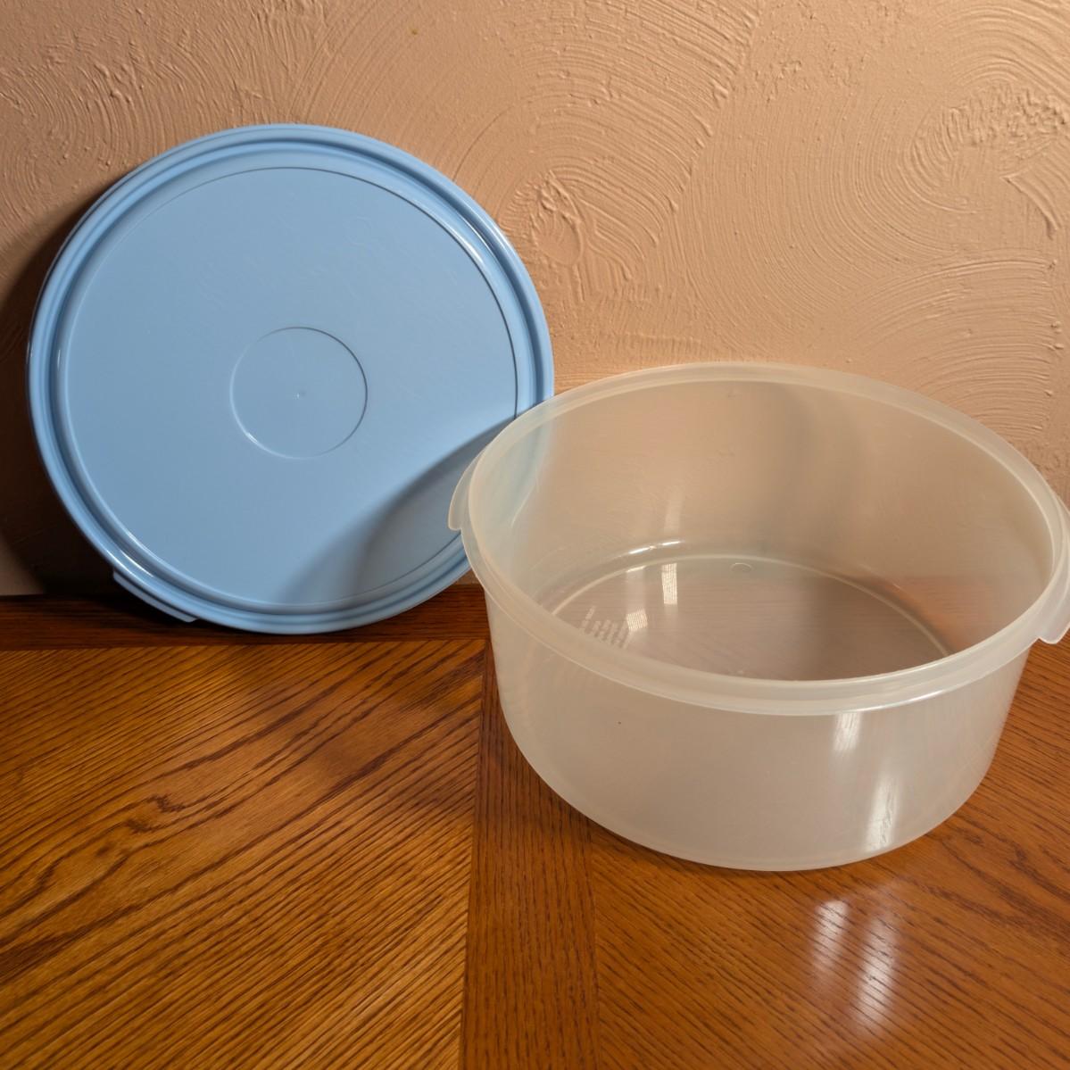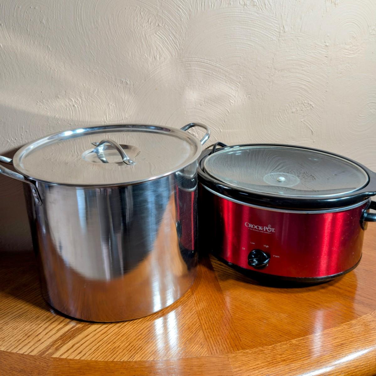 LOT 19L: Kitchen Ware, Large Stainless Steel Stock Pot, Crock Pot Model: SCV603 R Not Tested, Opaque Tupperware, Large & Smaller Storage Containers, Open & Lidded, Also 1 Clear glass S & P Shaker Set