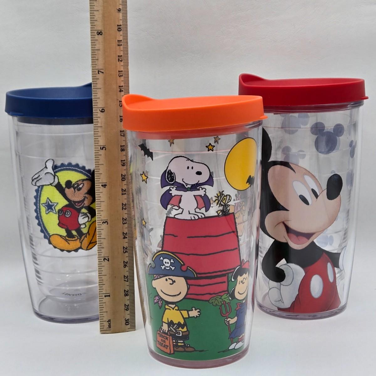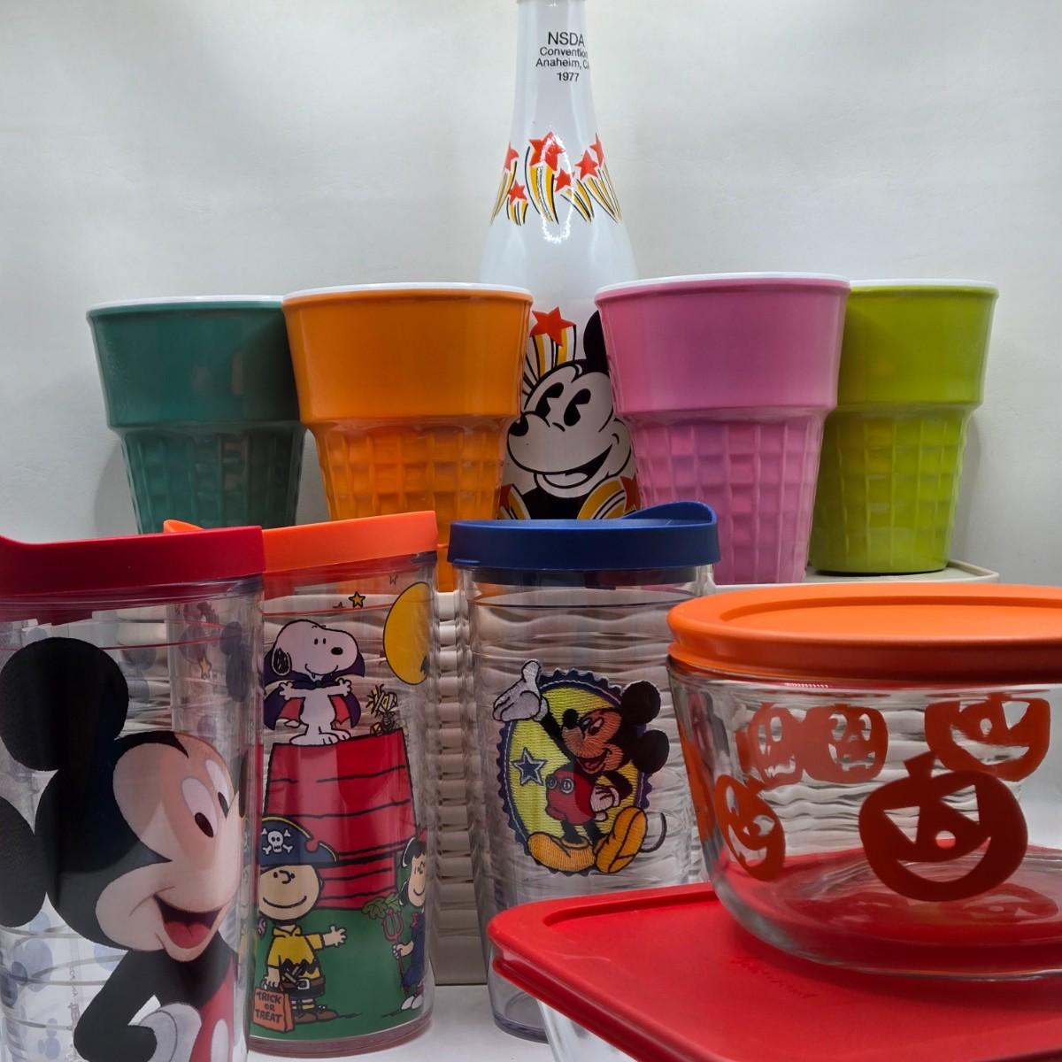 LOT 44K: Colorful Melamine Ice-cream Cups, Insulated Tervis Cups with Fun Characters, and More