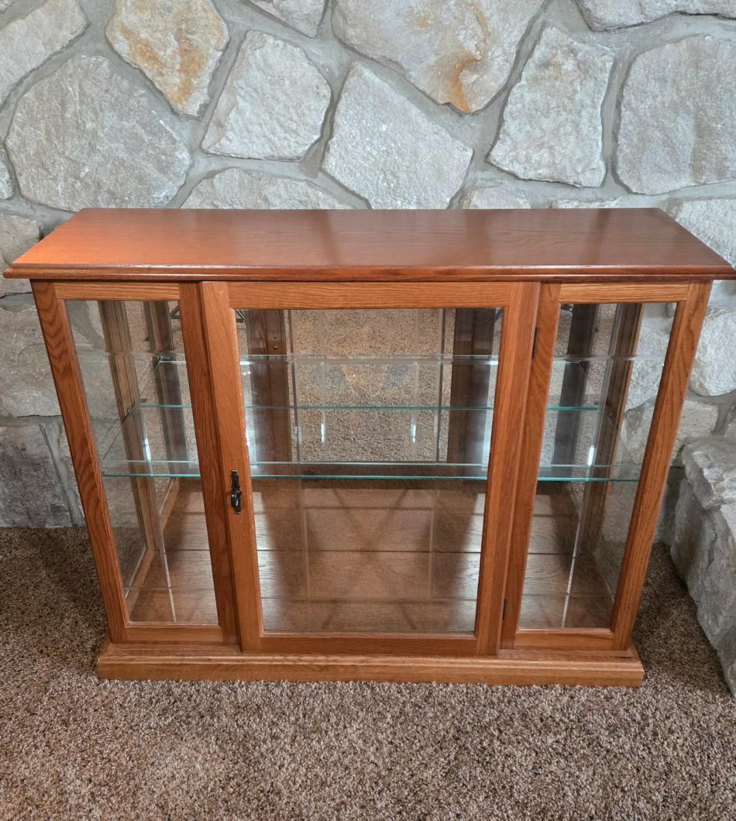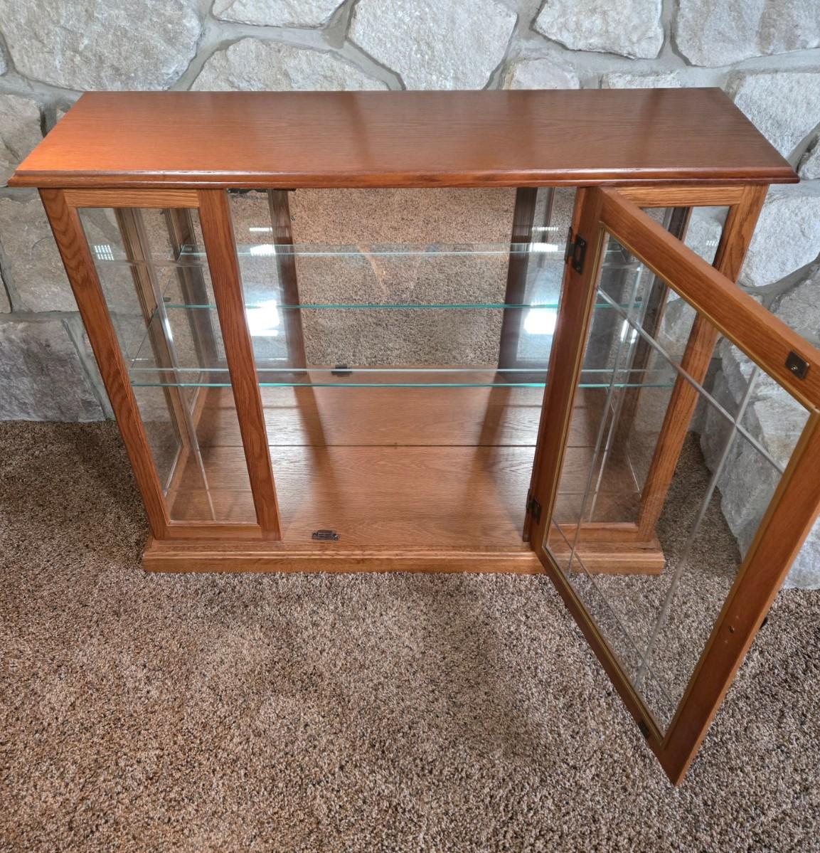 Excellent condition , light works. 33in. high, 39.5in. long and 12.5in. deep. Please see all pictures as they are the best representation of the items. The pictures show condition, measurements if taken, and what is included in the lot. Due to the large amount that we photograph and the time frame, we are not always able to take measurements. All items unless noted, are pre-owned and have been used. If you purchased furniture, you must bring help. We do not allow one person to carry large furniture out on their own. Bring help, tools and a truck for the safety of our client’s homes, and your personal safety. Any damages that result to the property including walls, and floors due to moving of the furniture will be charged to the buyer. Company policy. Thank you.
