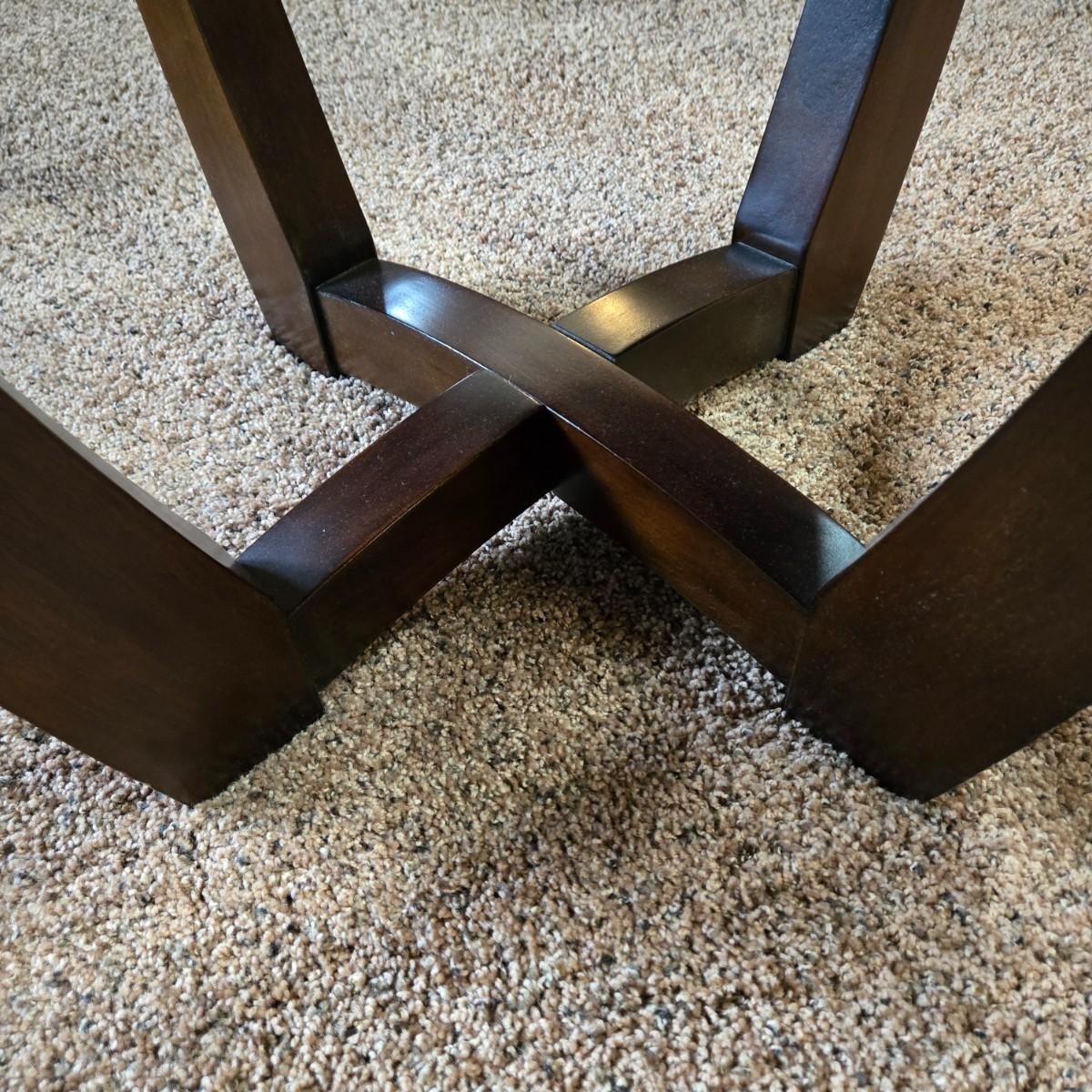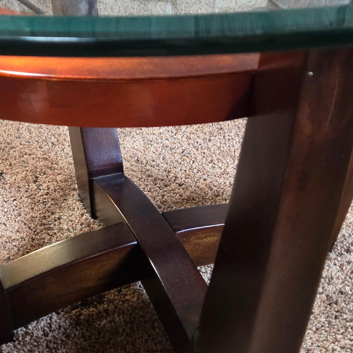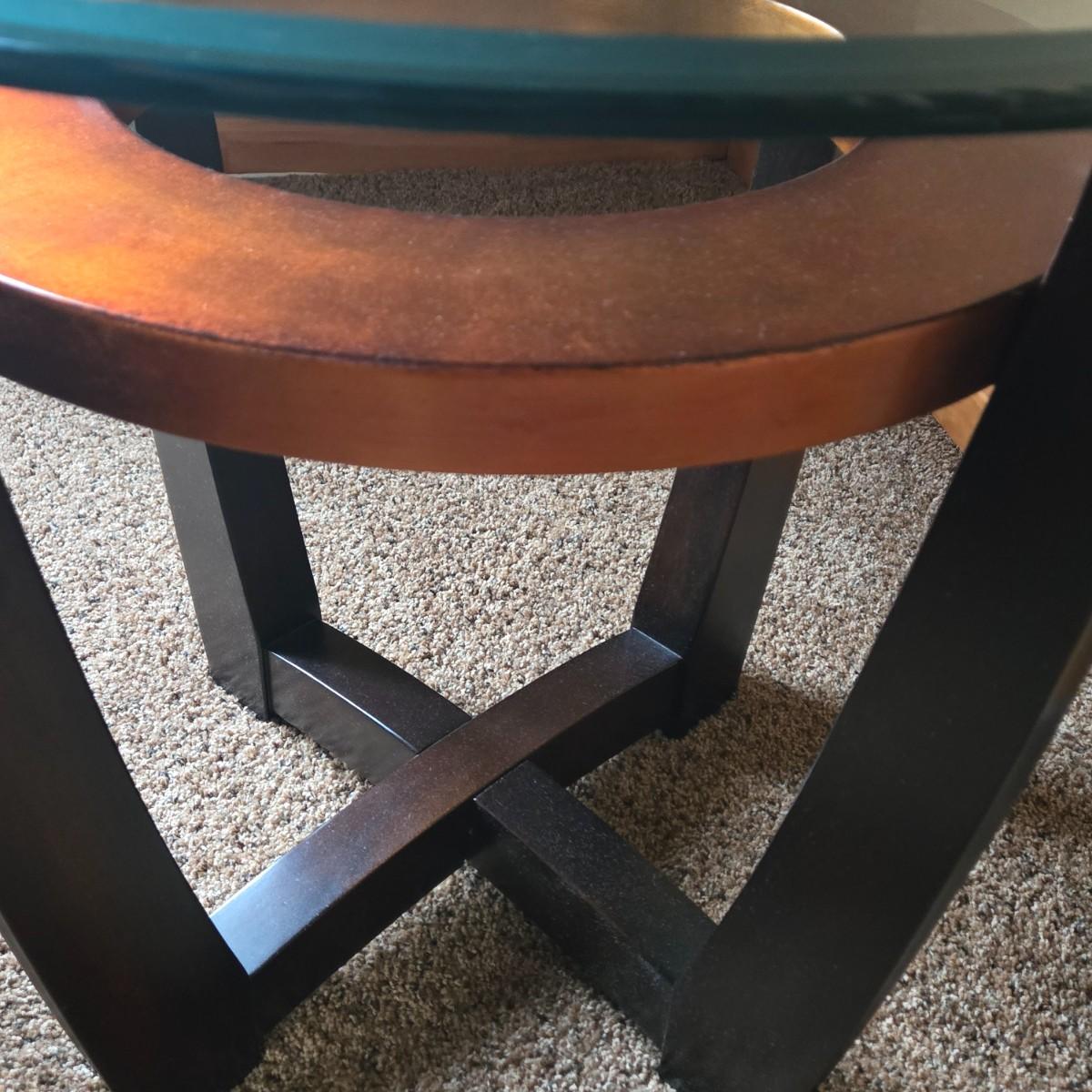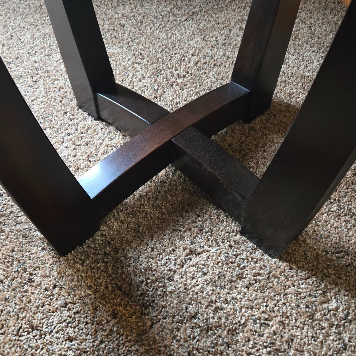 Coffee table is 34in. round and 19in. high. Side table is 27.5in. round and 24in high. Please see all pictures as they are the best representation of the items. The pictures show condition, measurements if taken, and what is included in the lot. Due to the large amount that we photograph and the time frame, we are not always able to take measurements. All items unless noted, are pre-owned and have been used. If you purchased furniture, you must bring help. We do not allow one person to carry large furniture out on their own. Bring help, tools and a truck for the safety of our client’s homes, and your personal safety. Any damages that result to the property including walls, and floors due to moving of the furniture will be charged to the buyer. Company policy. Thank you.
