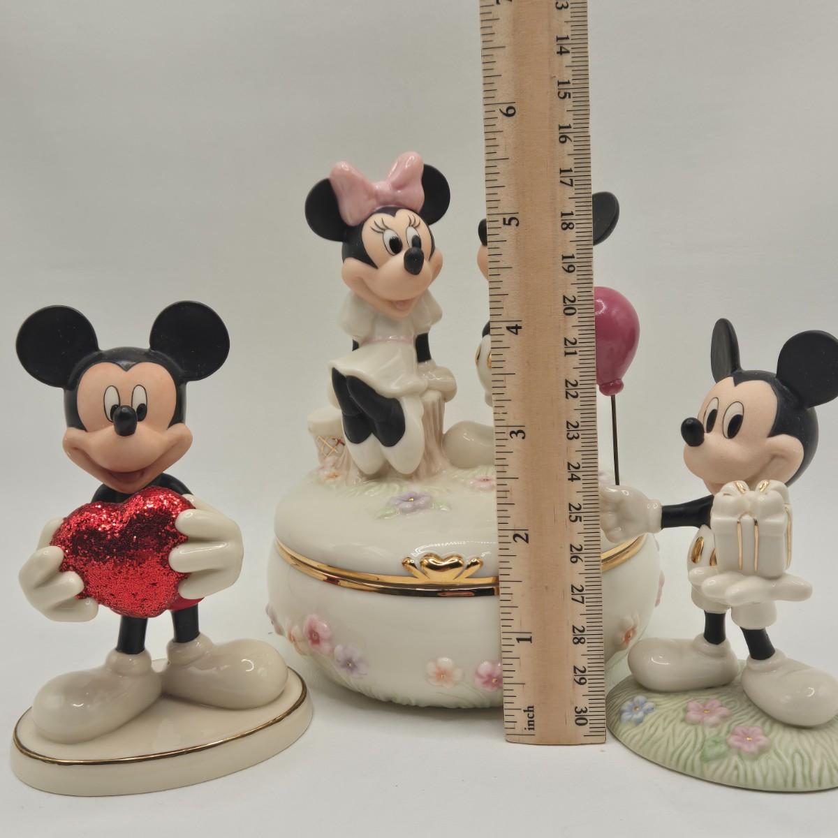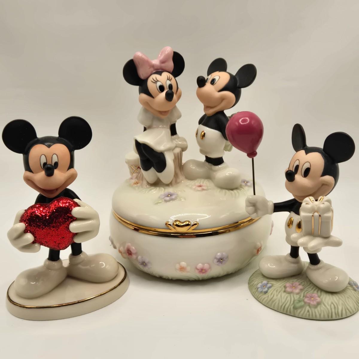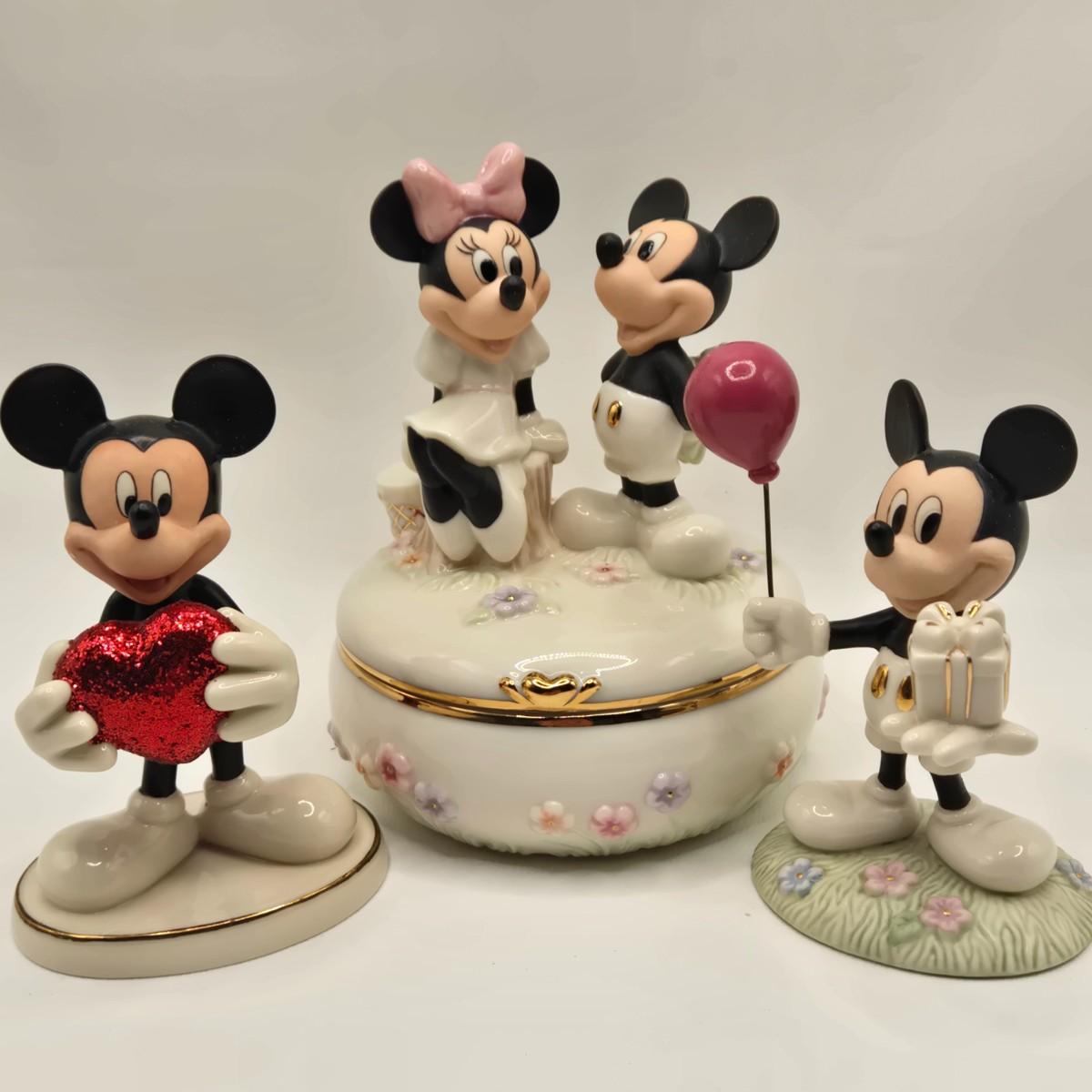 LOT 64L: Lenox "The Mickey and Minnie Keepsake Box" , "Love Struck Mickey", and "Mickey's Birthday Gift"