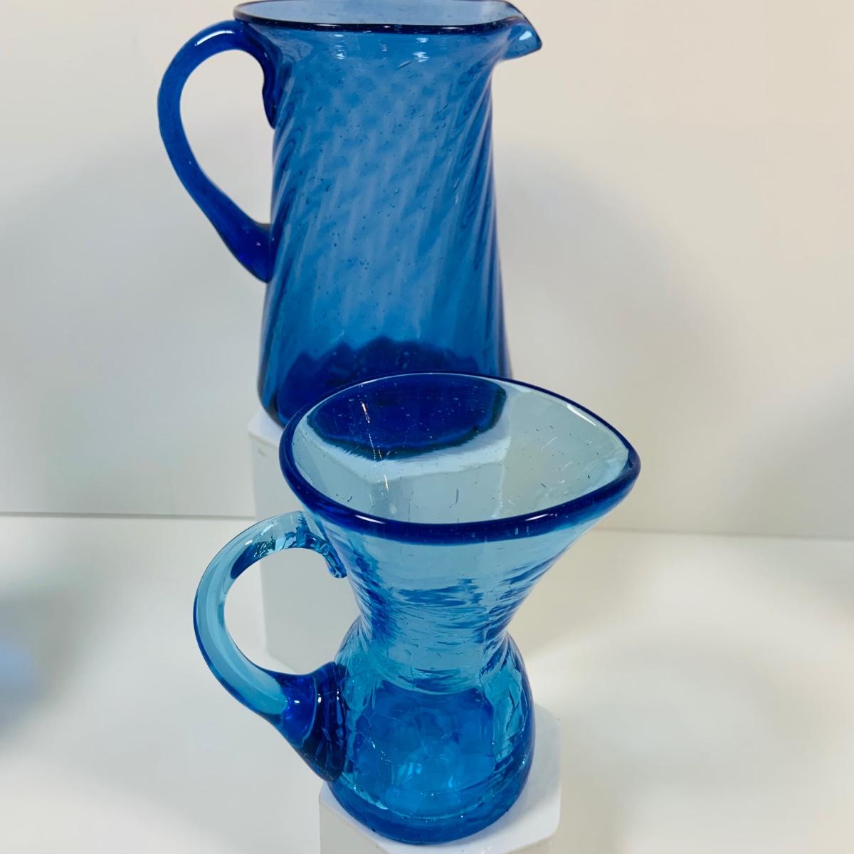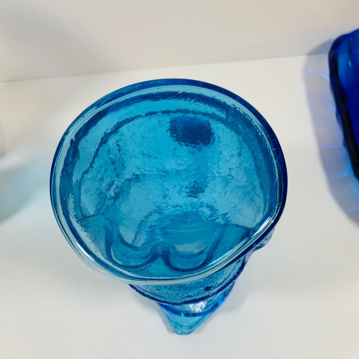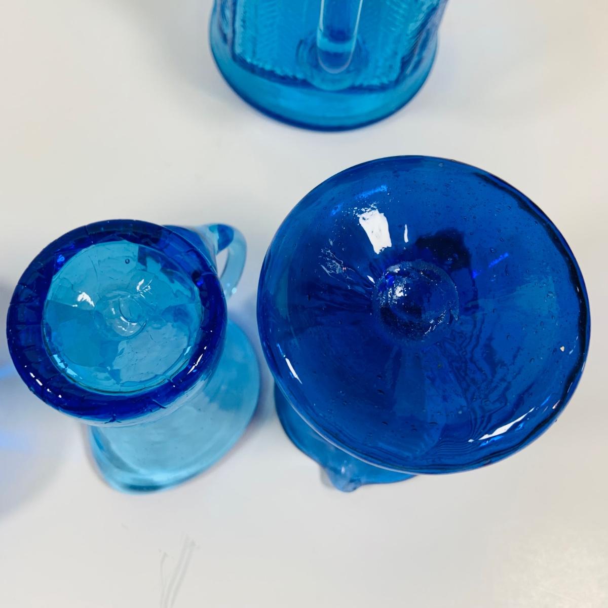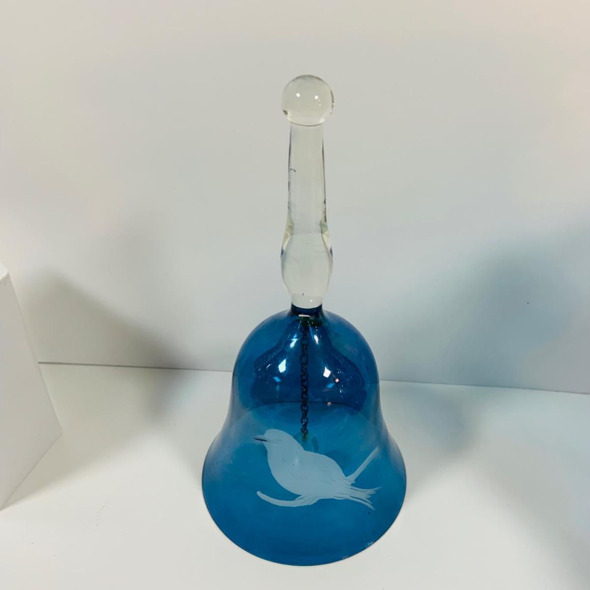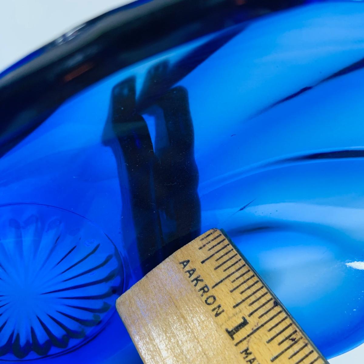 LOT 4: Beautiful Cobalt Blue Glass Collection Including Relish Dish, Bell with Etched Bird, Glass Toby Jug, Wheaton Season’s Greeting Bottle and More