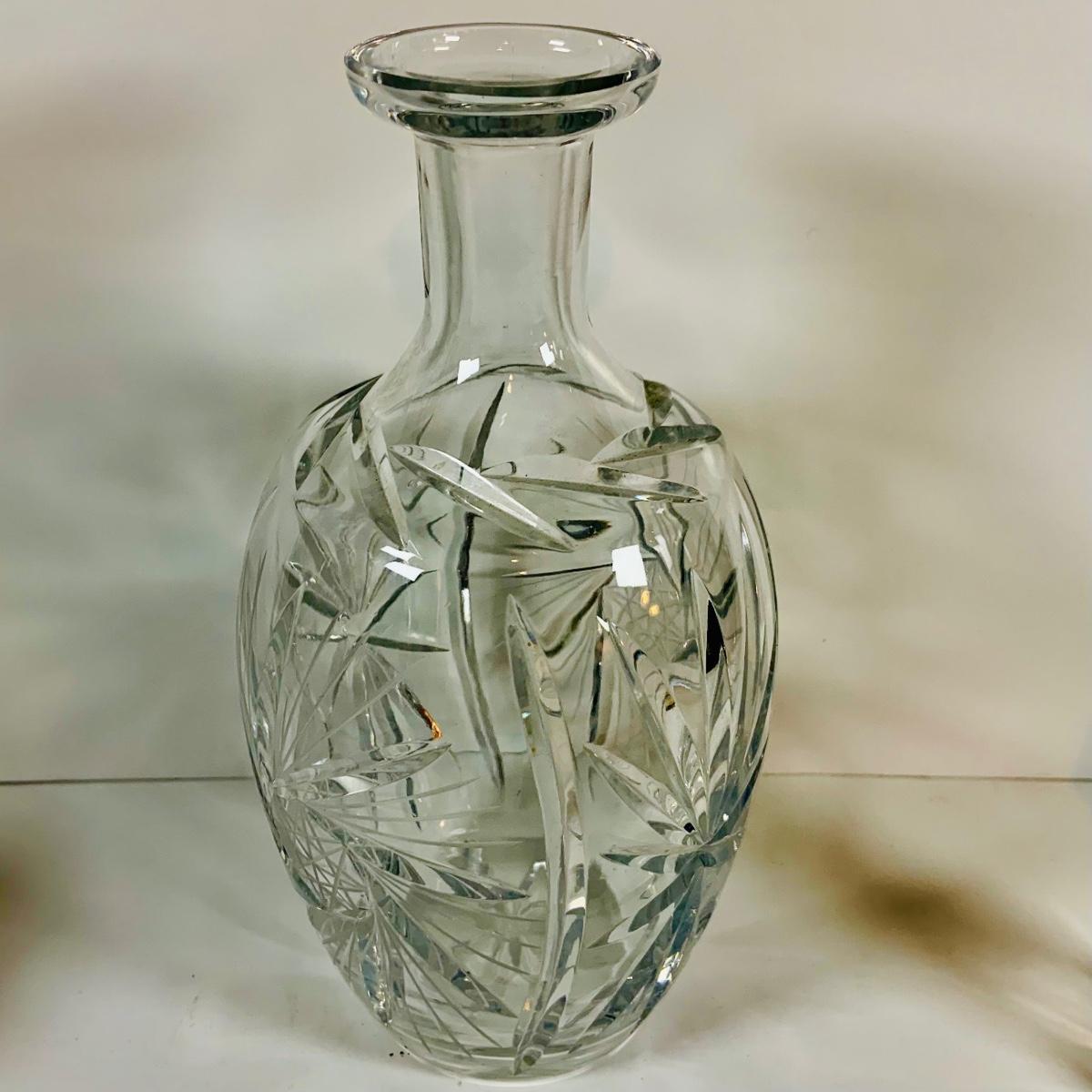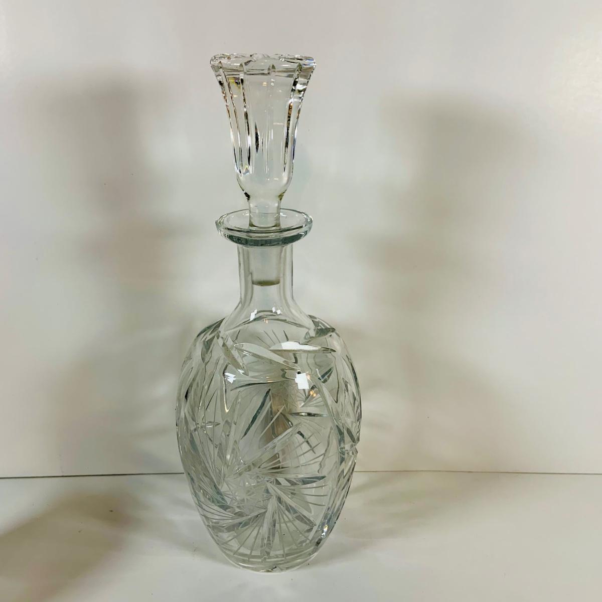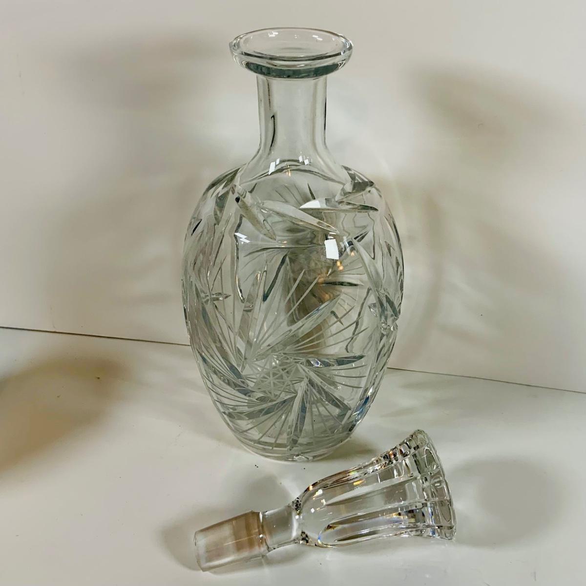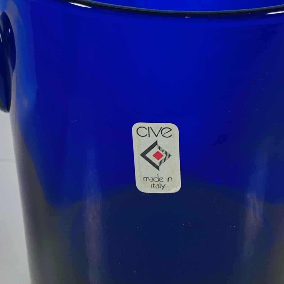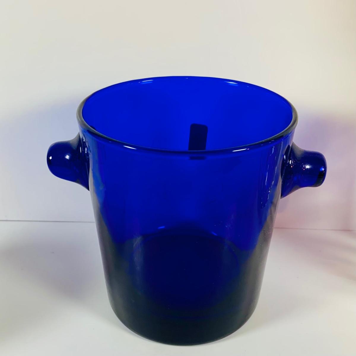 LOT 10: Cobalt Blue Italian Made Glass Ice Bucket by Clive and Crystal Cut Glass Decanter with Stopper