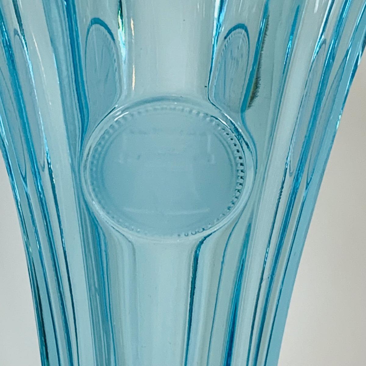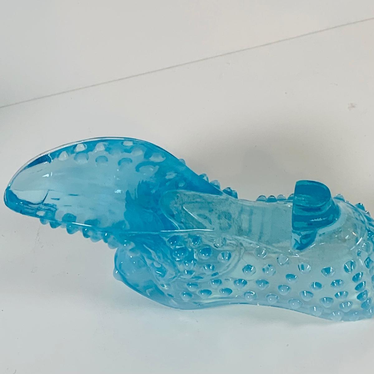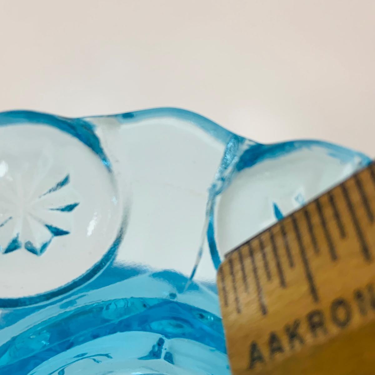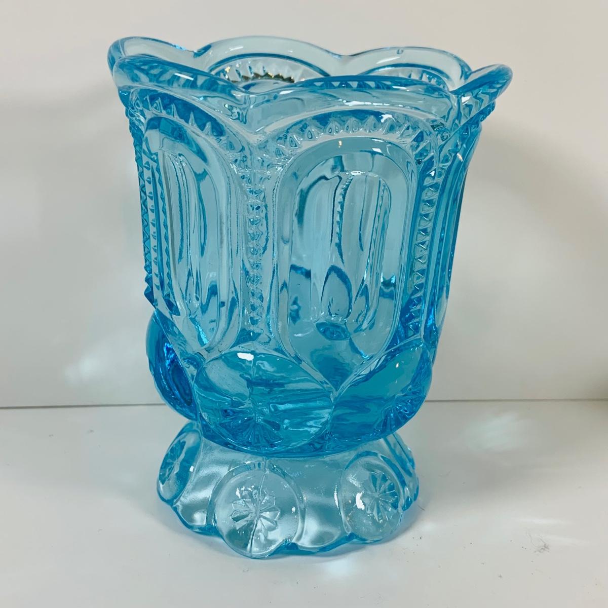 LOT 12: Fostoria Coin Blue Vase, Moon and Stars Footed Vase and Hobnail Glass Shoe