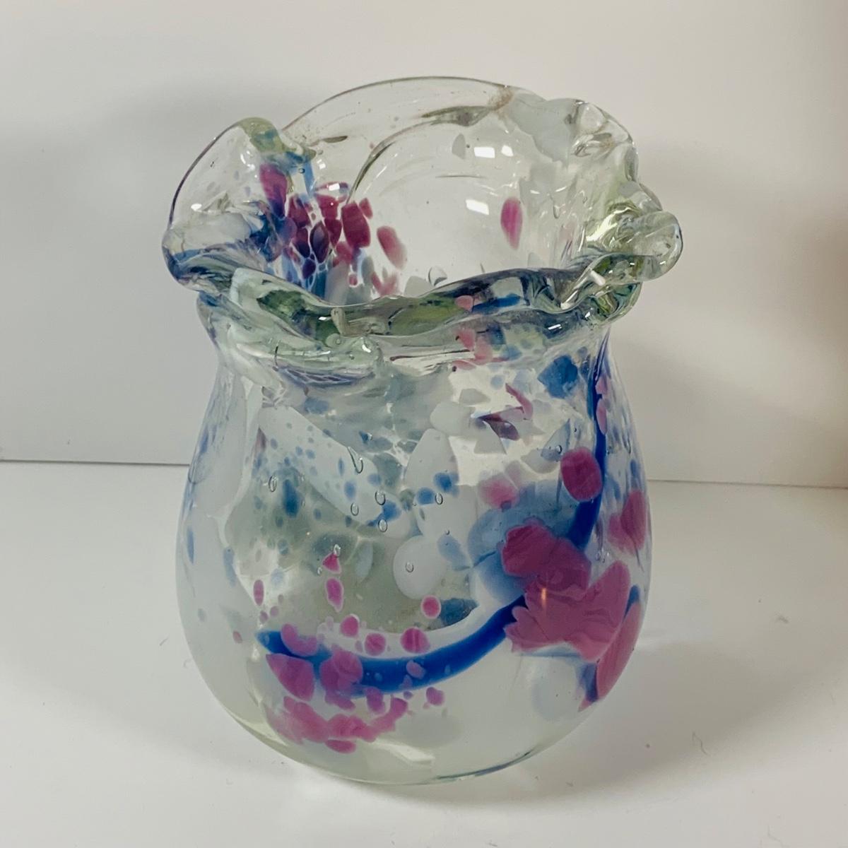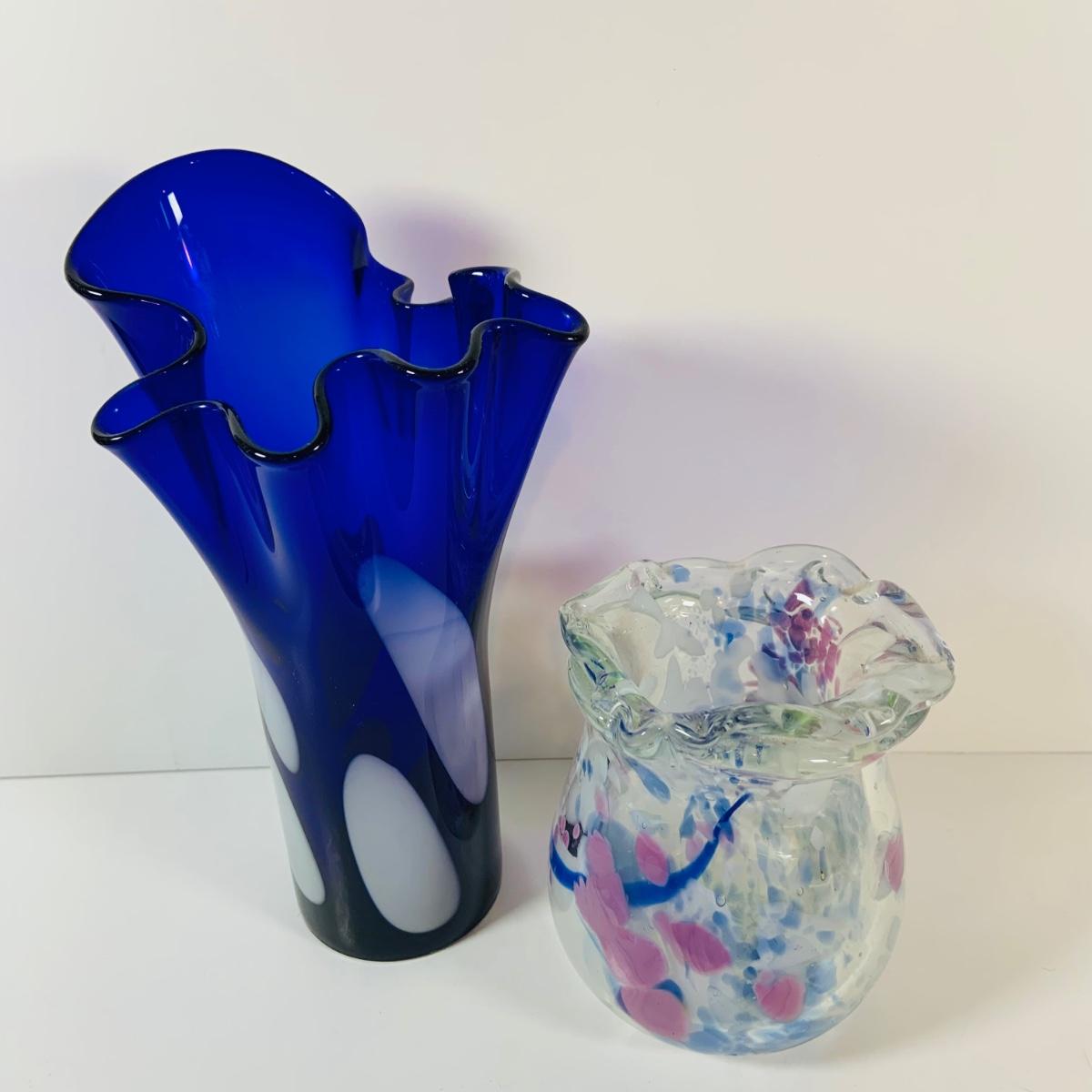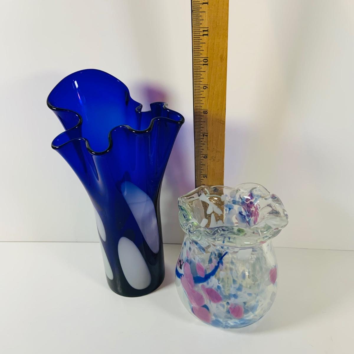 LOT 14 Set of Two (2) Hand Blown Art Glass Ruffle Top Vases