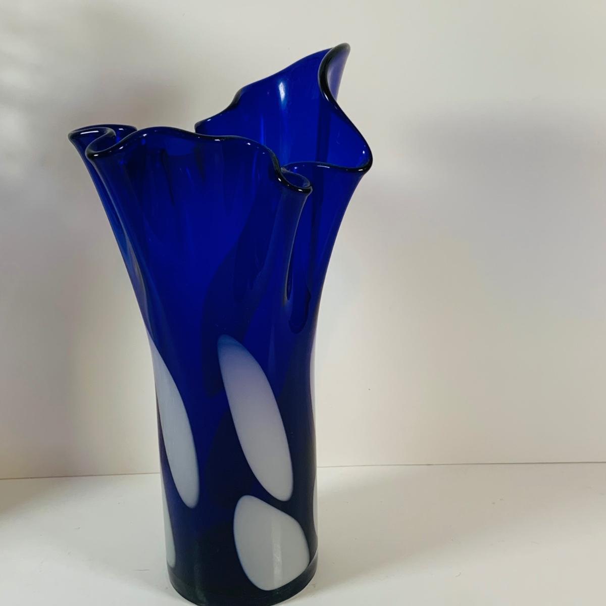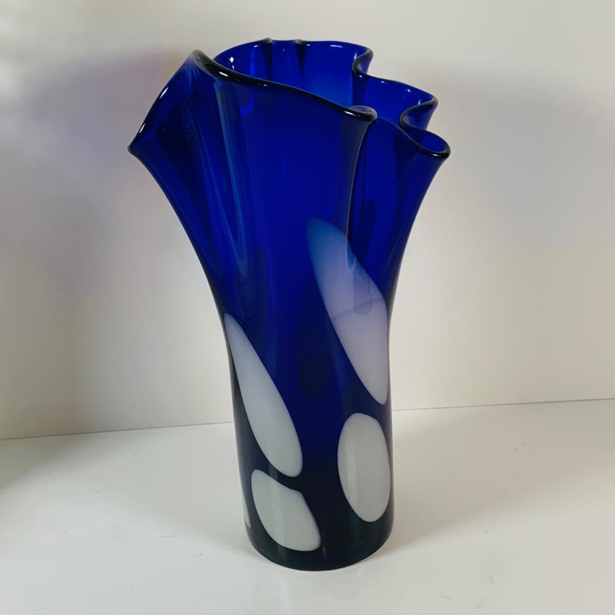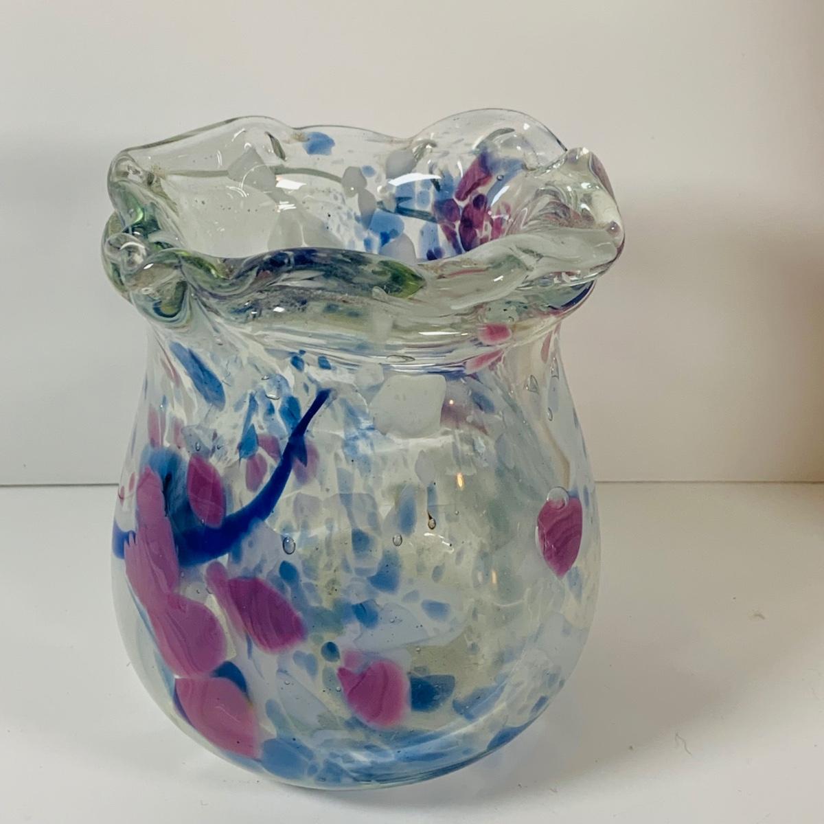 LOT 14 Set of Two (2) Hand Blown Art Glass Ruffle Top Vases