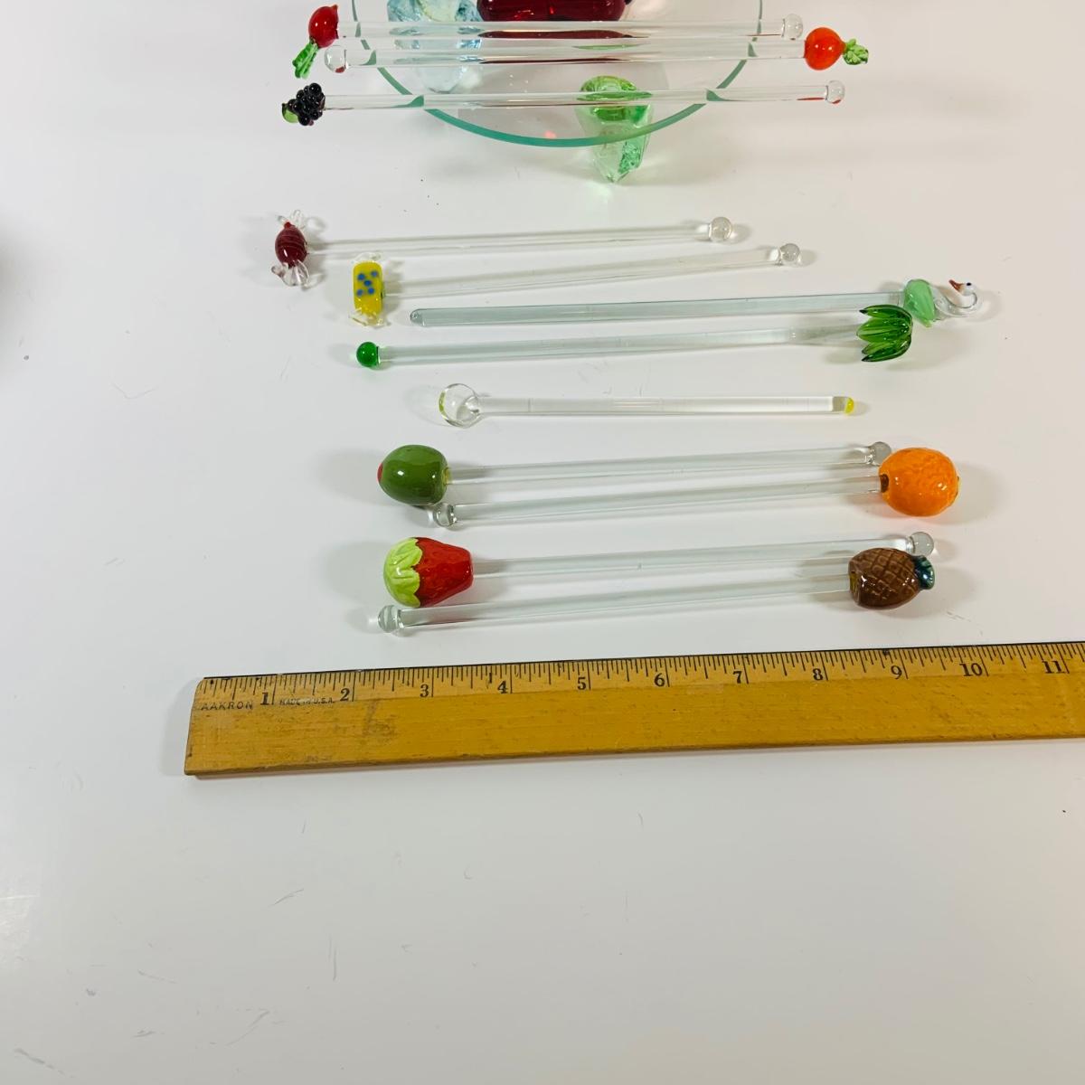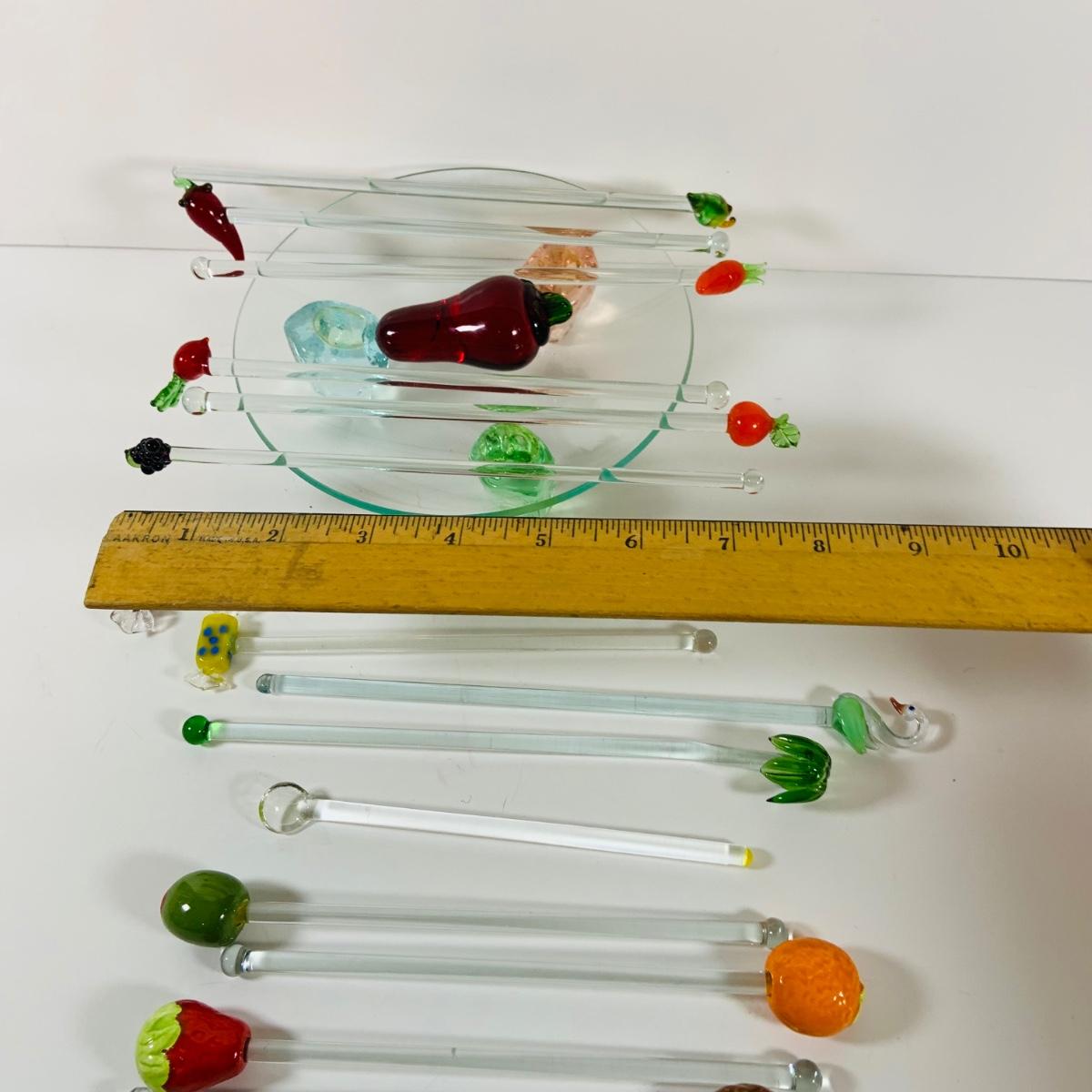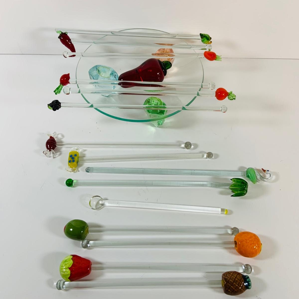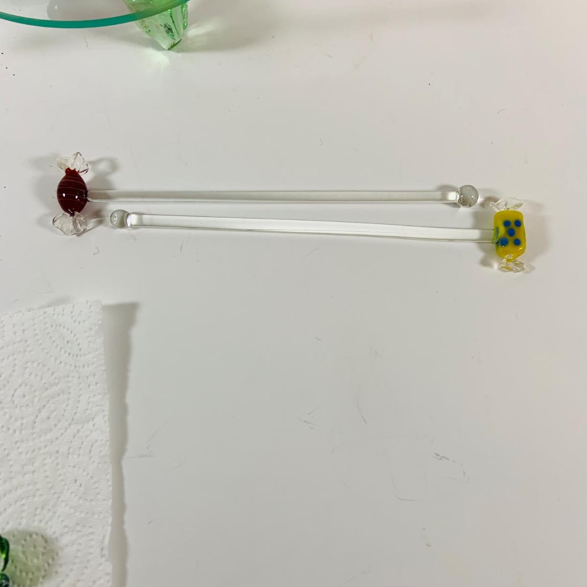 LOT 17: Collection of Glass Swizzle /Cocktail Stirrers, Glass Candy Dish and More