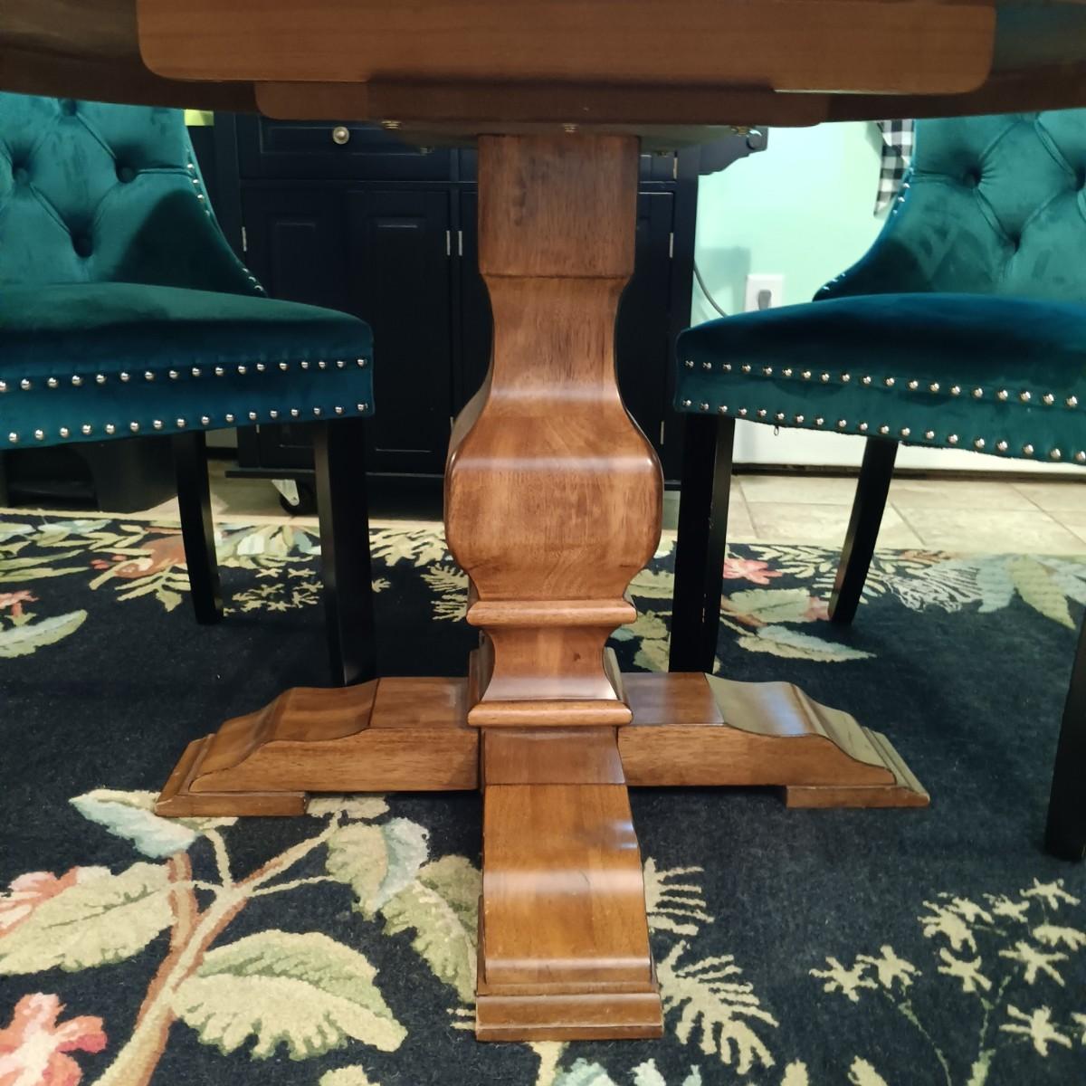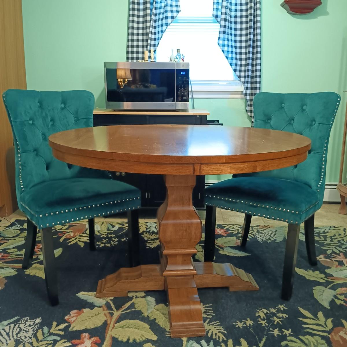 LOT 29: Round Pedestal Table with (2) Velvet Dining Chairs