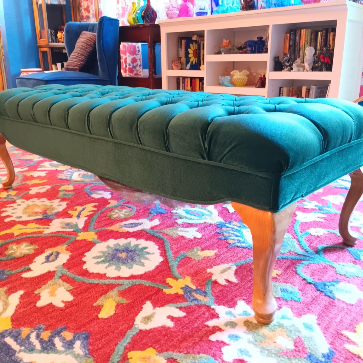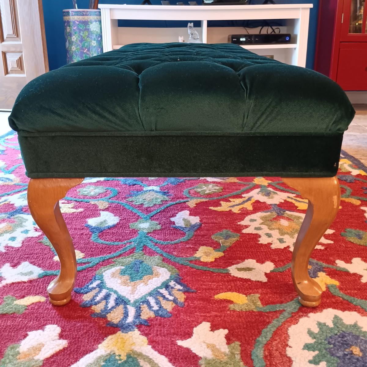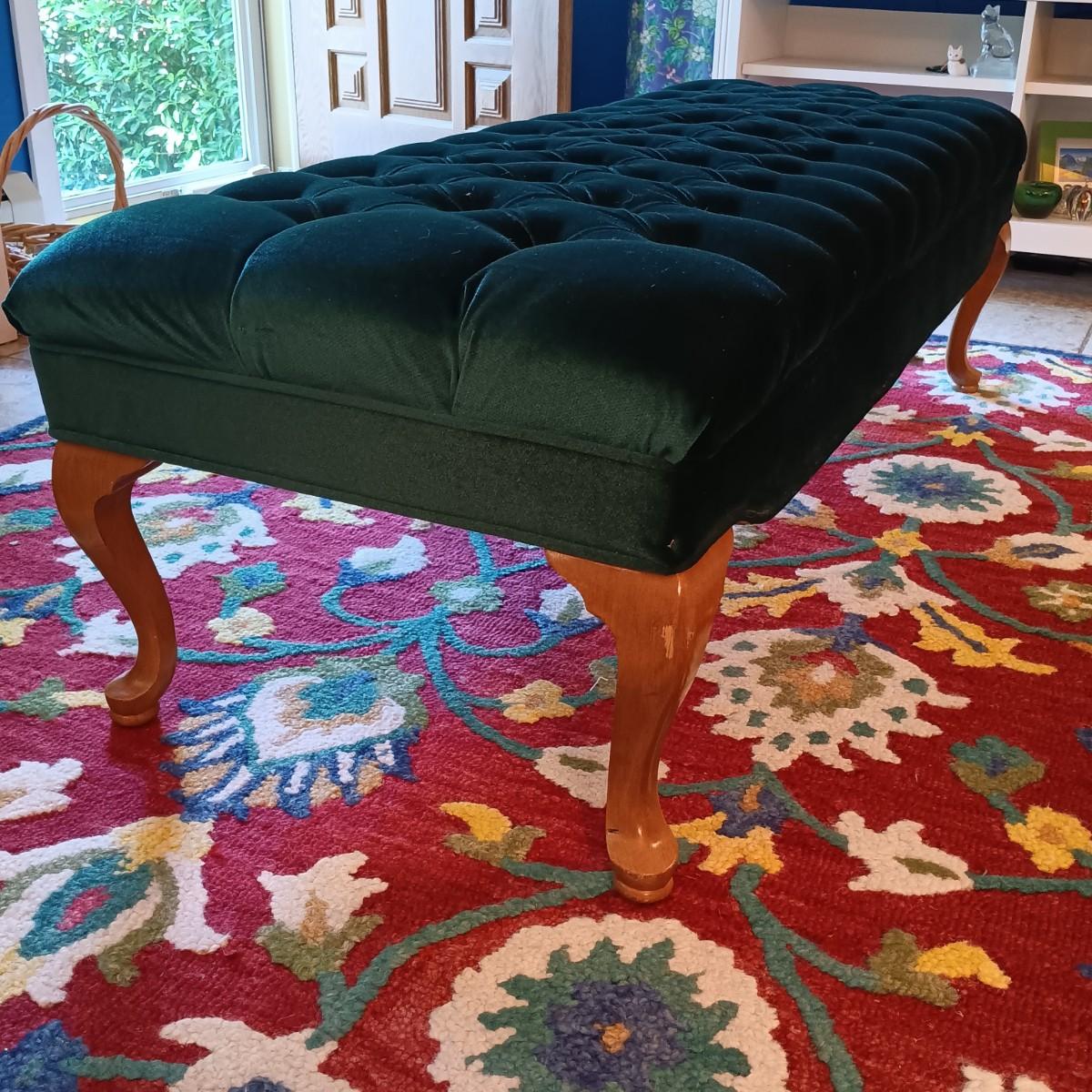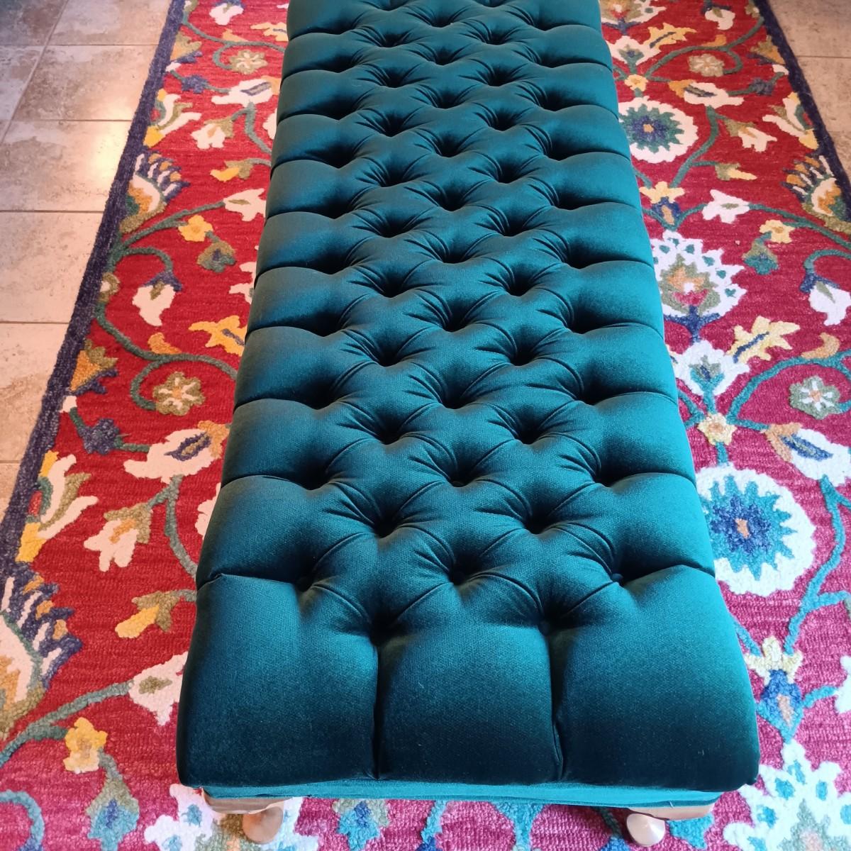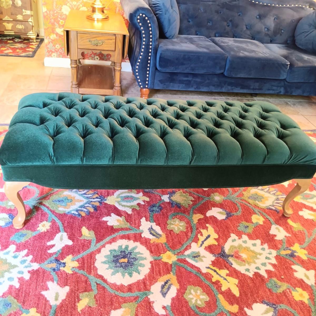LOT 31: Tufted Green Velvet Upholstered Bench