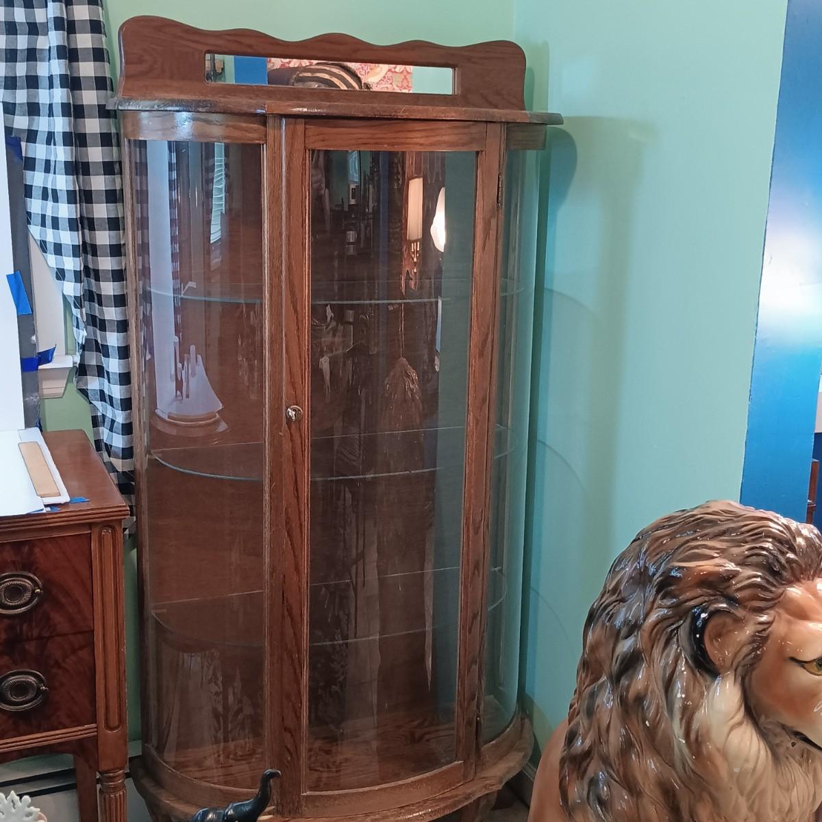 LOT 46: Vintage Curved Glass Curio Cabinet
