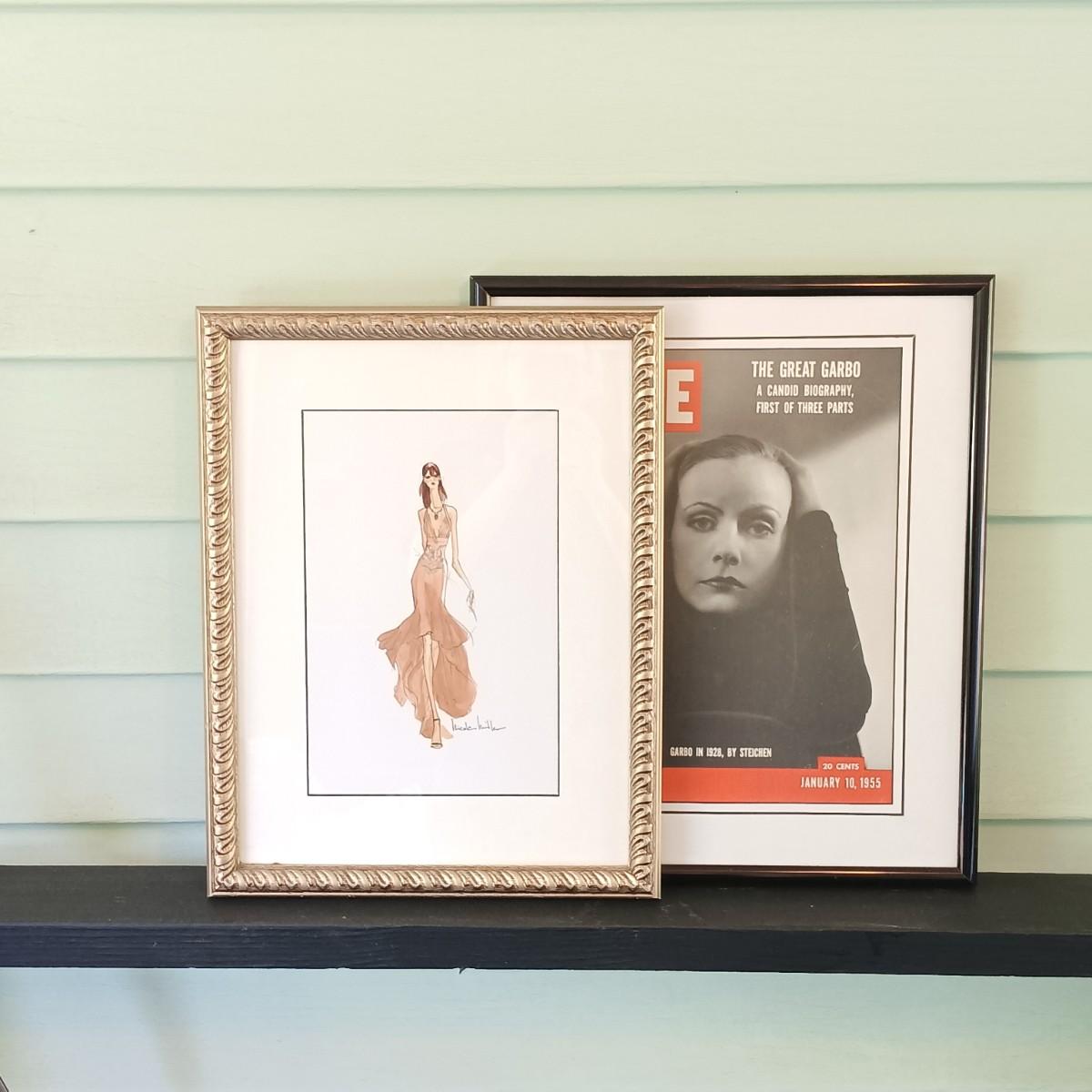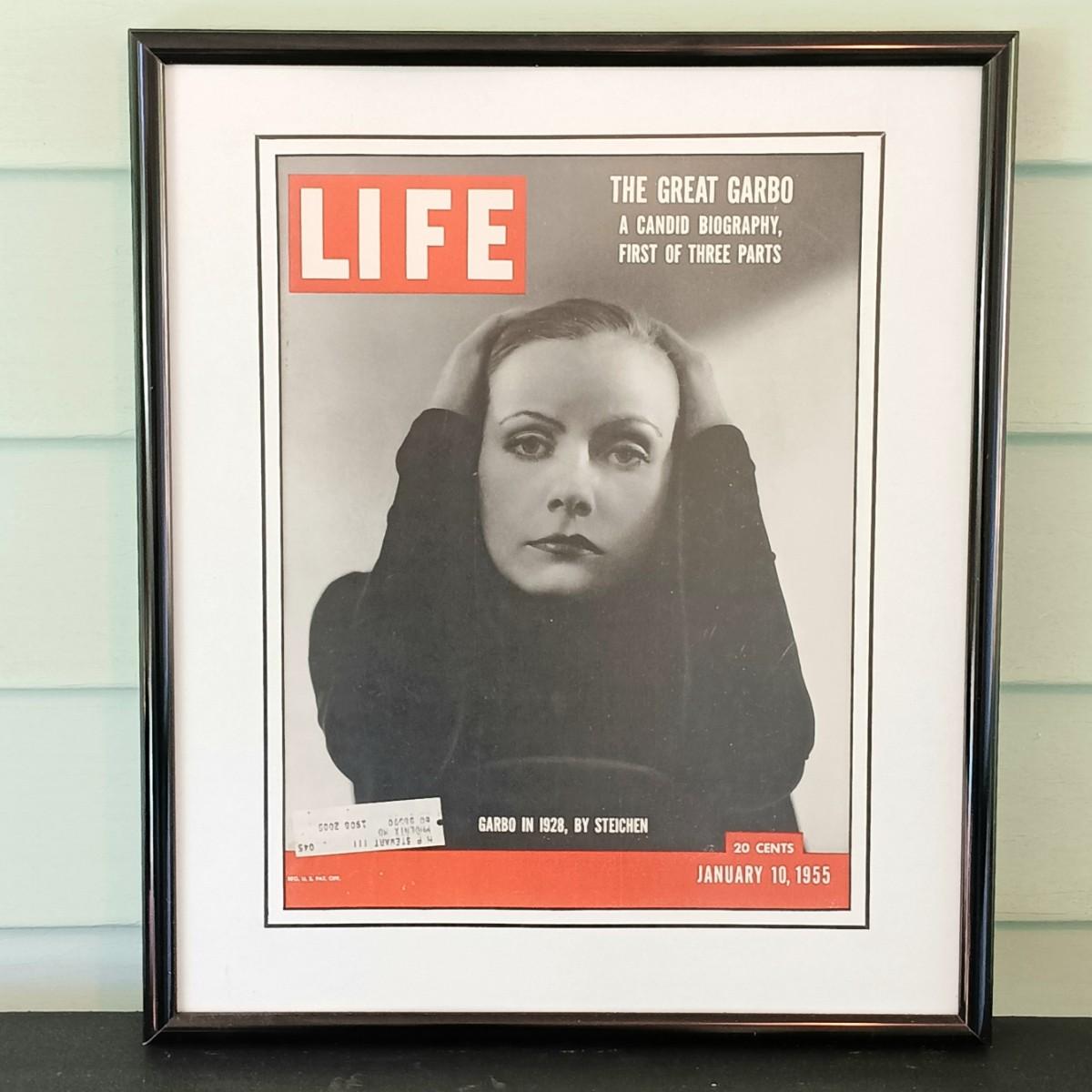 LOT 50: Framed Life Magazine Cover Featuring Greta Garbo with Nicole Miller Fashion Print
