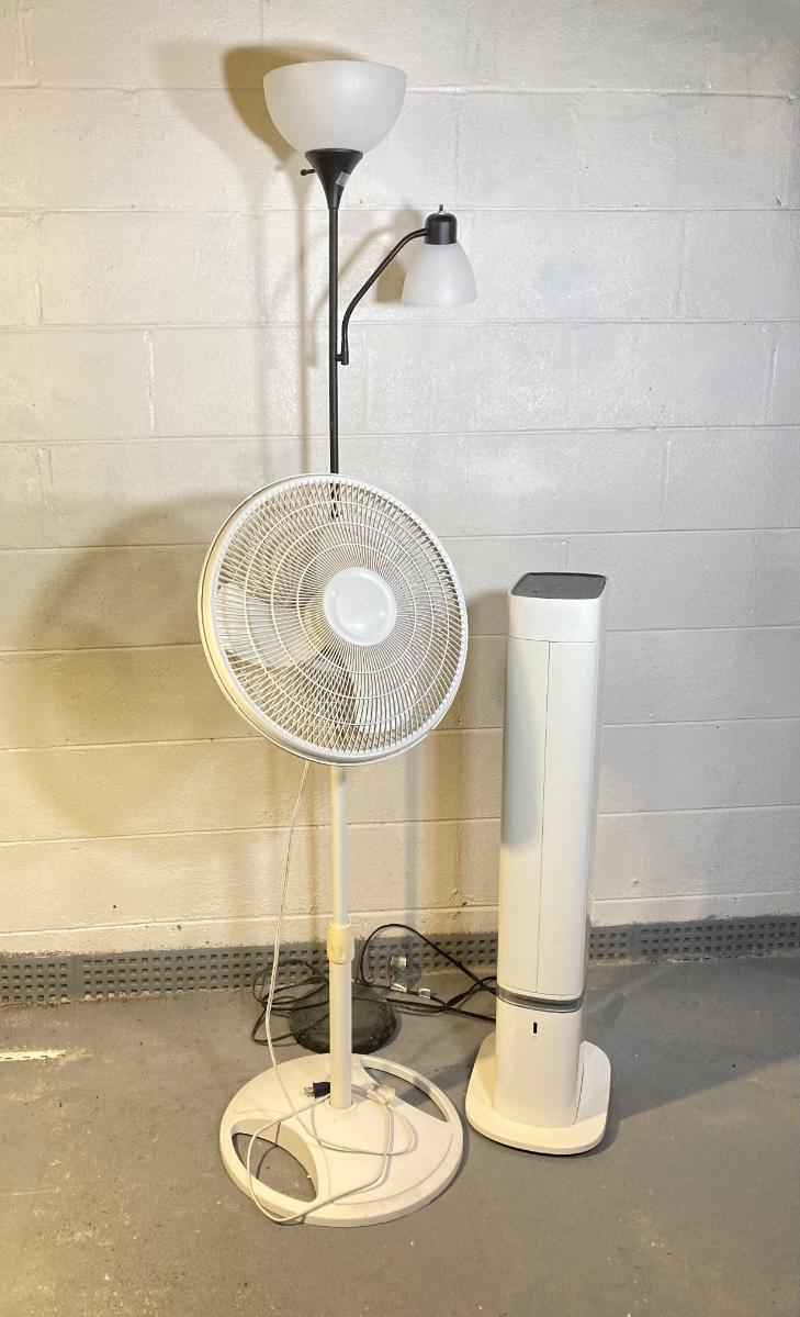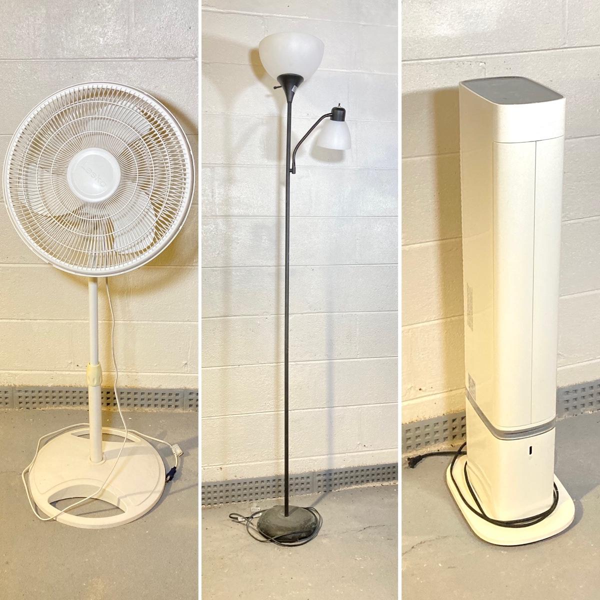 LOT 58: Floor Lamp, Tower Fan / Heater and Stand Fan