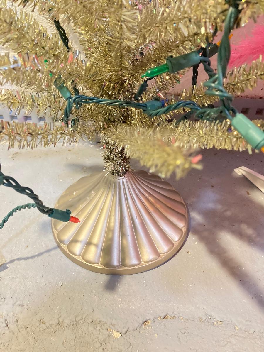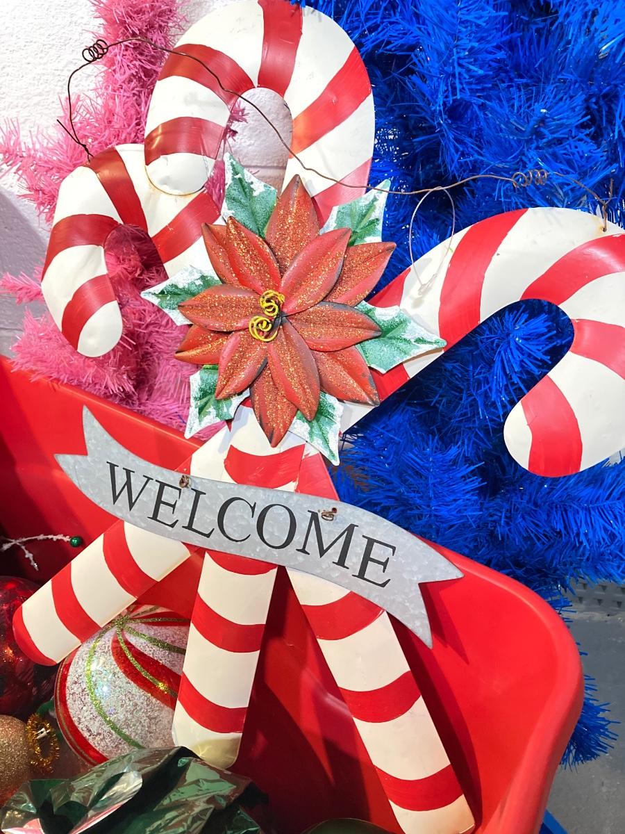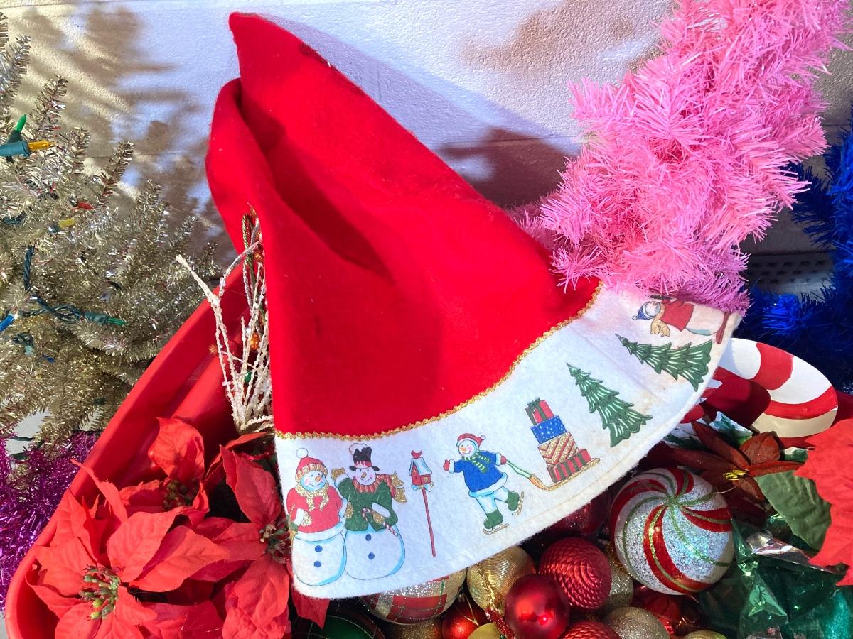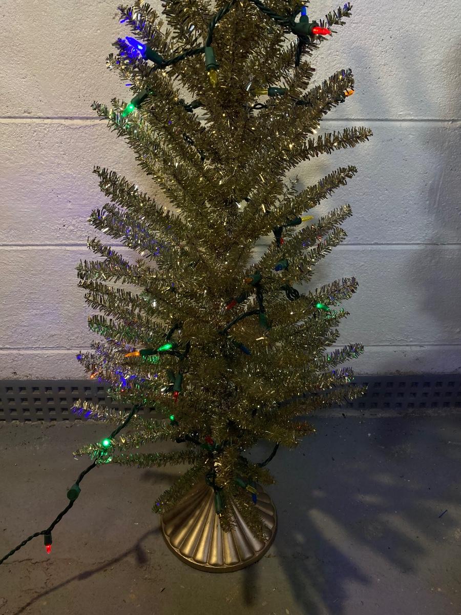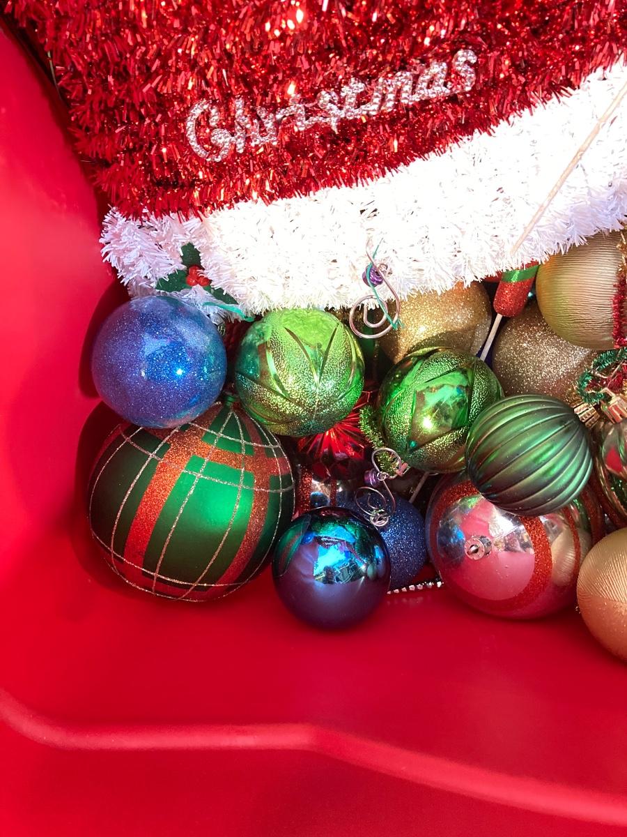 LOT 59: Colorful Christmas Trees and Tote filled with Decorations