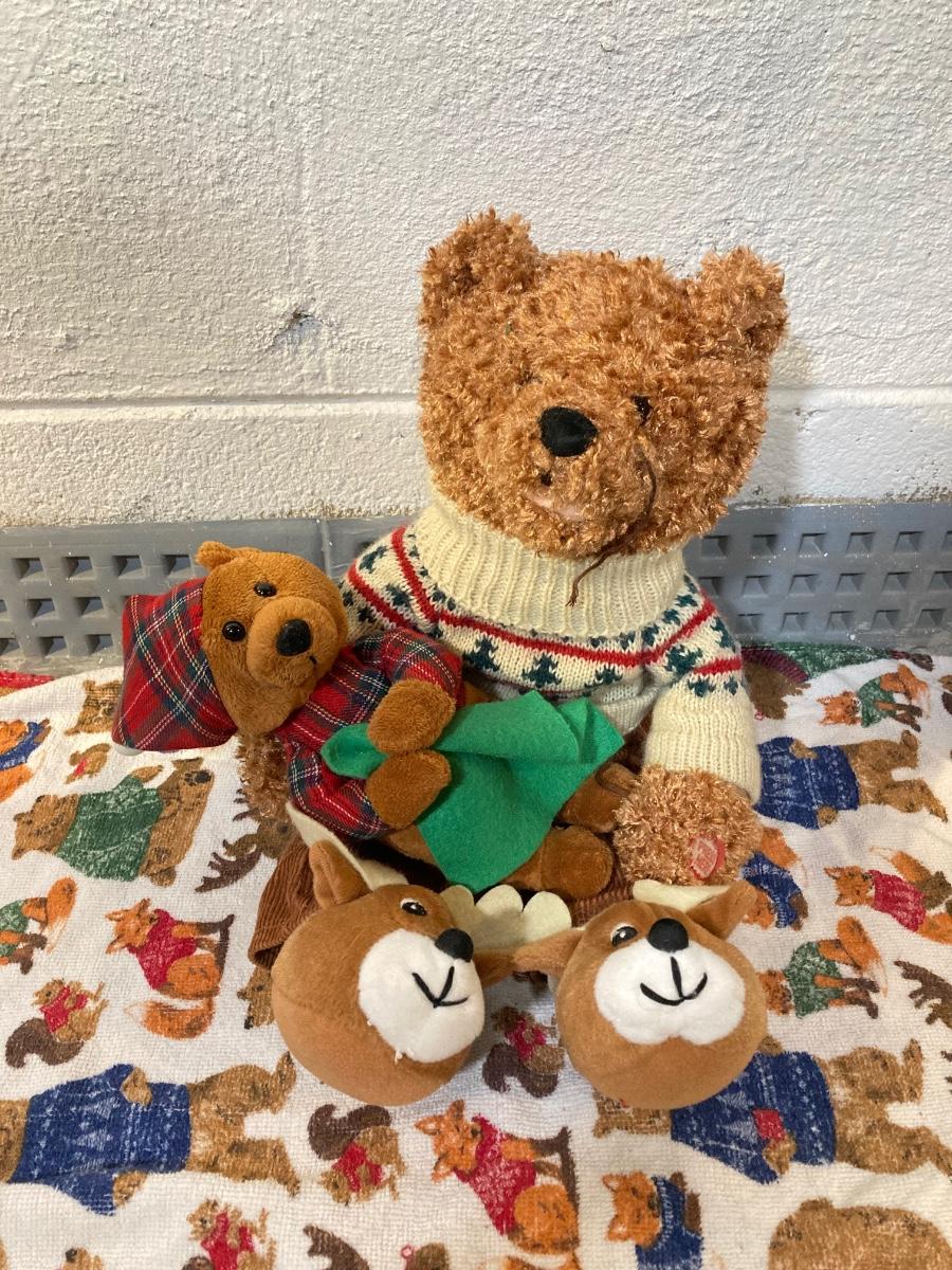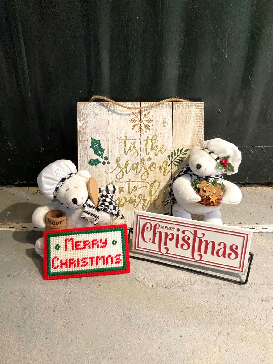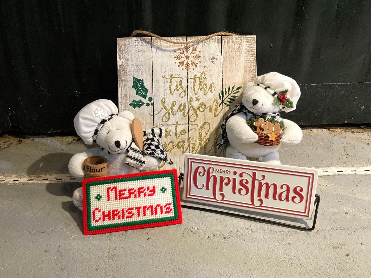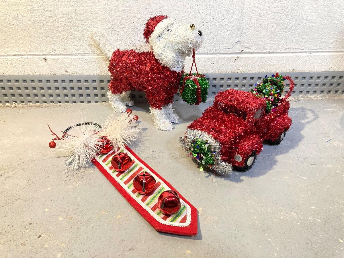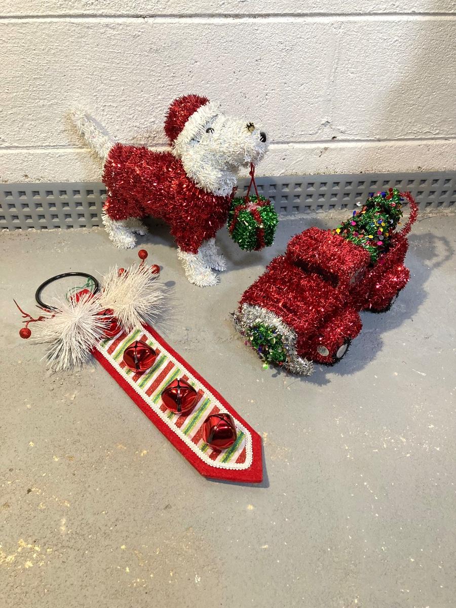 LOT 65: Large Christmas Collection - Mechanical / Musical Santa, Brass Candlestick Holders, Plush Animals, Signs and Much More
