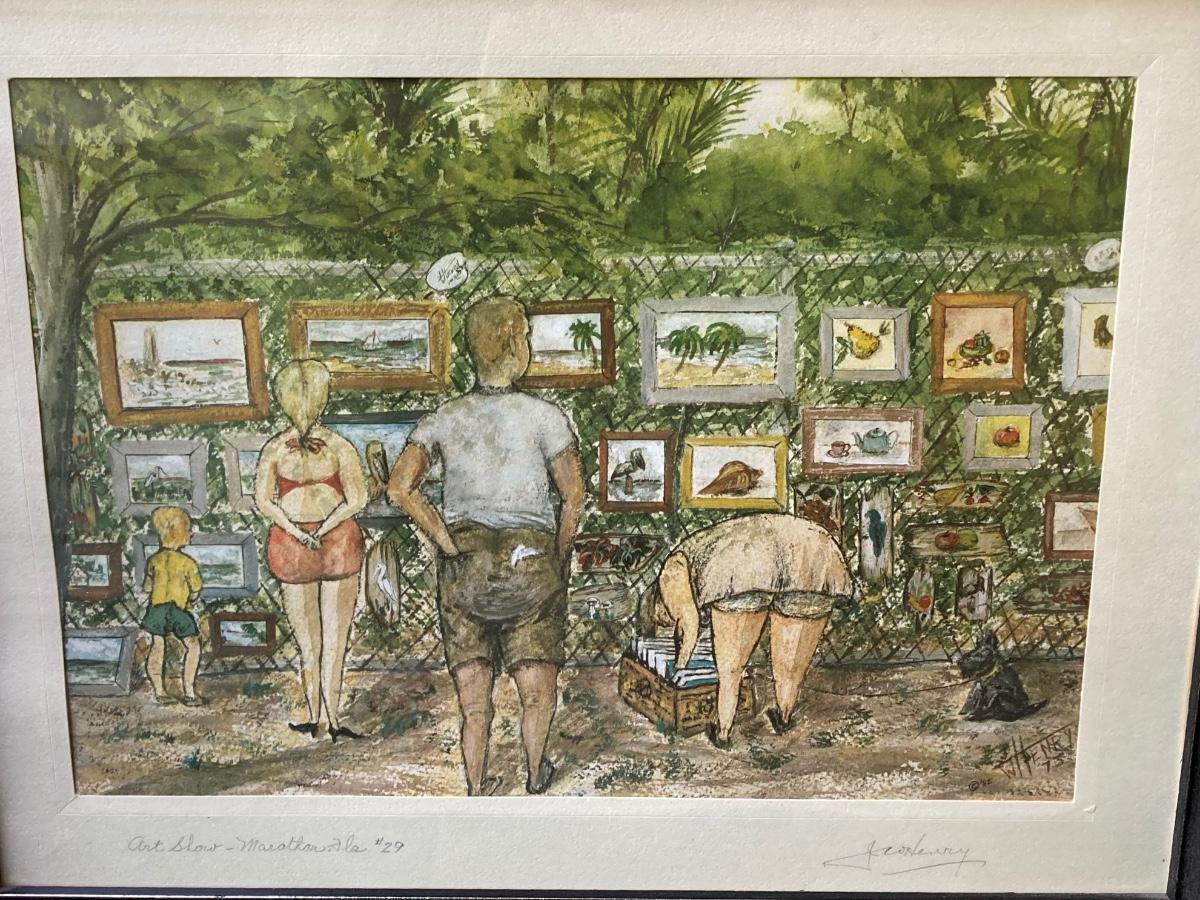 LOT 69: Framed and Signed Wall Hanging by Artist - “Art Show - Marathon Fla”